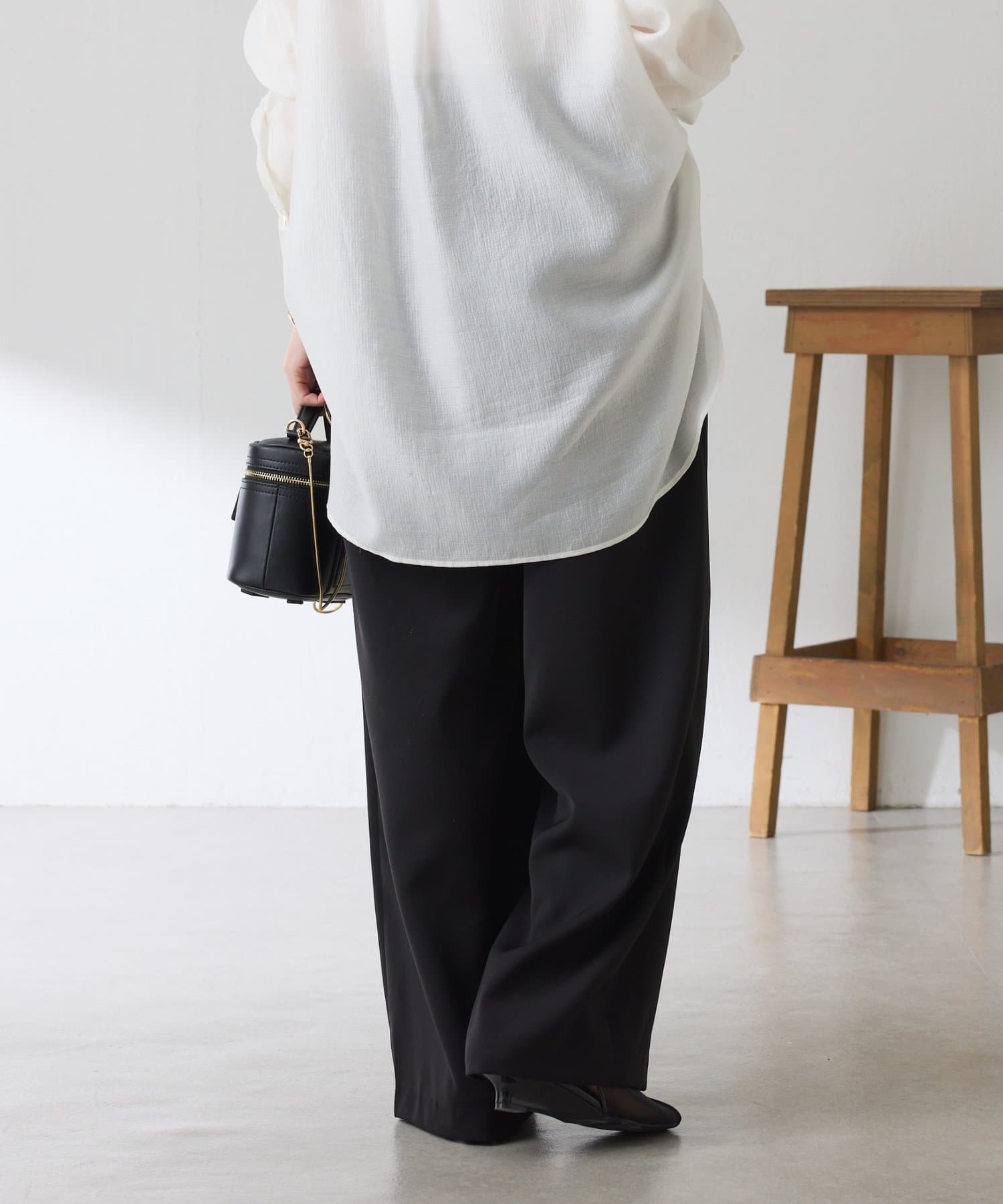 ・落ち感のある柔らかい素材を使用しているので、すっきりとしたシルエットで履いていただけます。