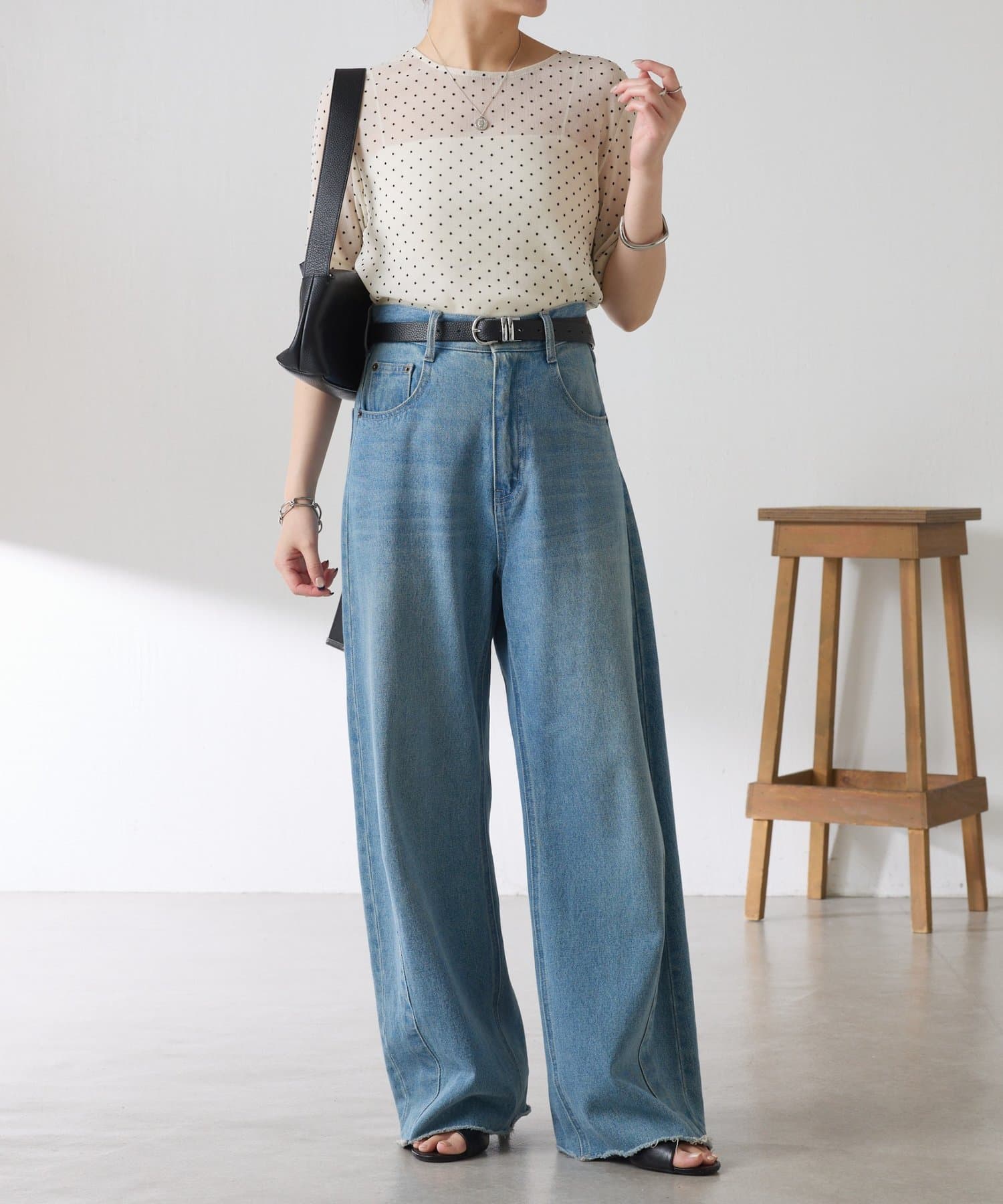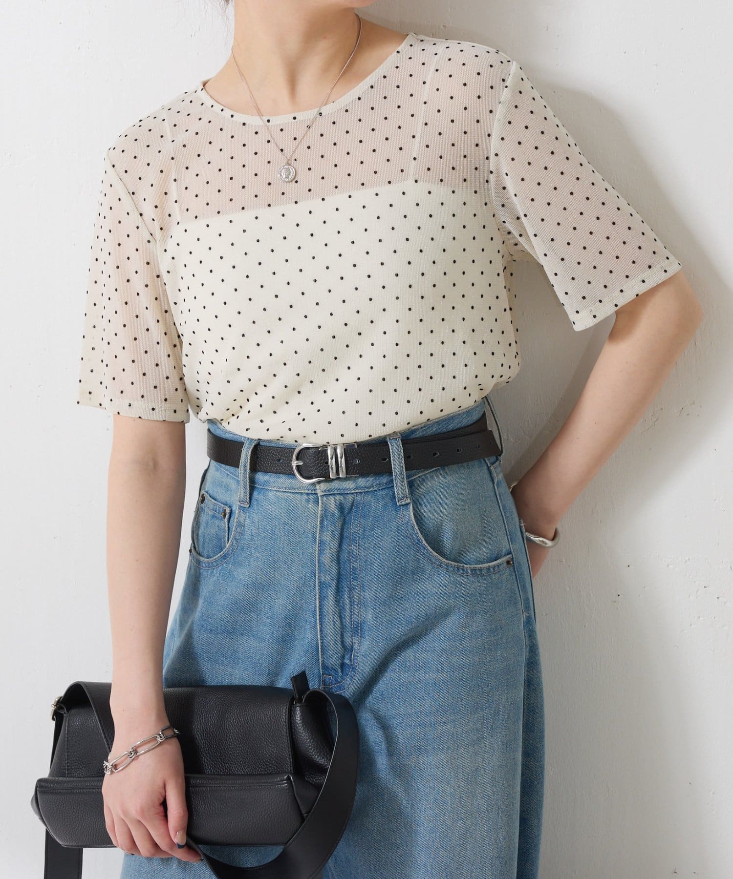 ・今年トレンドのドット柄ですが、シアーにすることで抜け感が生まれコーデに取り入れやすくしました◎