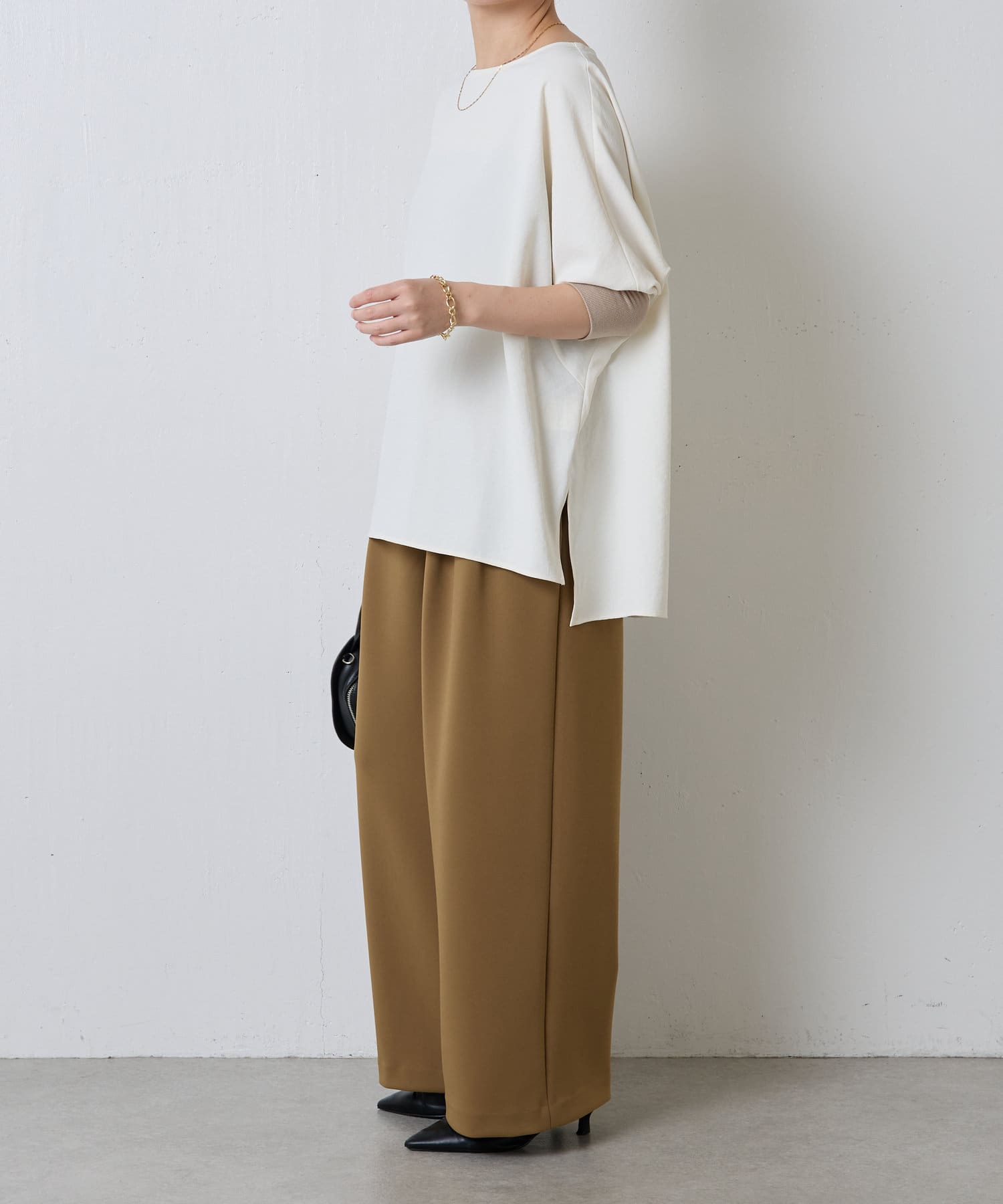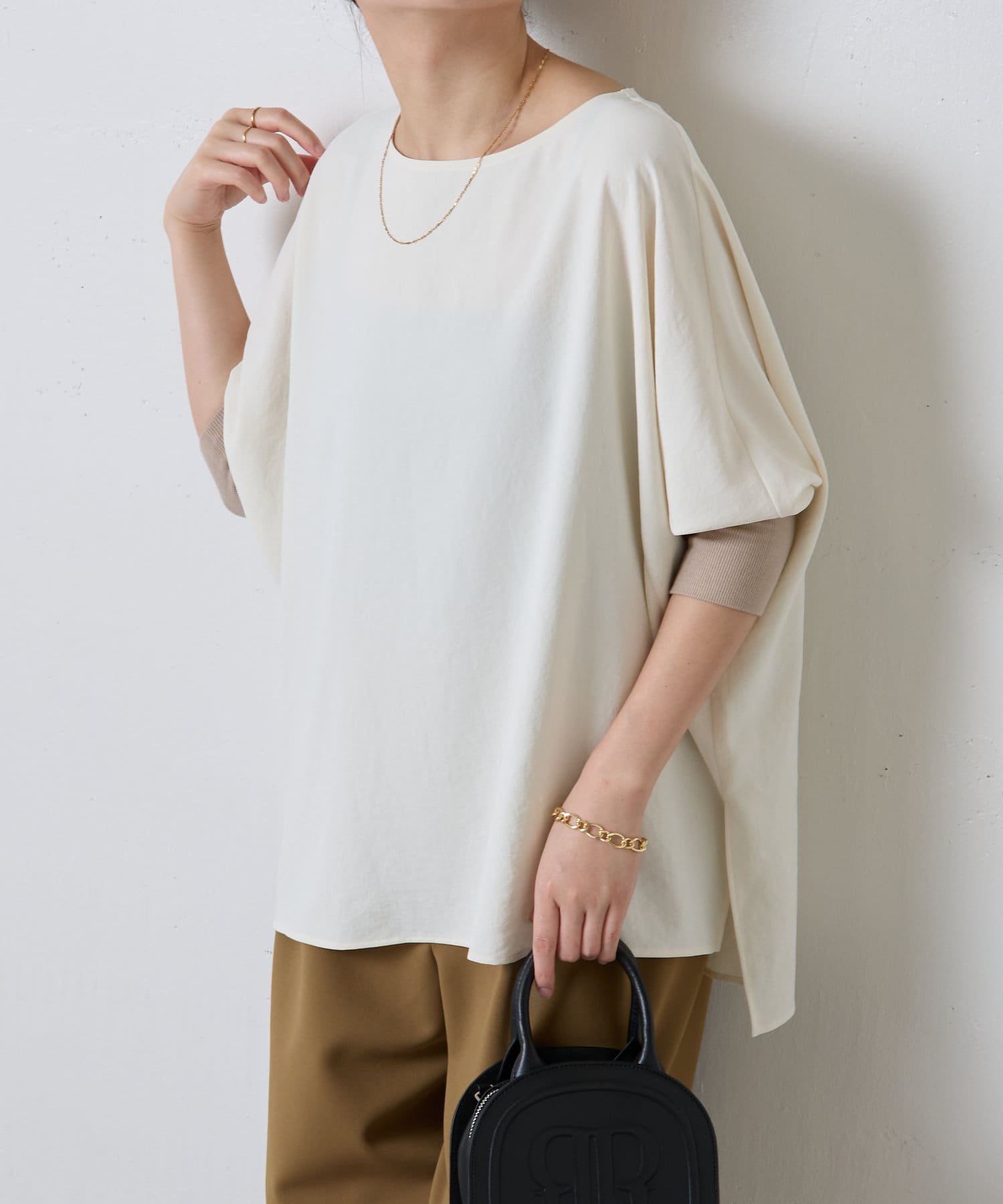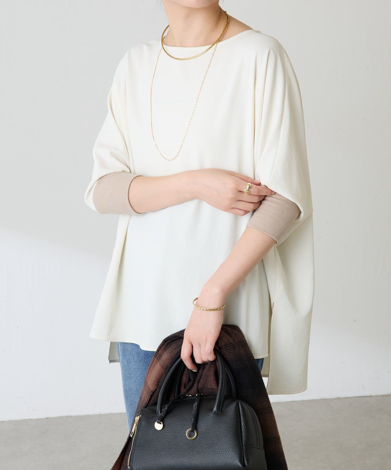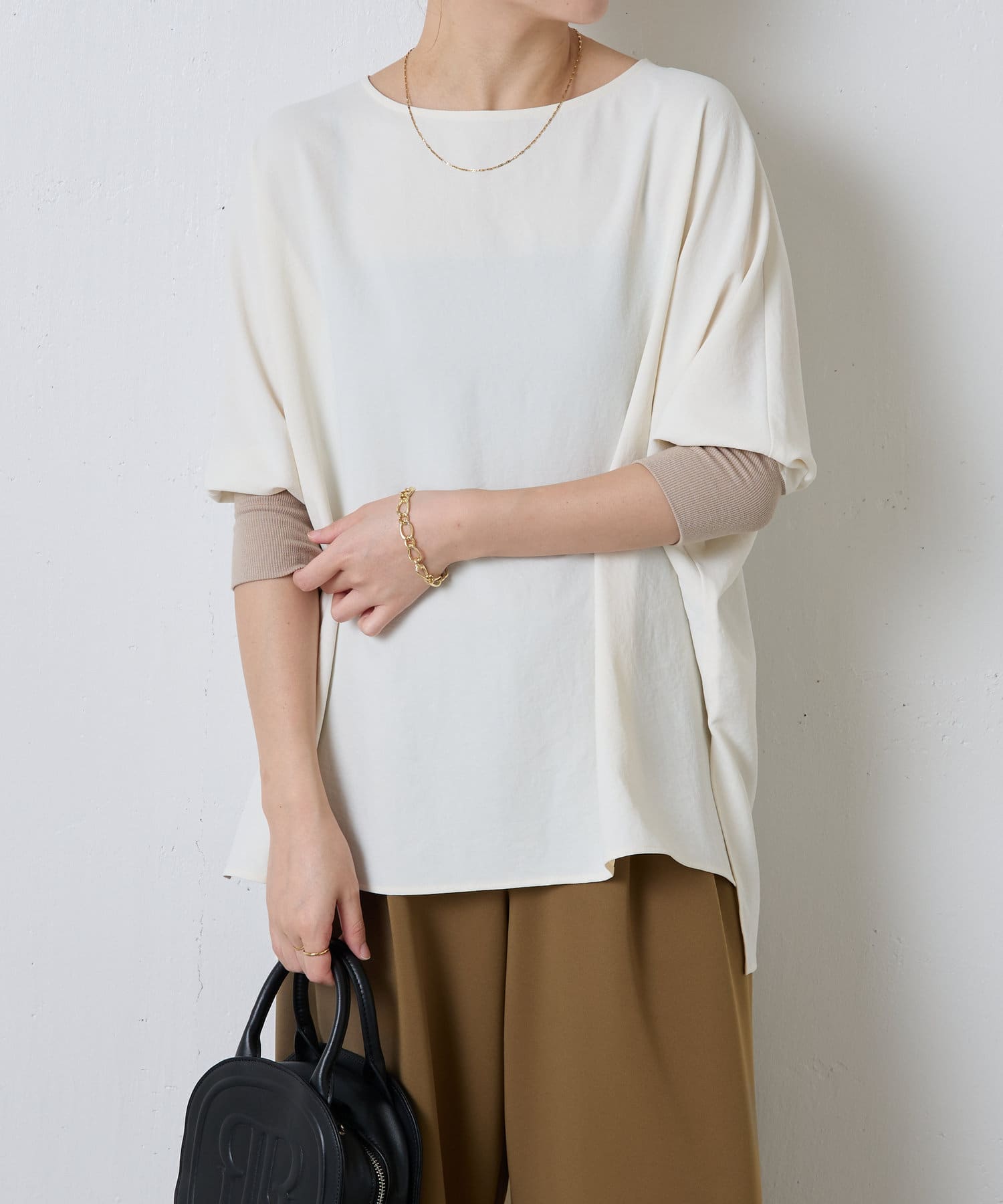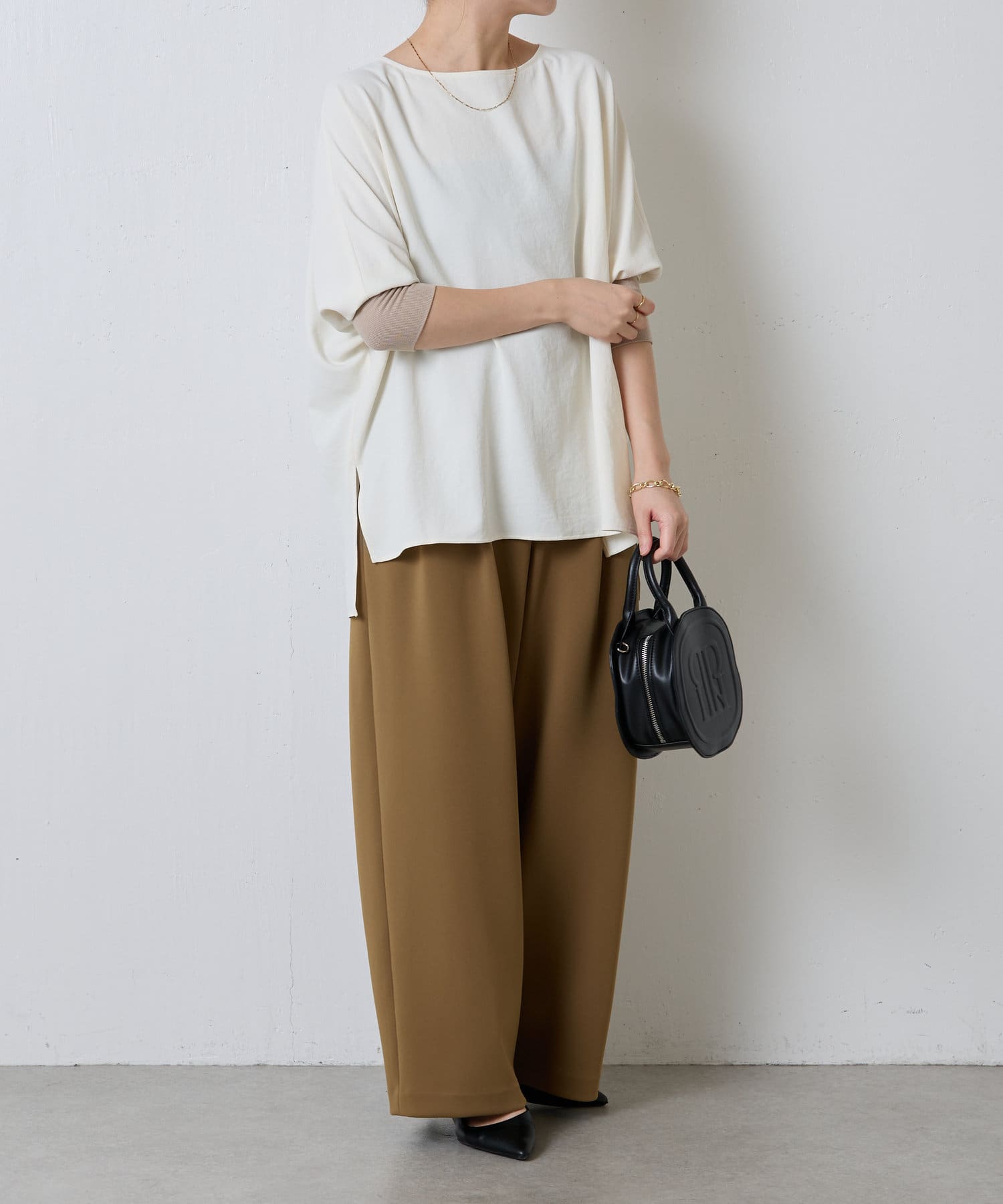 ドルマンの袖が身体のラインを拾わず、1枚でサマになる ドルマンの袖が身体のラインを拾わず、1枚でサマになる