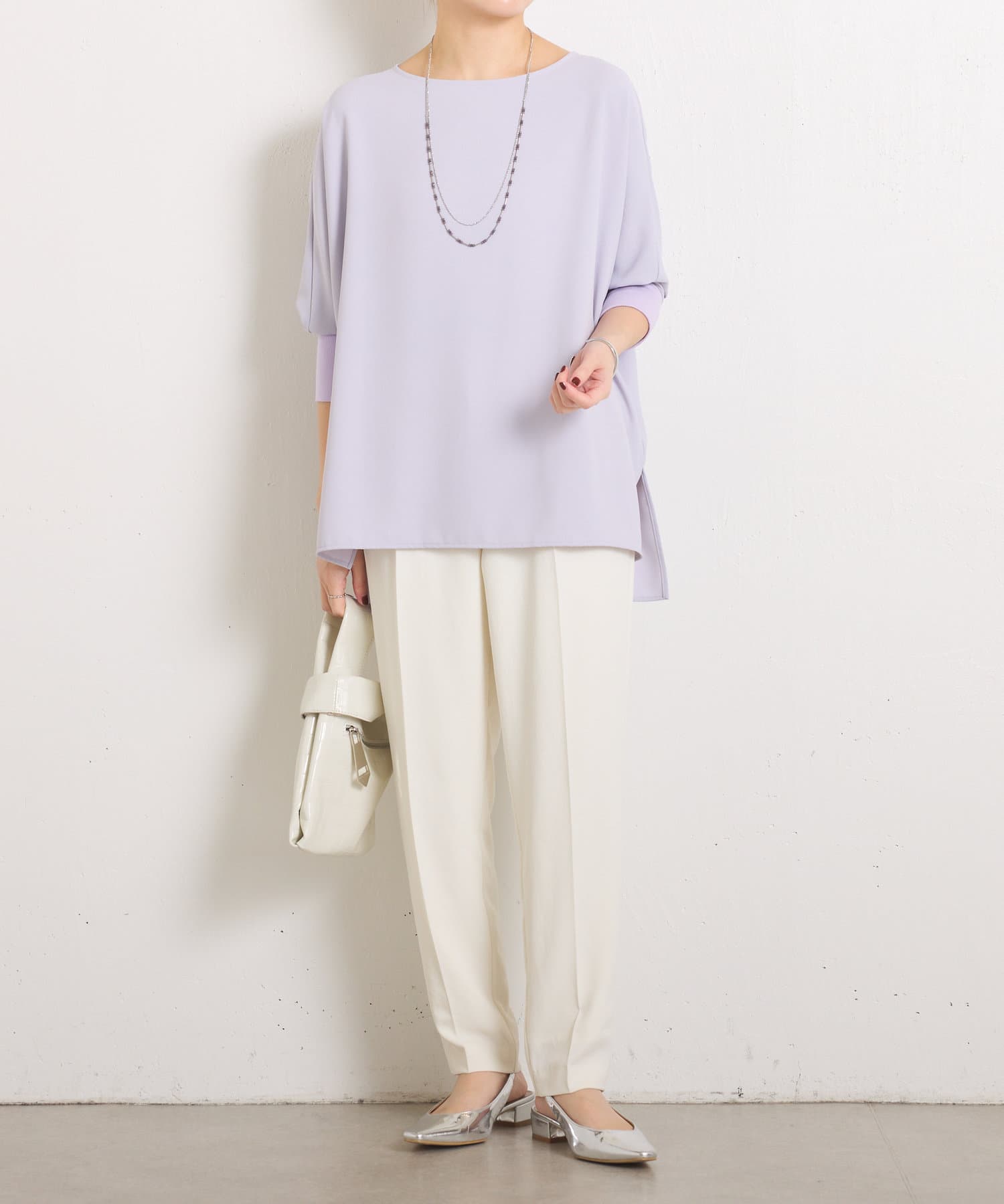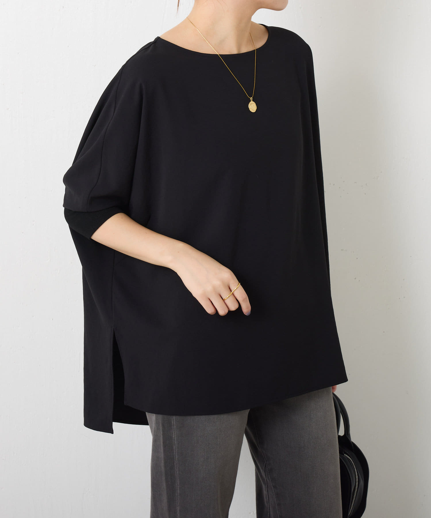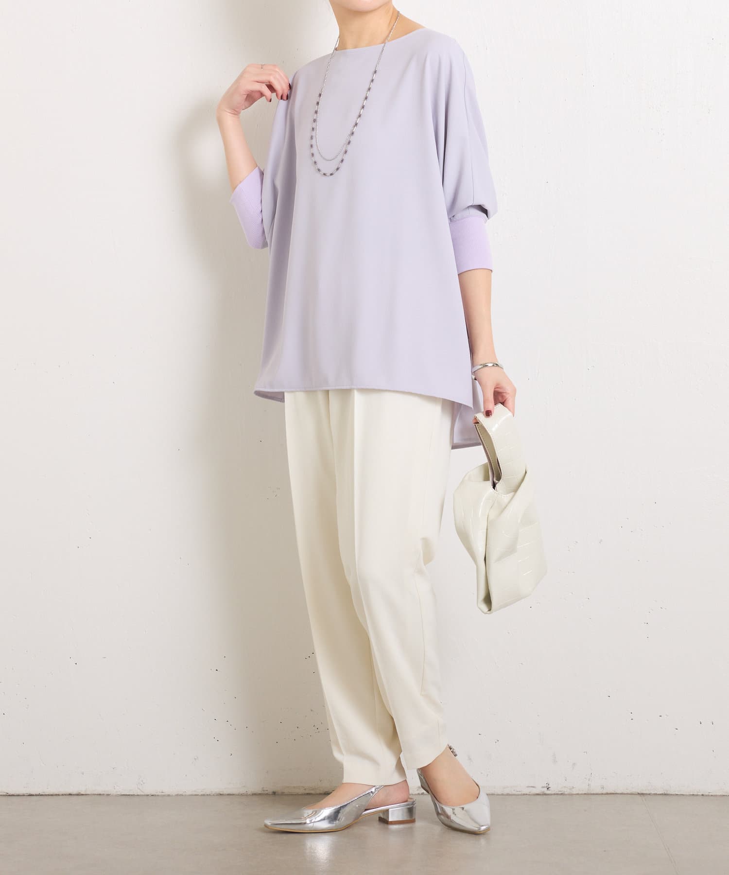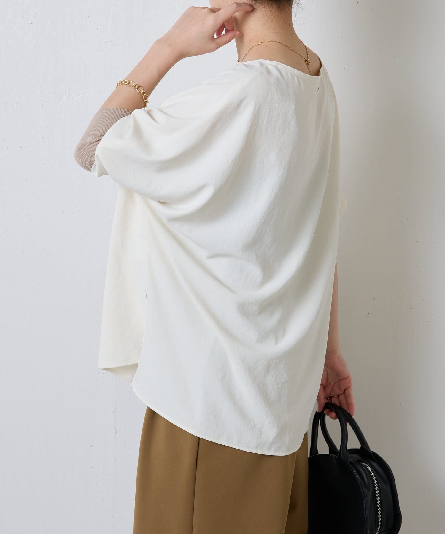 ドルマンの袖が身体のラインを拾わず、1枚でサマになる ドルマンの袖が身体のラインを拾わず、1枚でサマになる