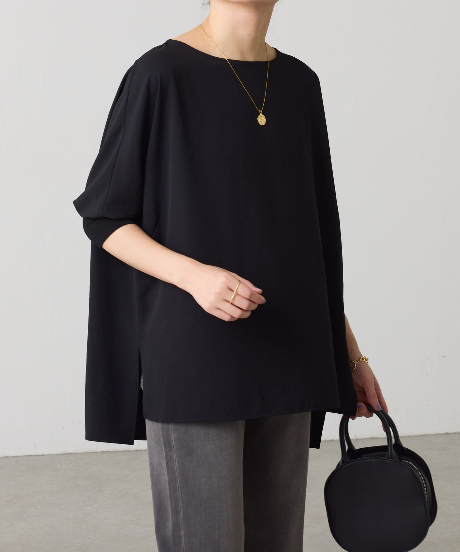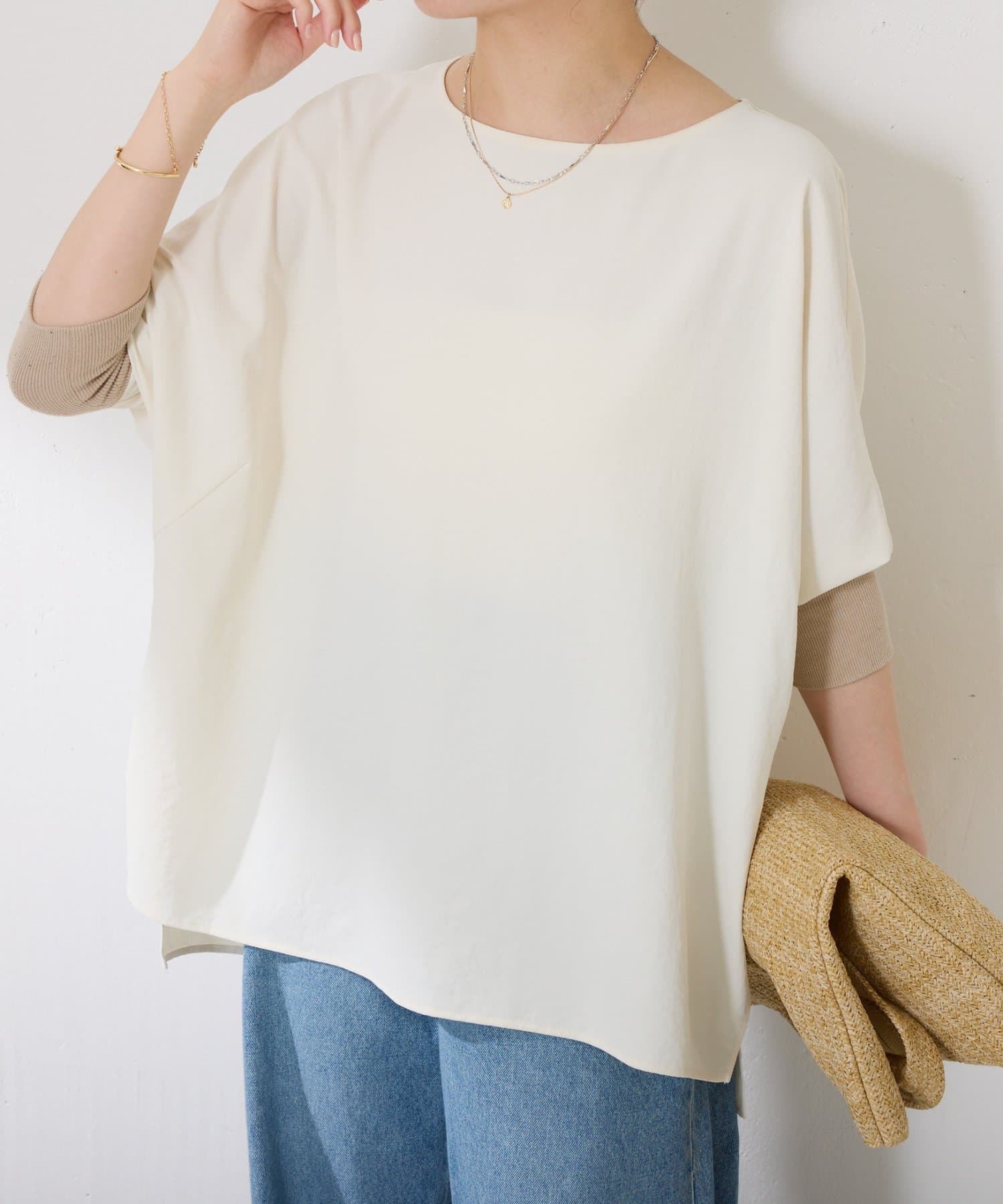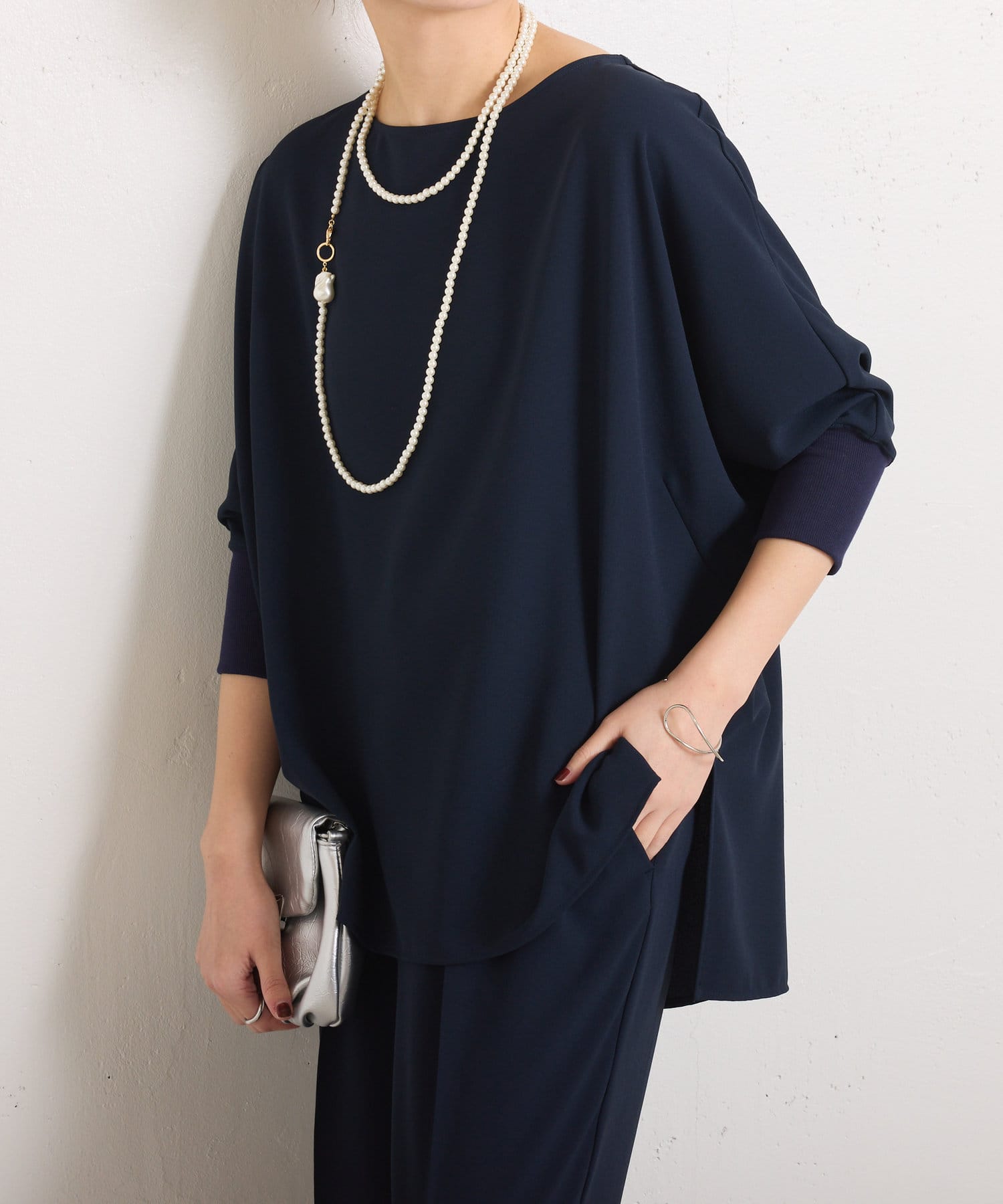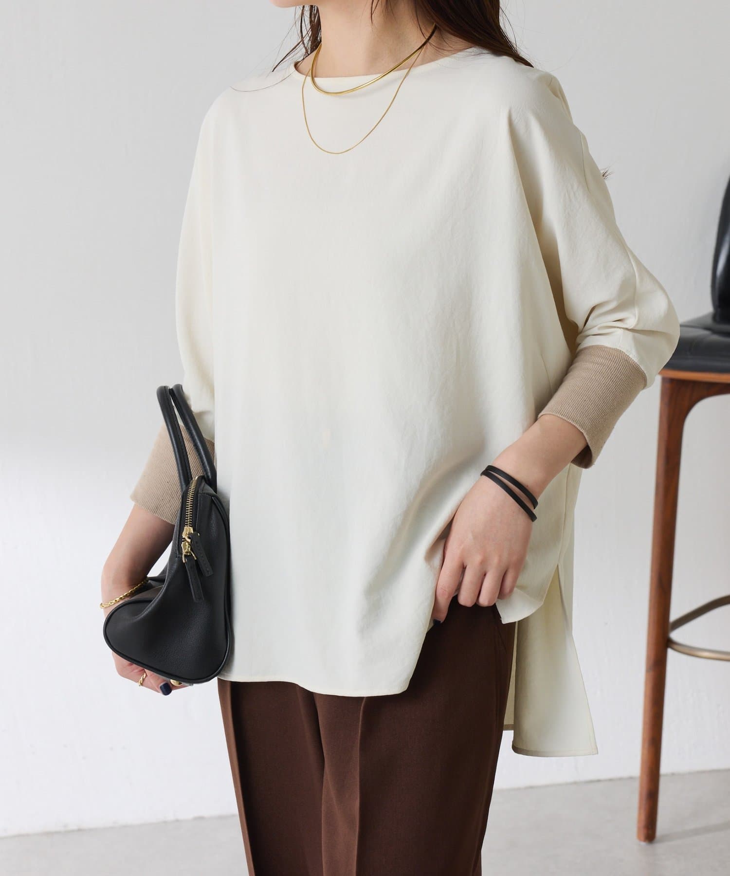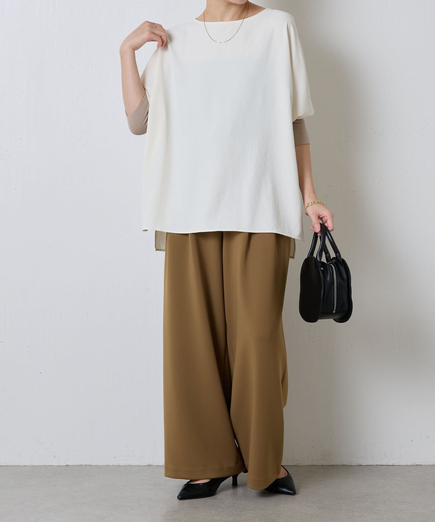 ドルマンの袖が身体のラインを拾わず、1枚でサマになる ドルマンの袖が身体のラインを拾わず、1枚でサマになる