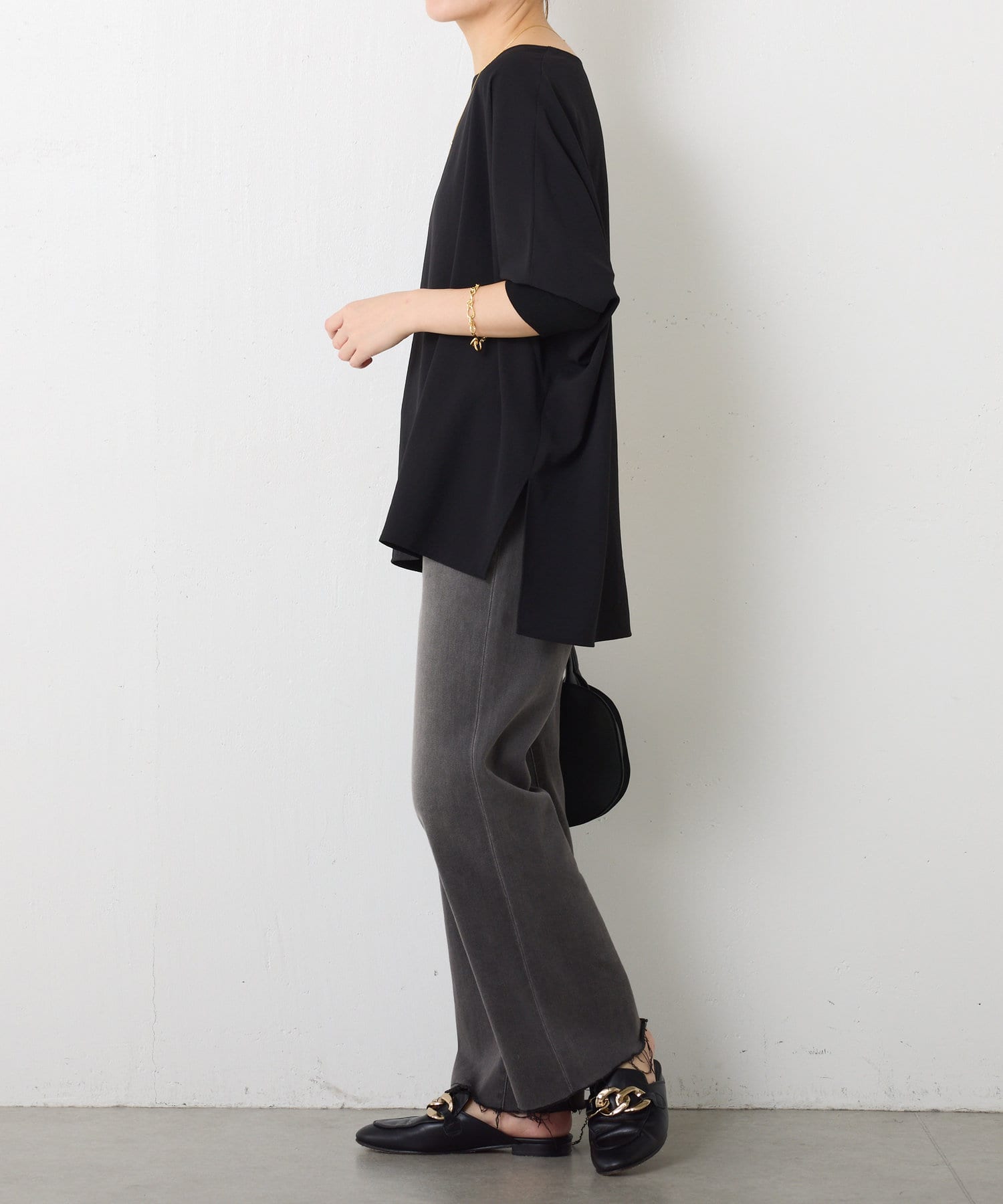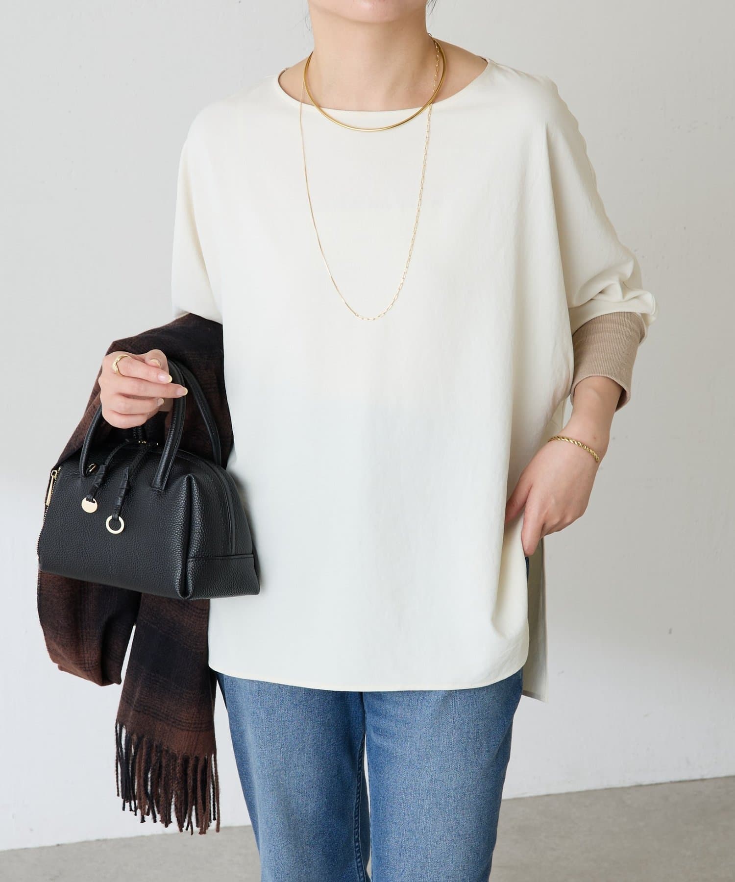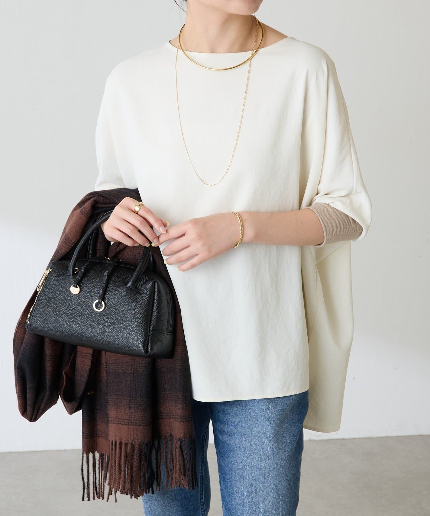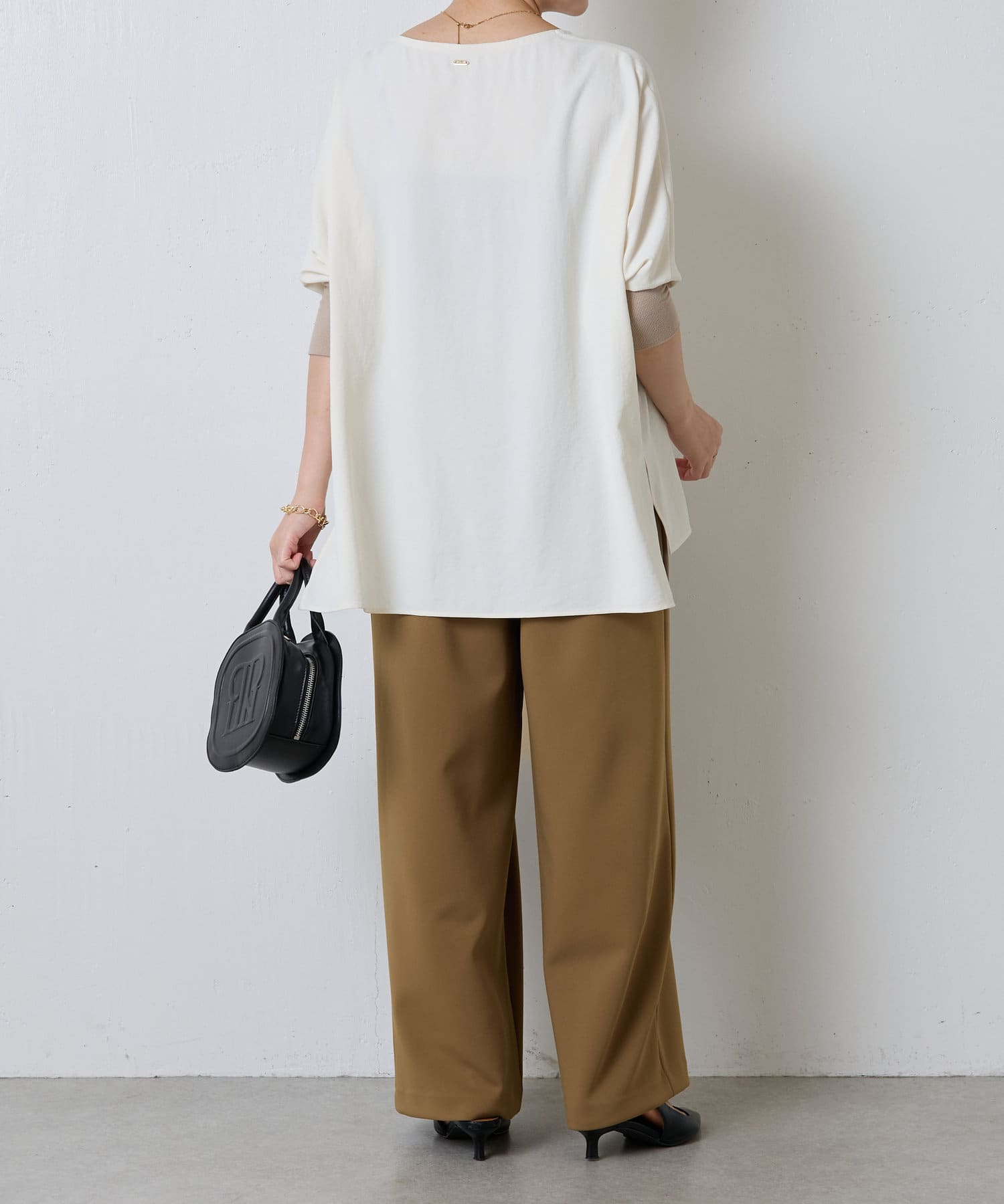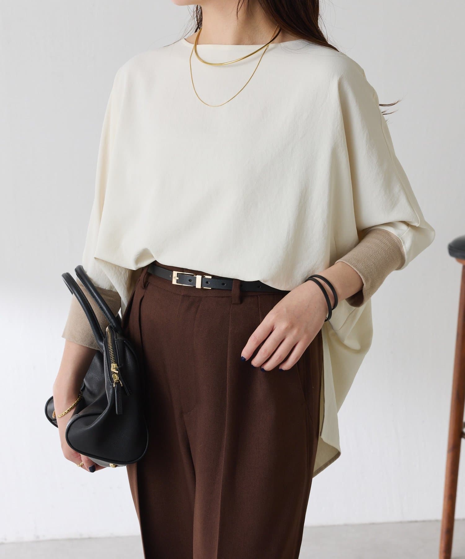 ドルマンの袖が身体のラインを拾わず、1枚でサマになる ドルマンの袖が身体のラインを拾わず、1枚でサマになる