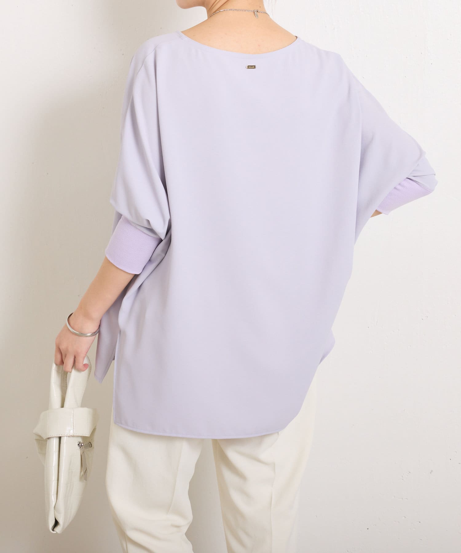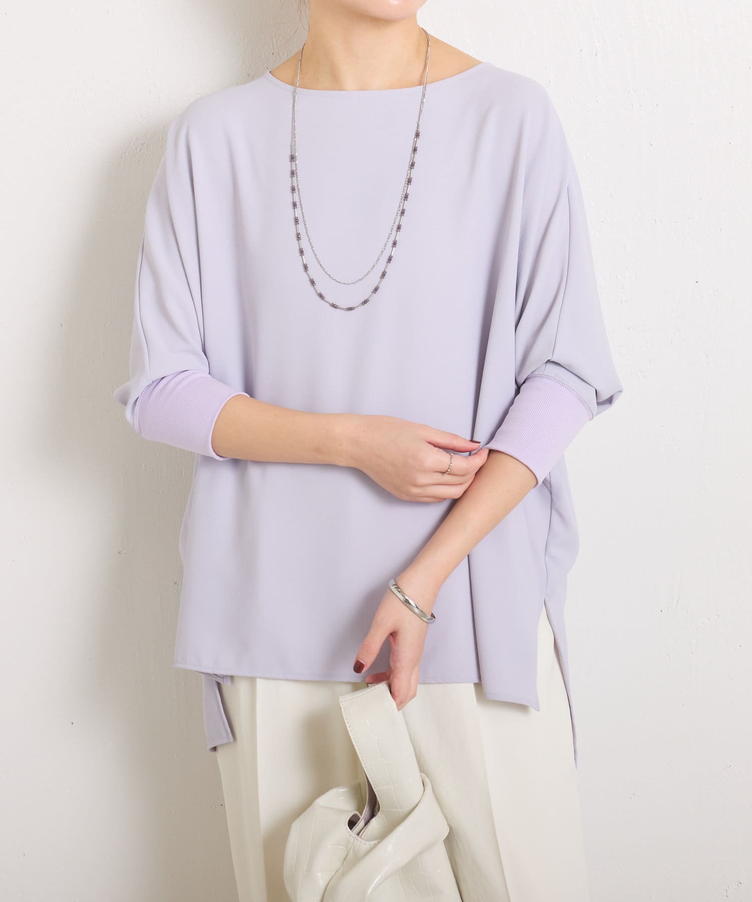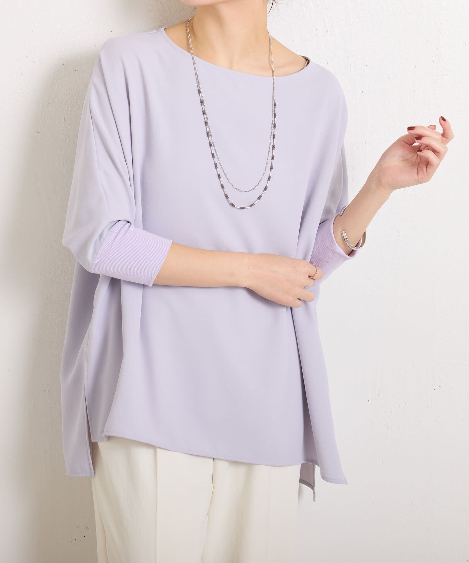 【速乾素材/ノンアイロン/とろみブラウス】ジャージ袖リブTブラウス