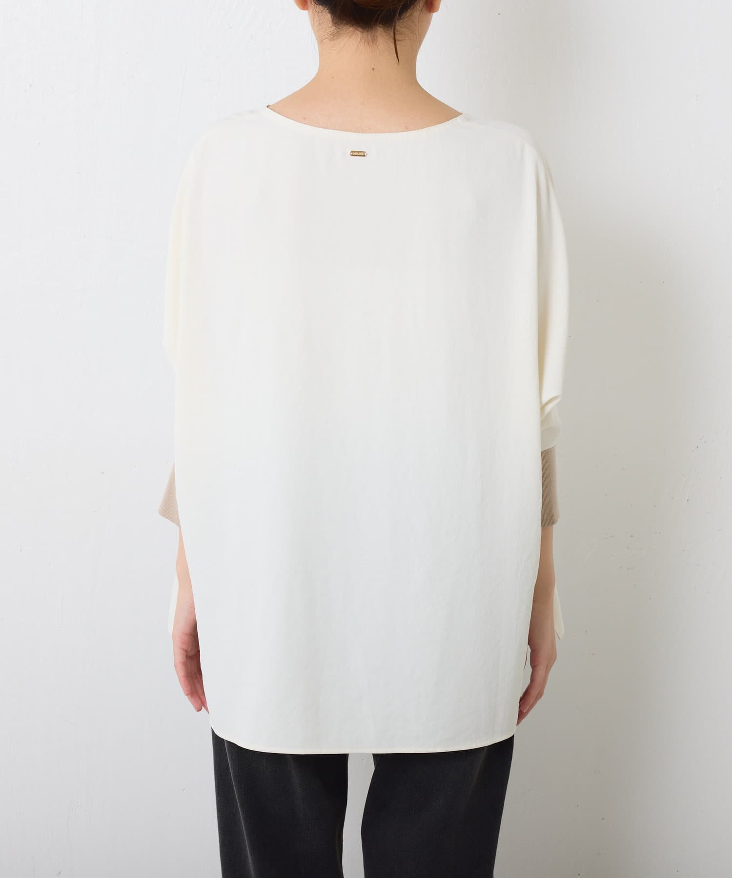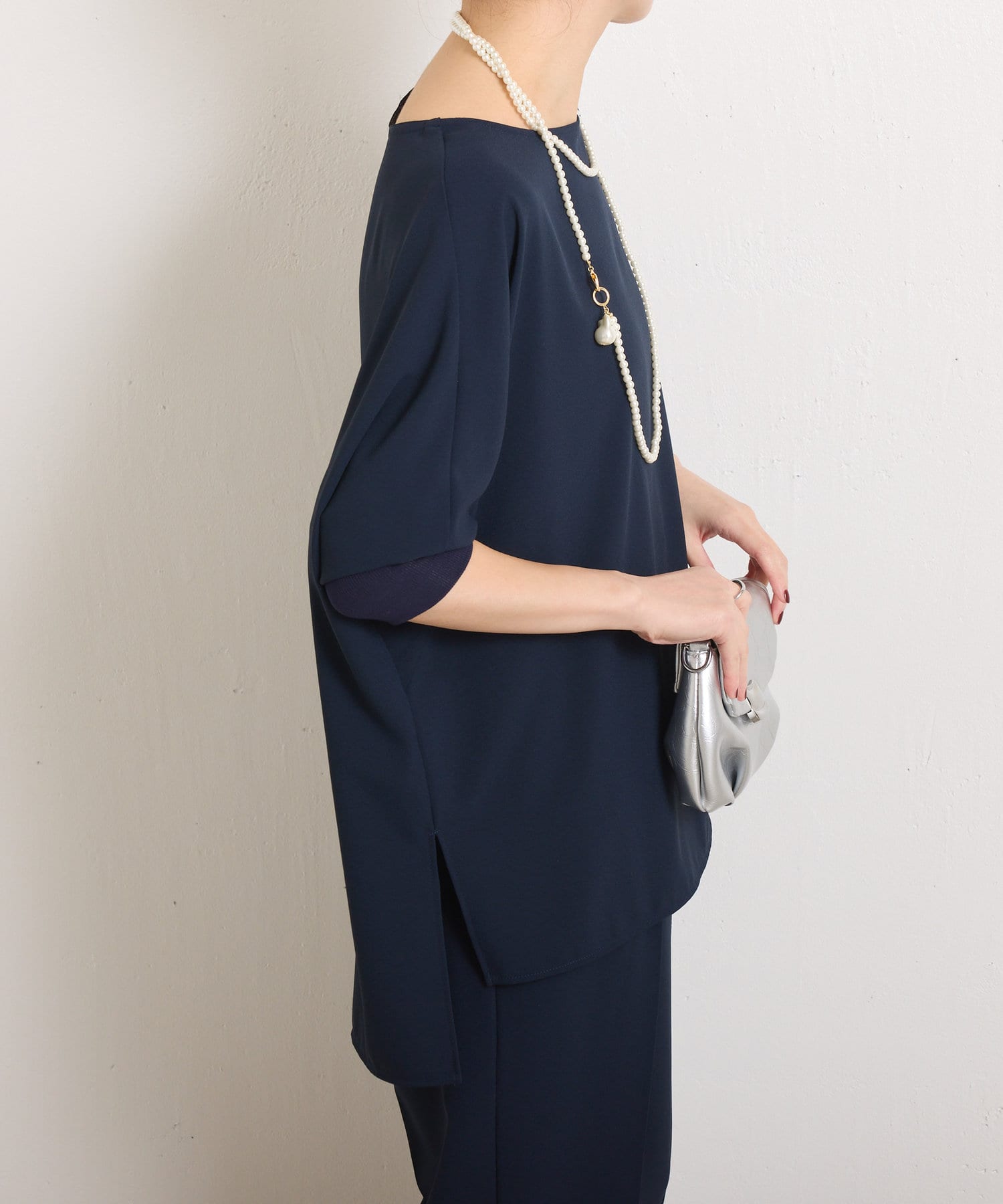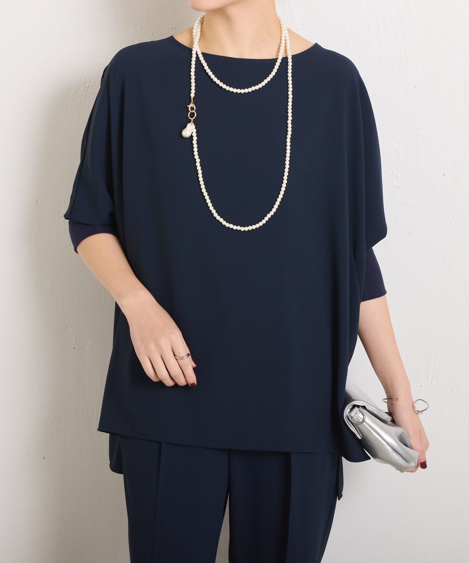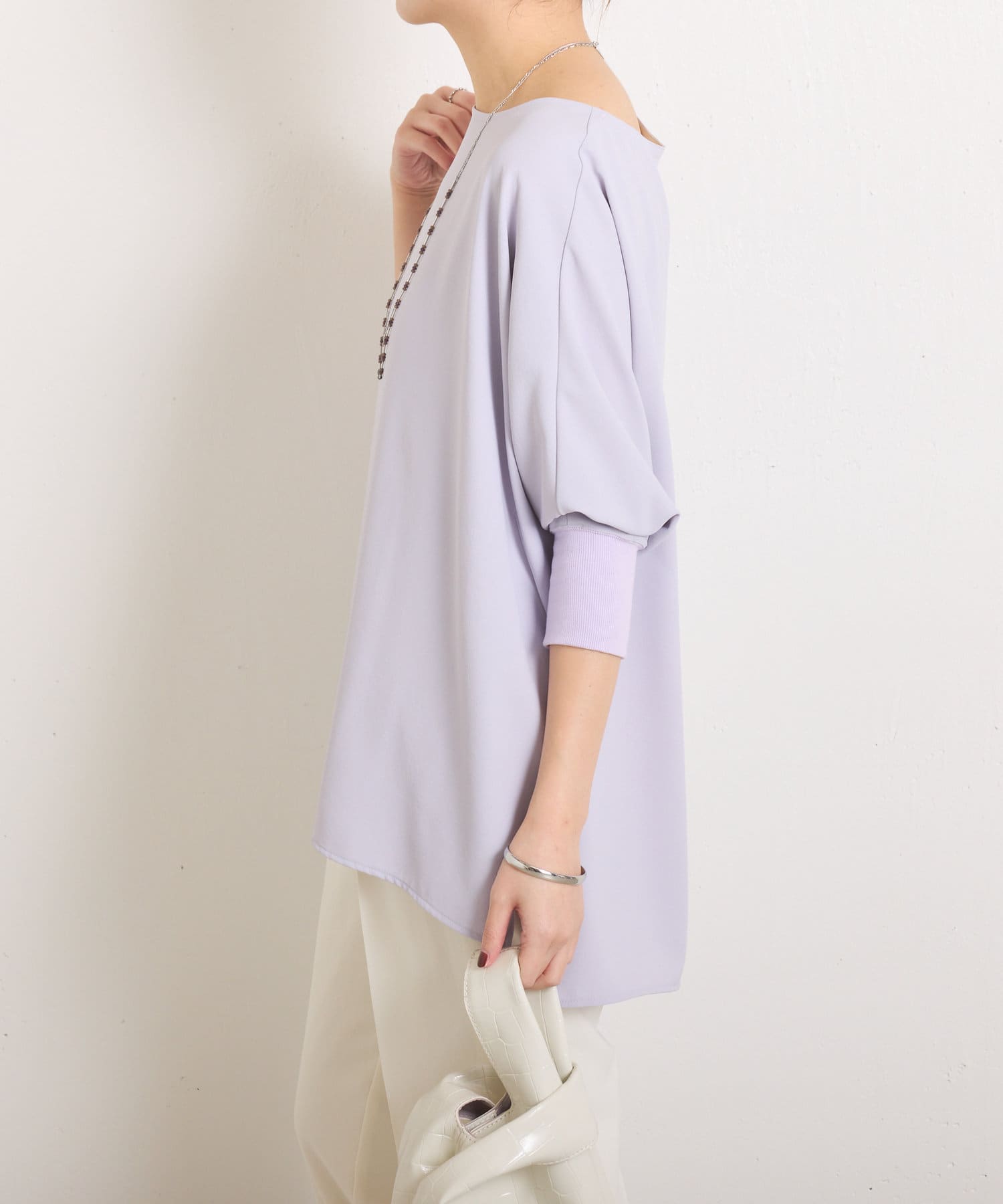 【速乾素材/ノンアイロン/とろみブラウス】ジャージ袖リブTブラウス