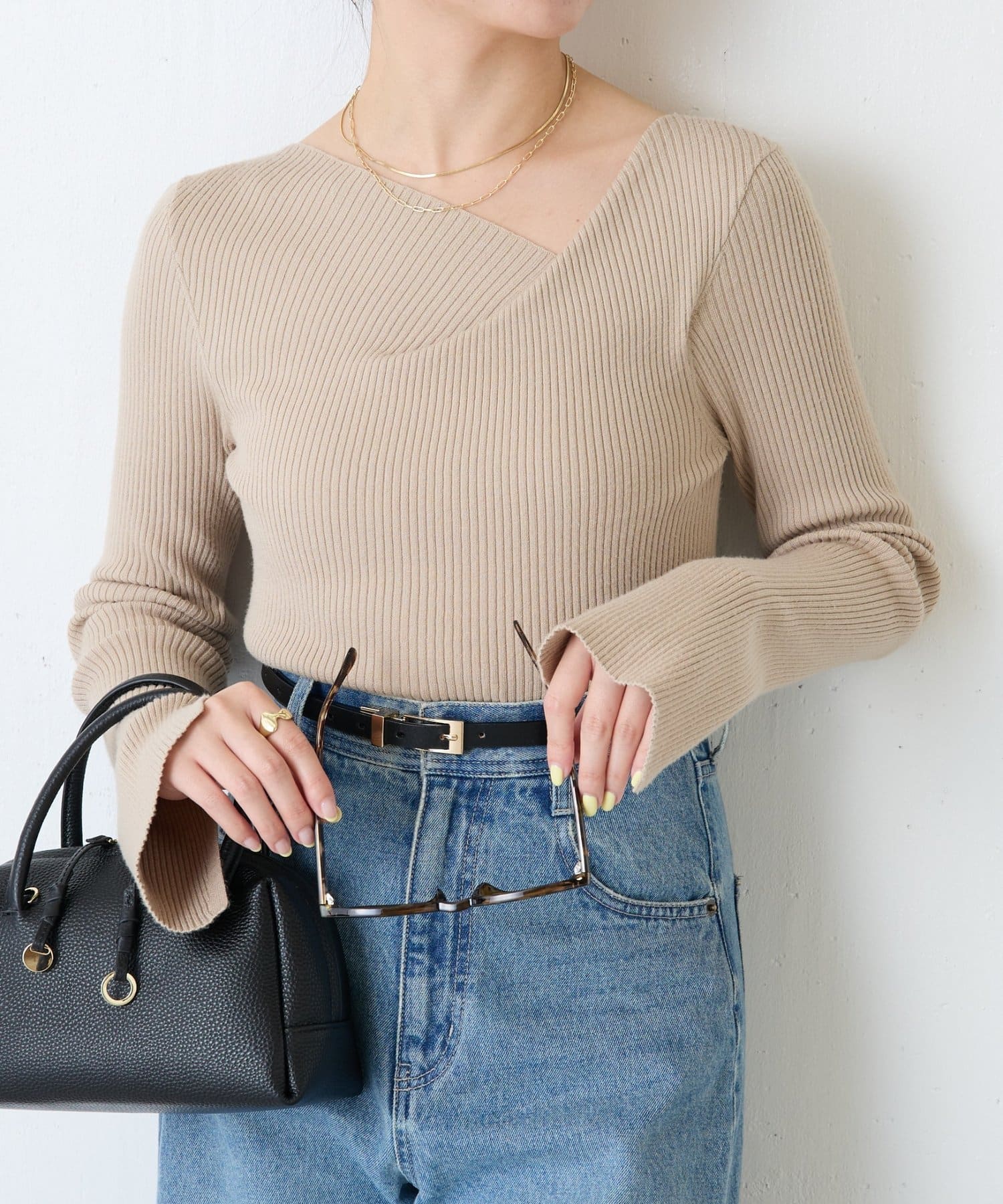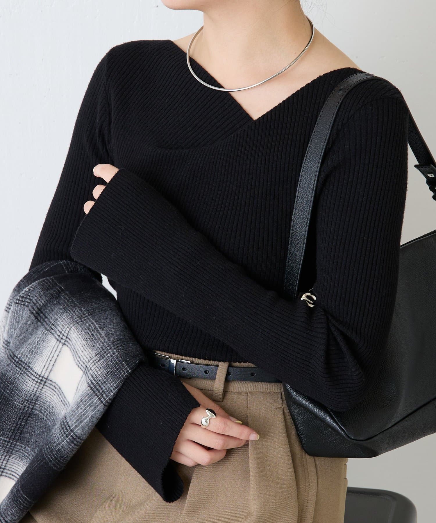 Takaokaも細見えできると絶賛の“デザインネックリブニット”にTakaoka監修の