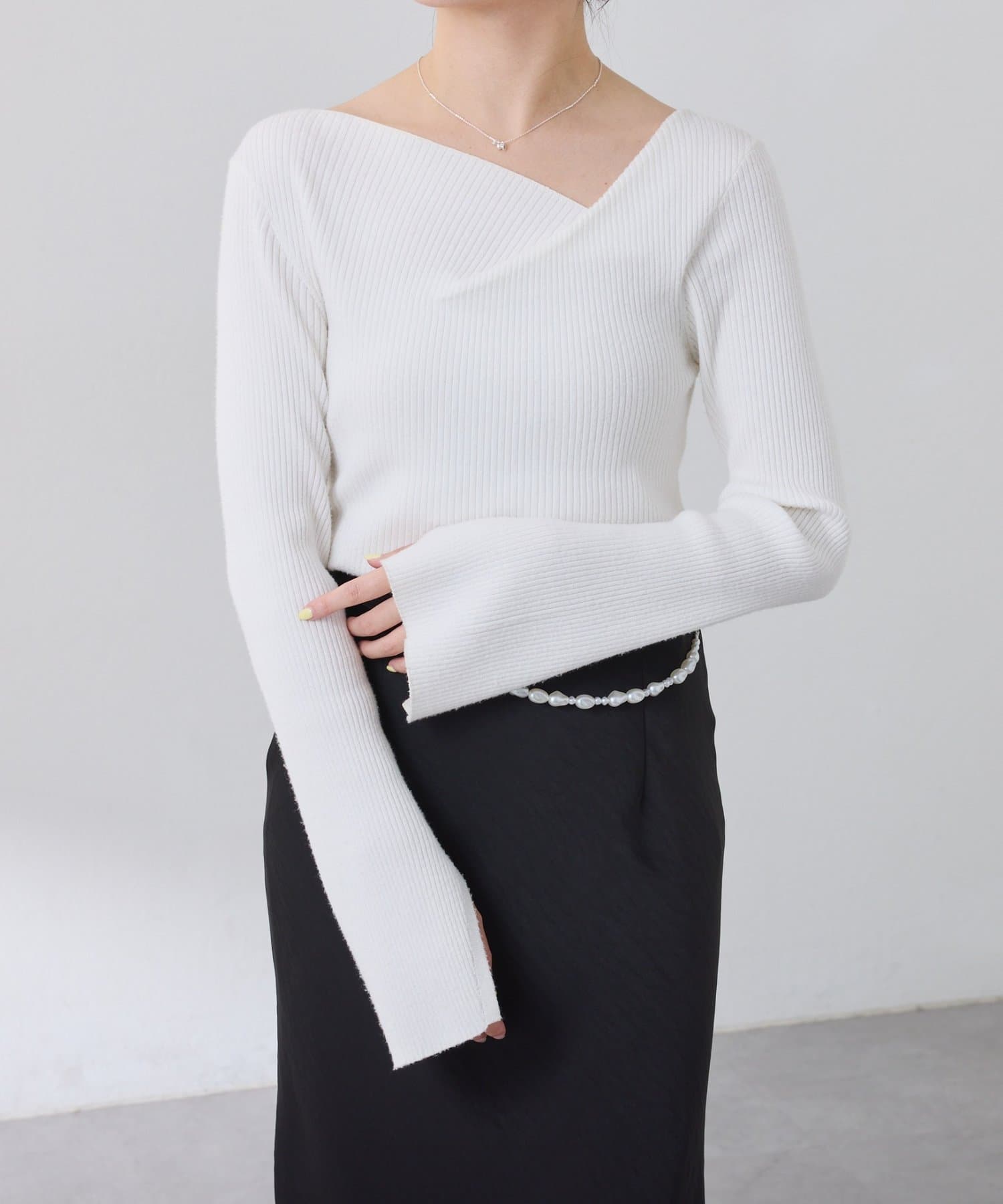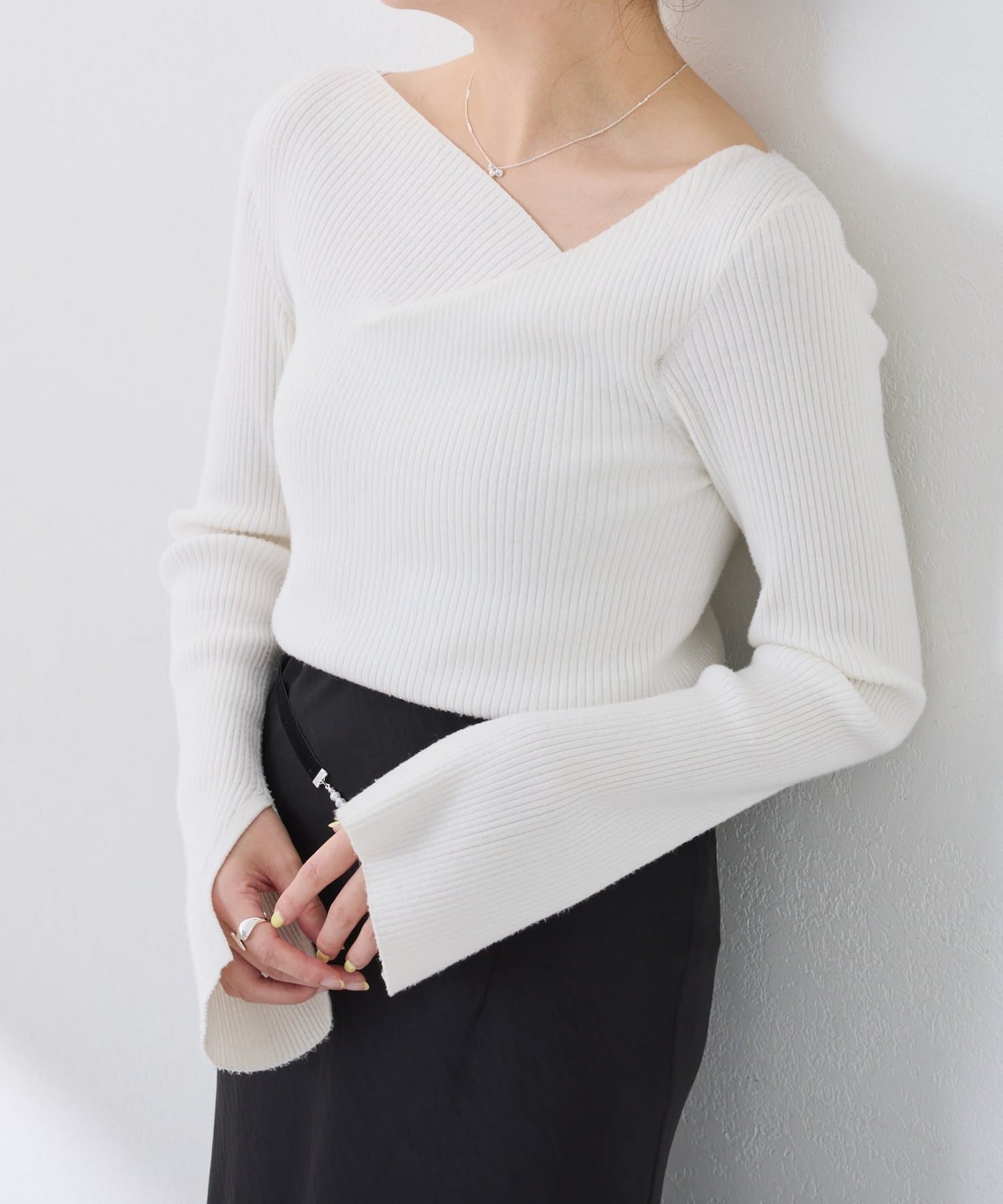 《再入荷リクエスト多数につき再販決定!》デザインネックリブニット