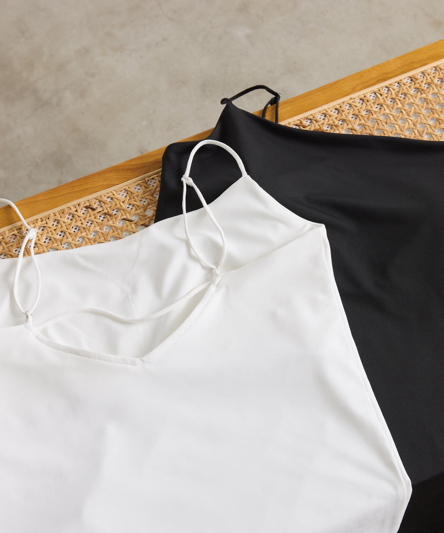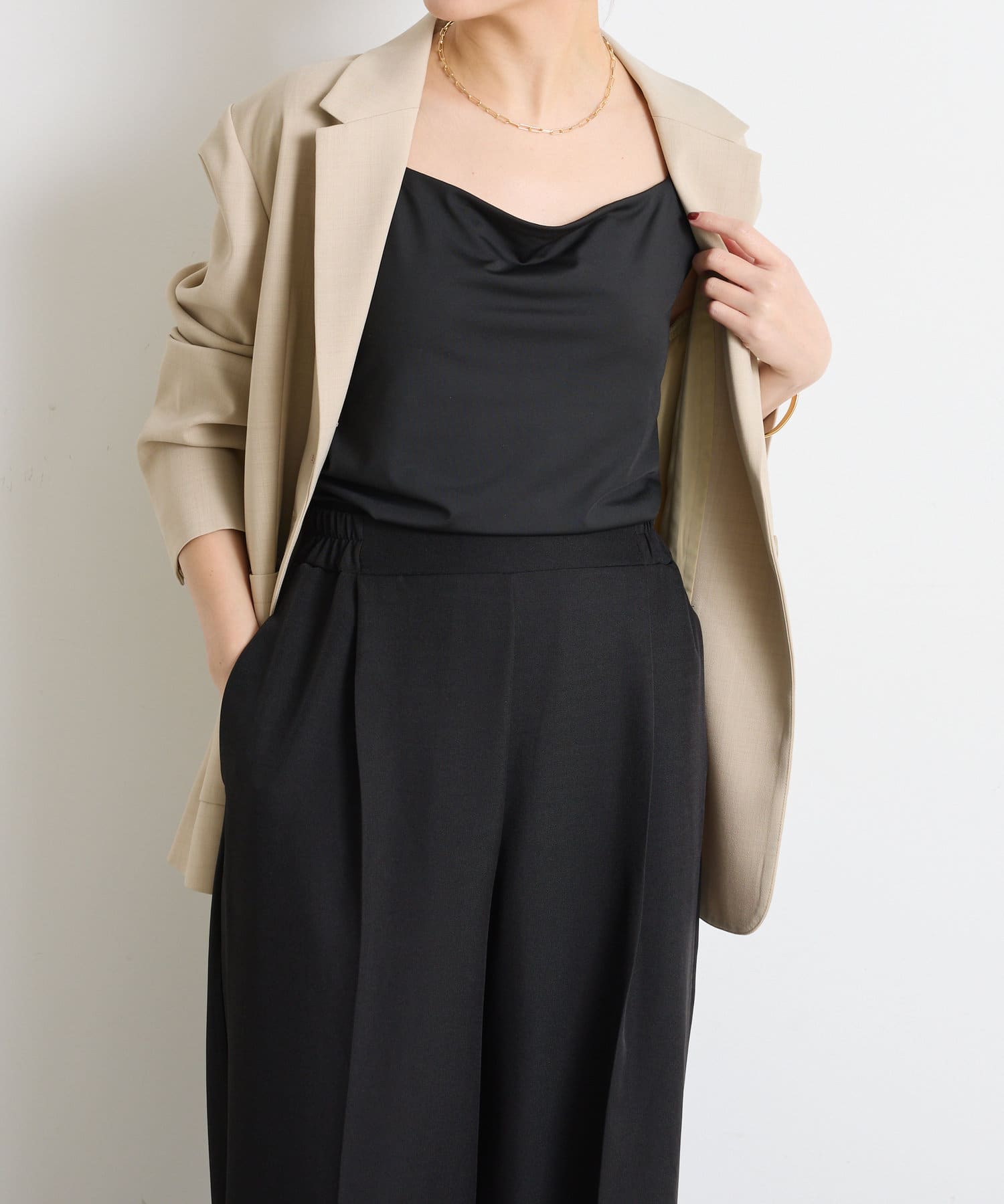 シアートップスと合わせて背中のデザインを活かすワンランク上のスタイリングもおすすめです。