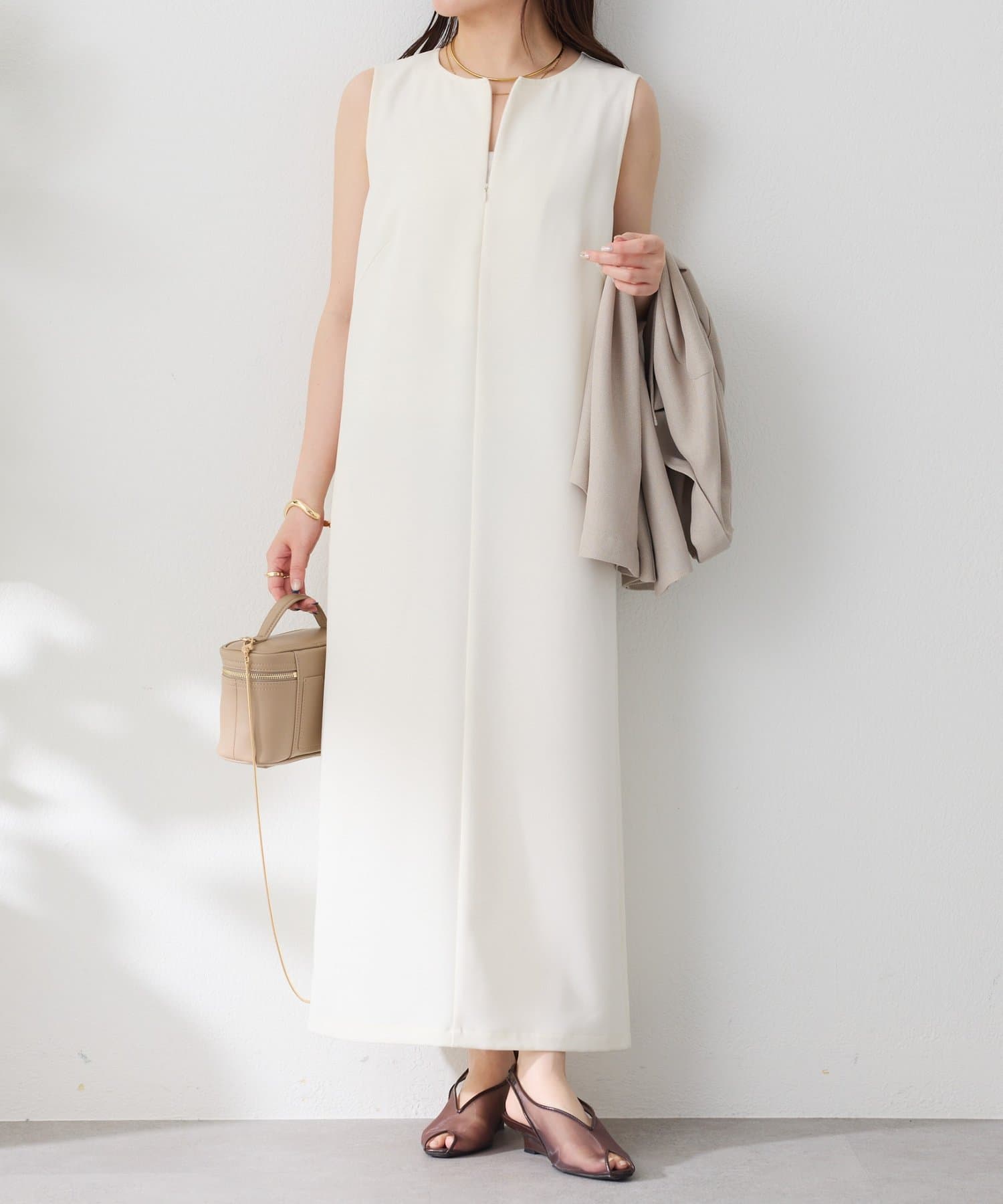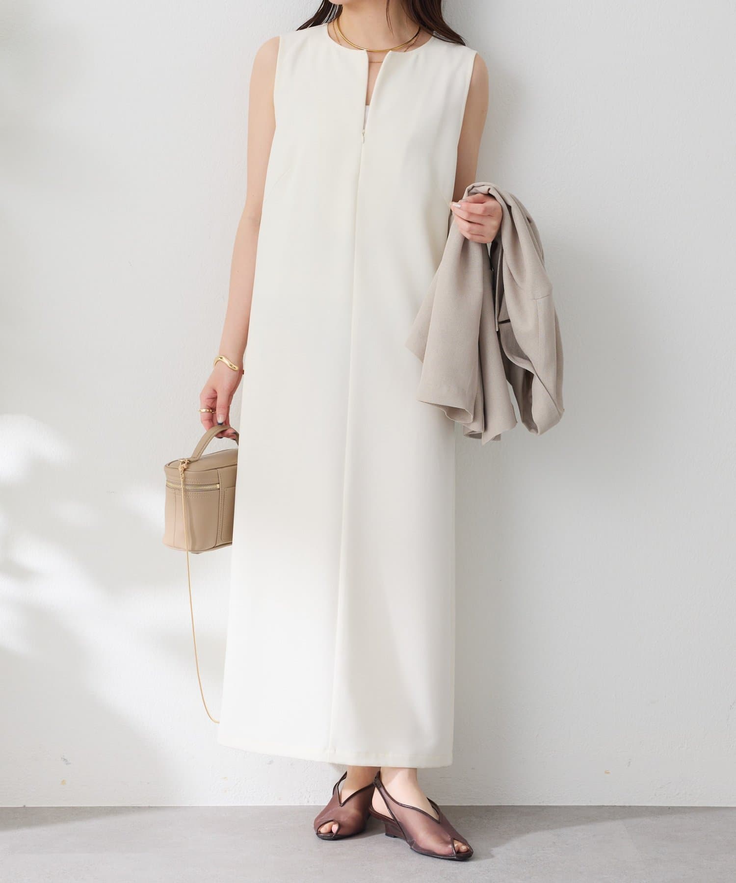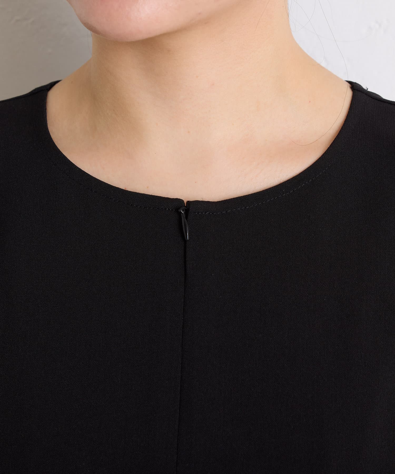 ・首元のファスナーがアクセントになったデザインで、脱ぎ着がしやすく、気分に合わせて首元の雰囲気も変えられます。