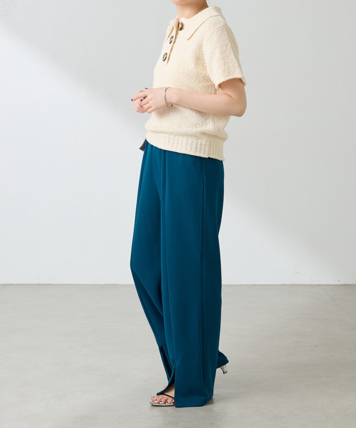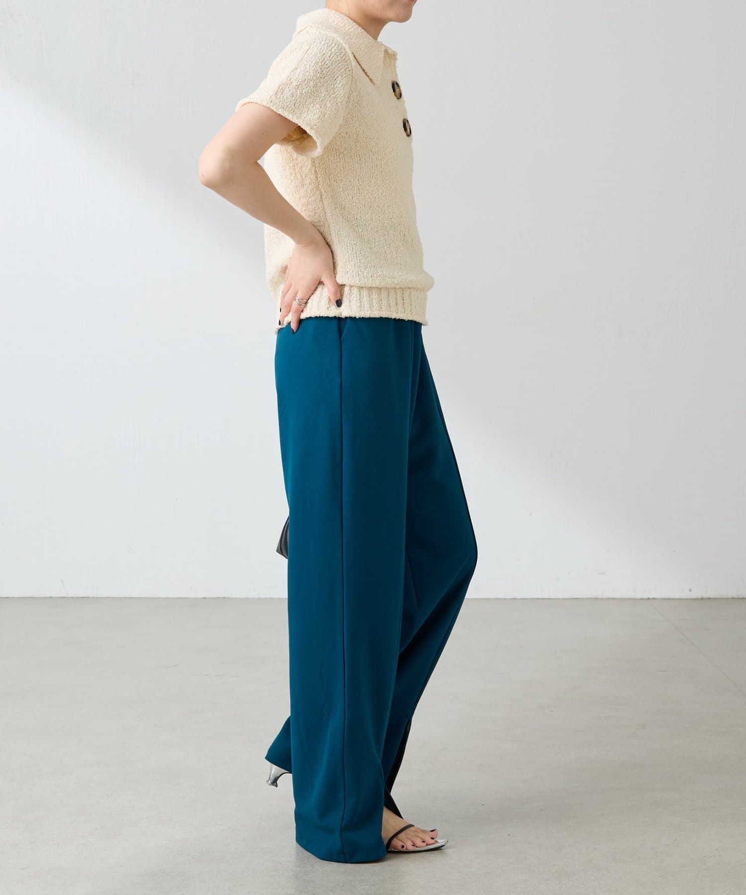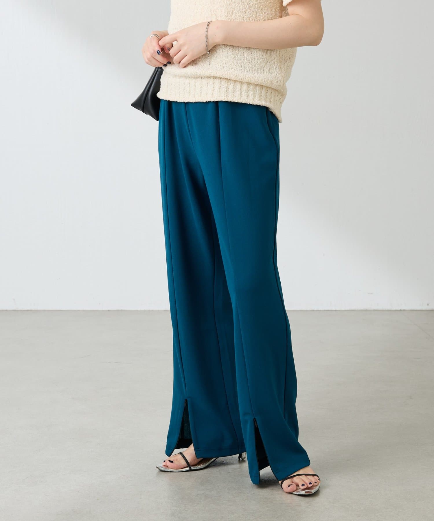 ・カットジョーゼットの素材を使用したきれいめに履けるイージーパンツ。