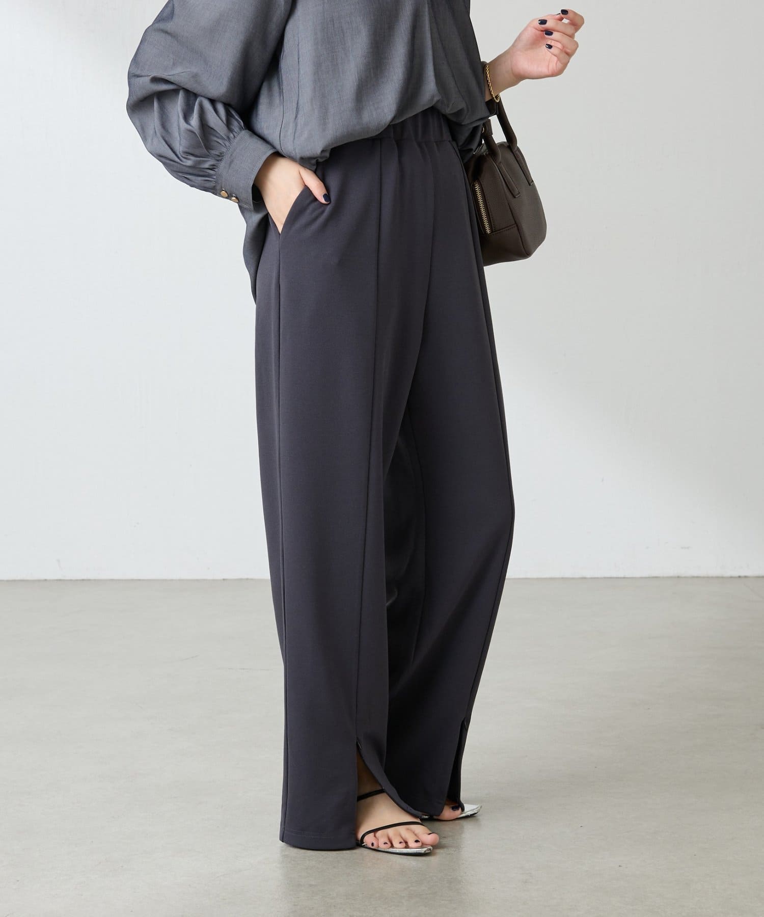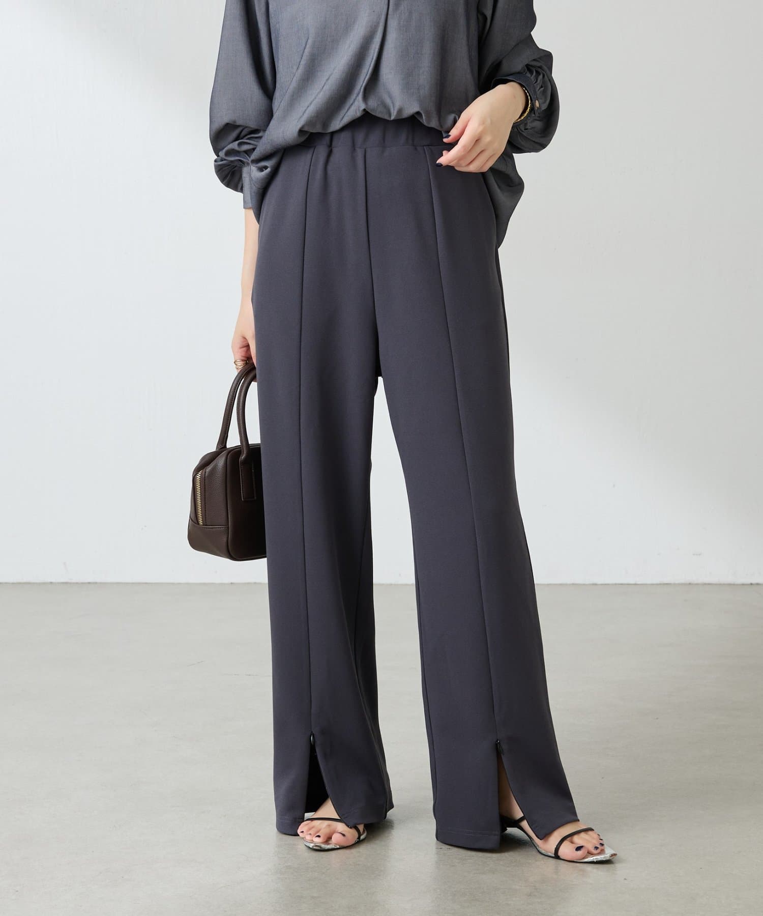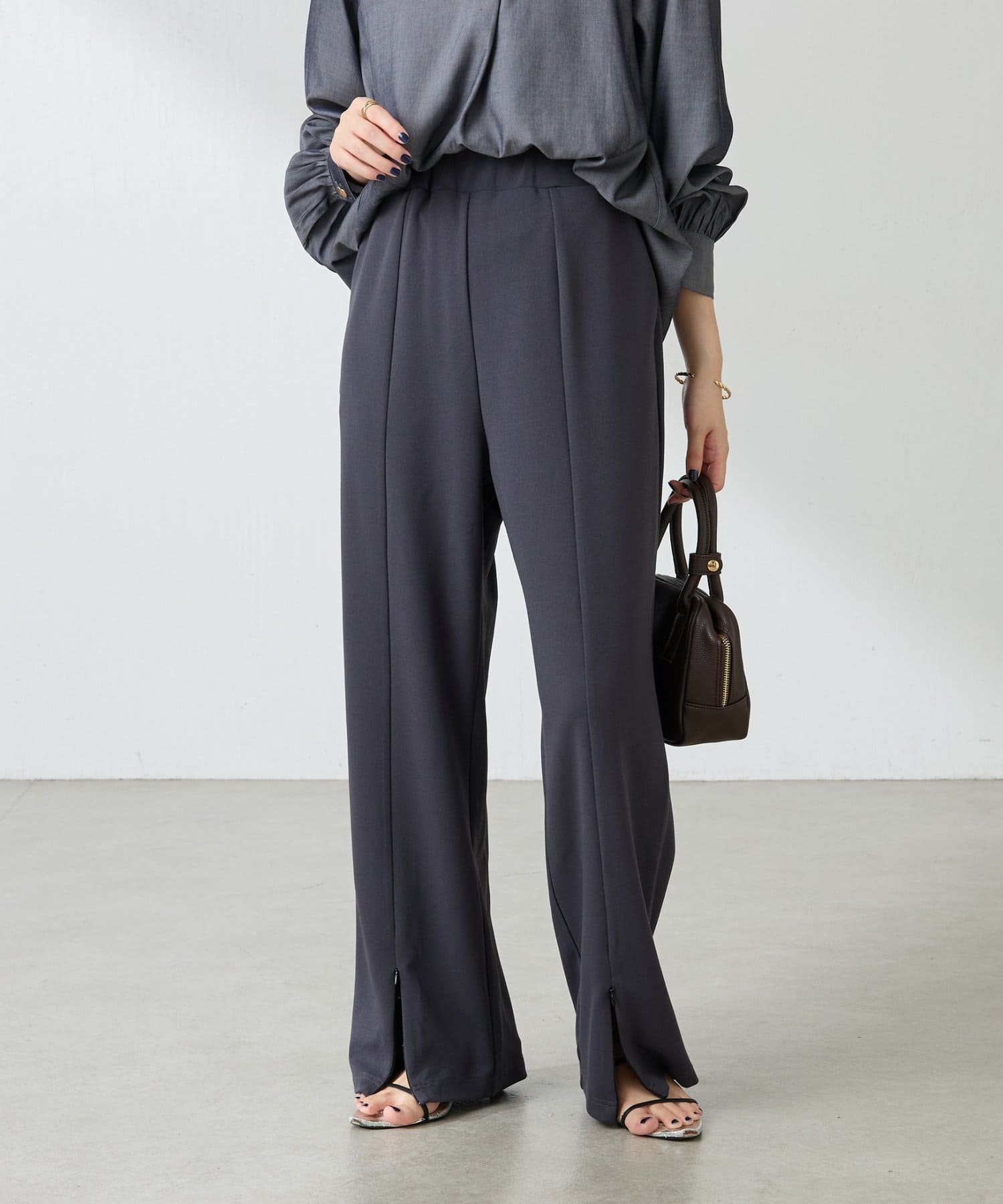 【伸縮性◎】フロントジップカットジョーゼットパンツ