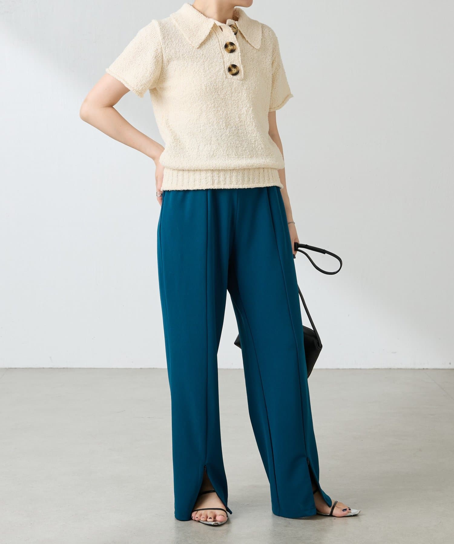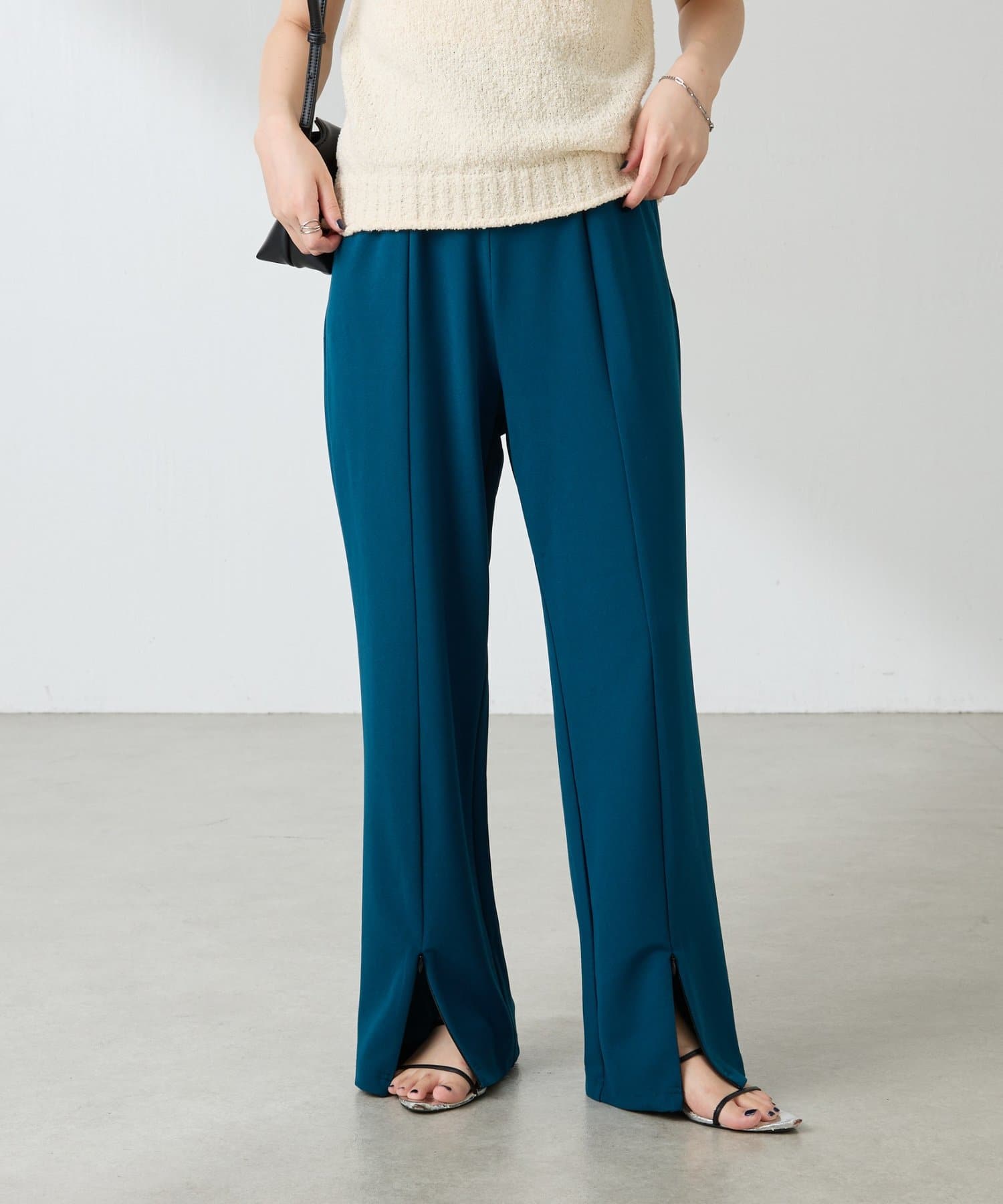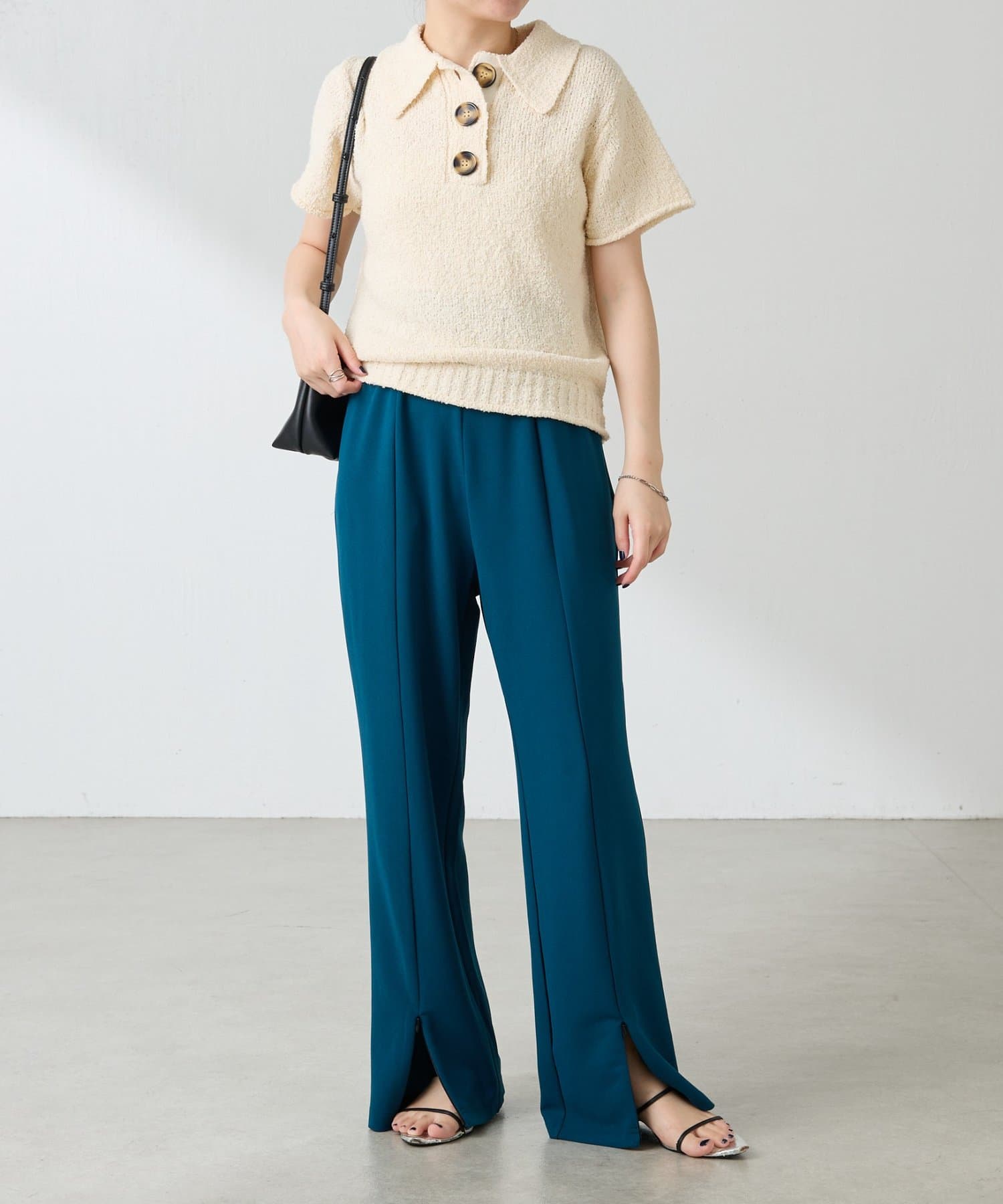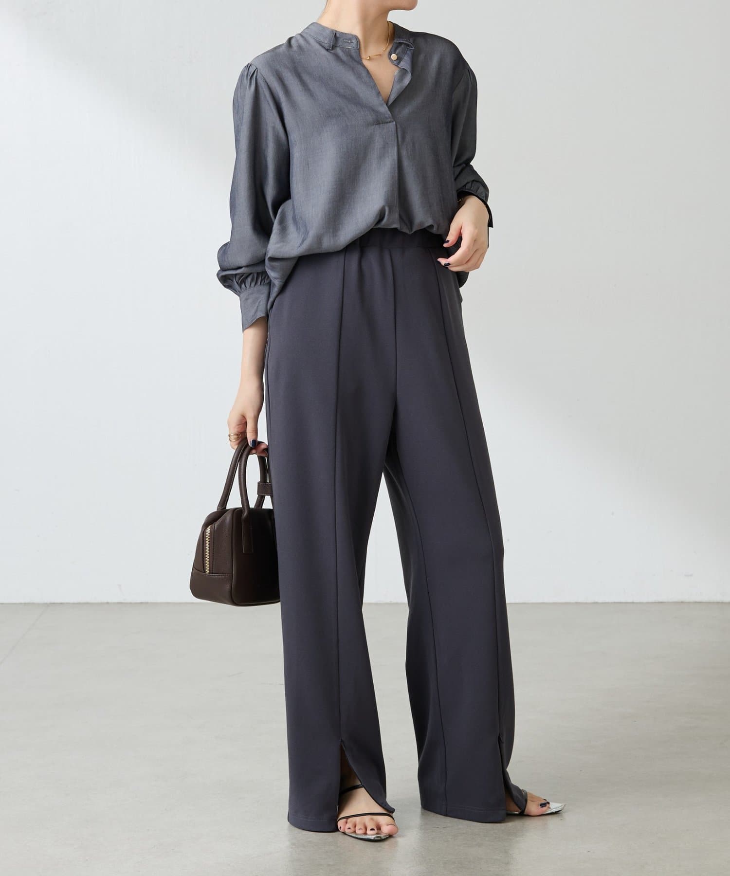 【伸縮性◎】フロントジップカットジョーゼットパンツ
