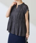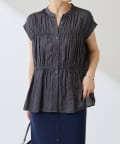 ・肌触りの良いサテン生地にたっぷりとギャザーを入れた着映えトップスです。