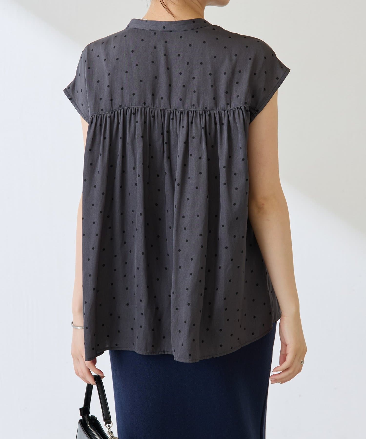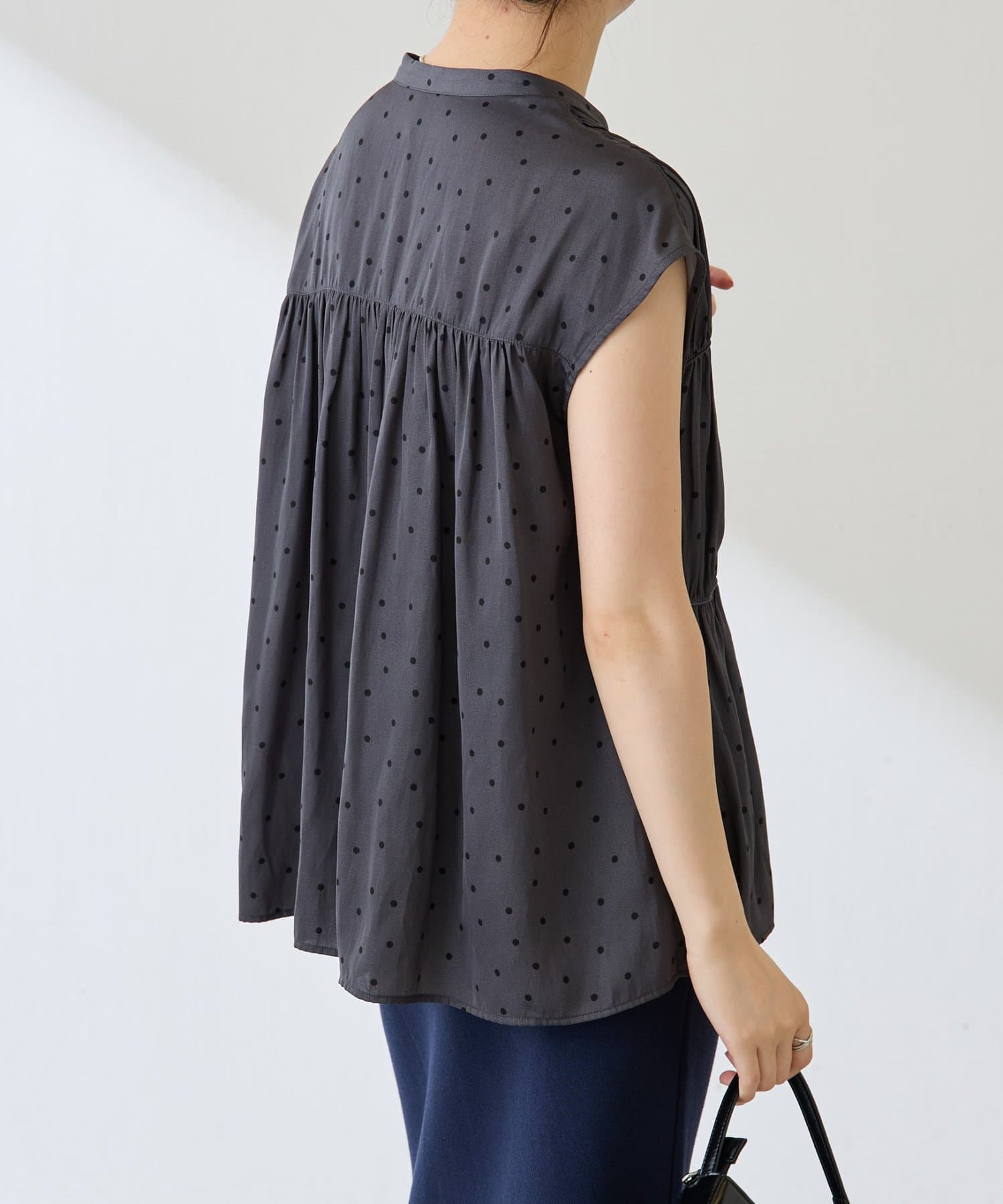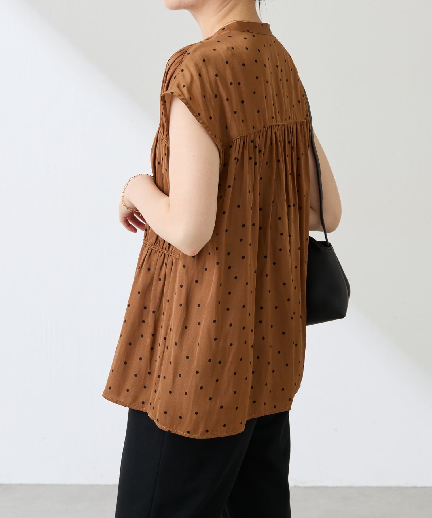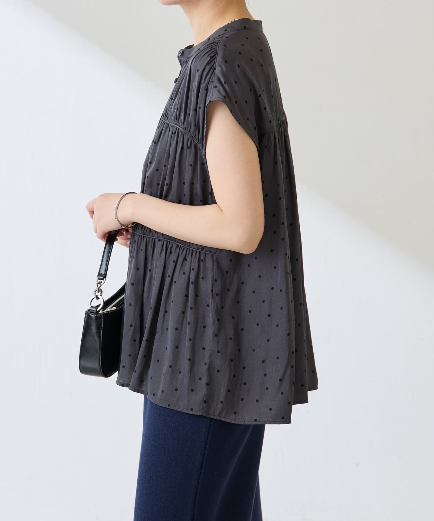 1枚で着映えするたっぷりギャザーのドットブラウス