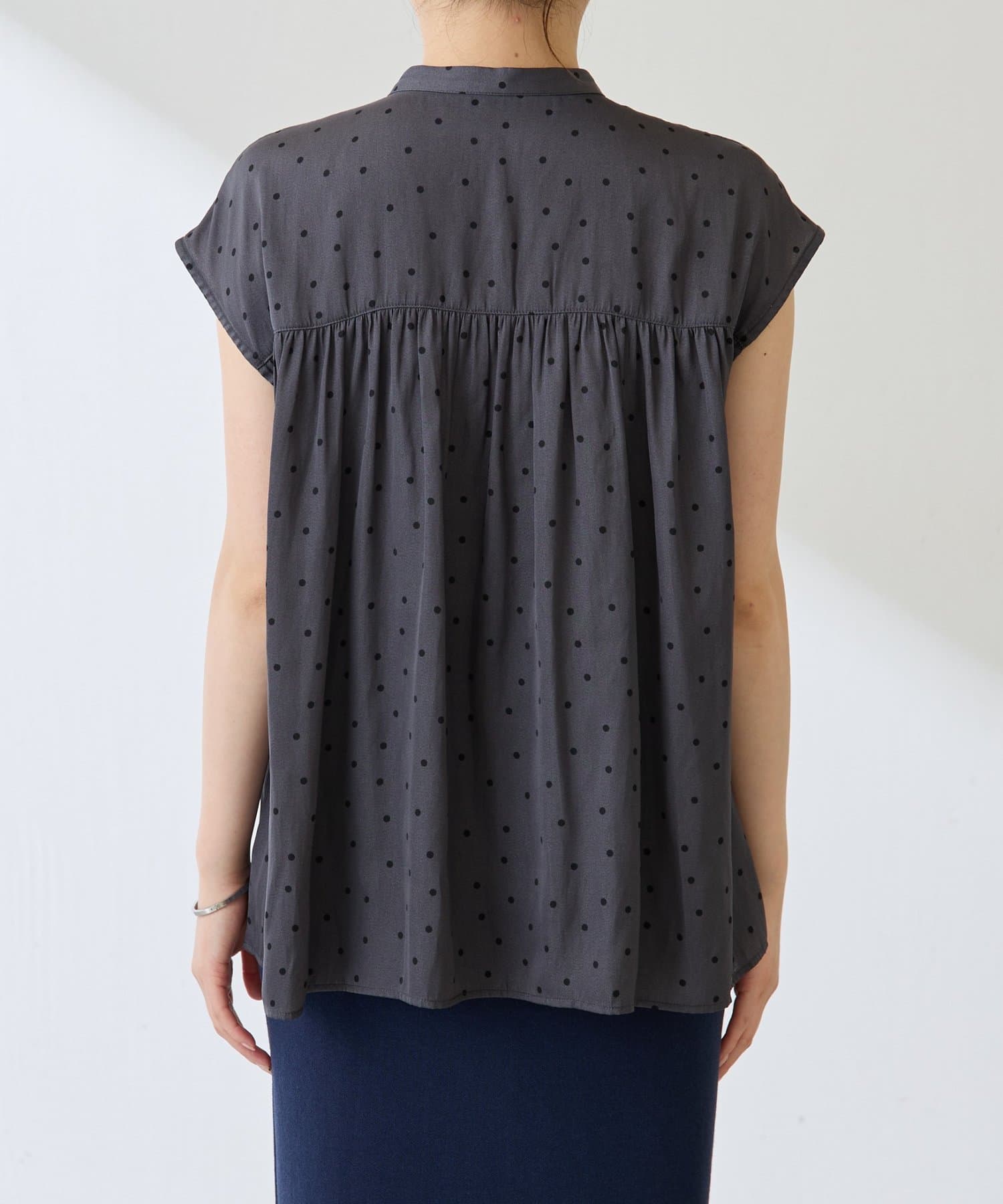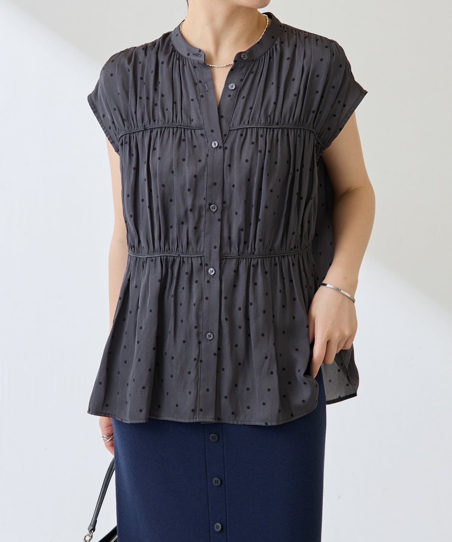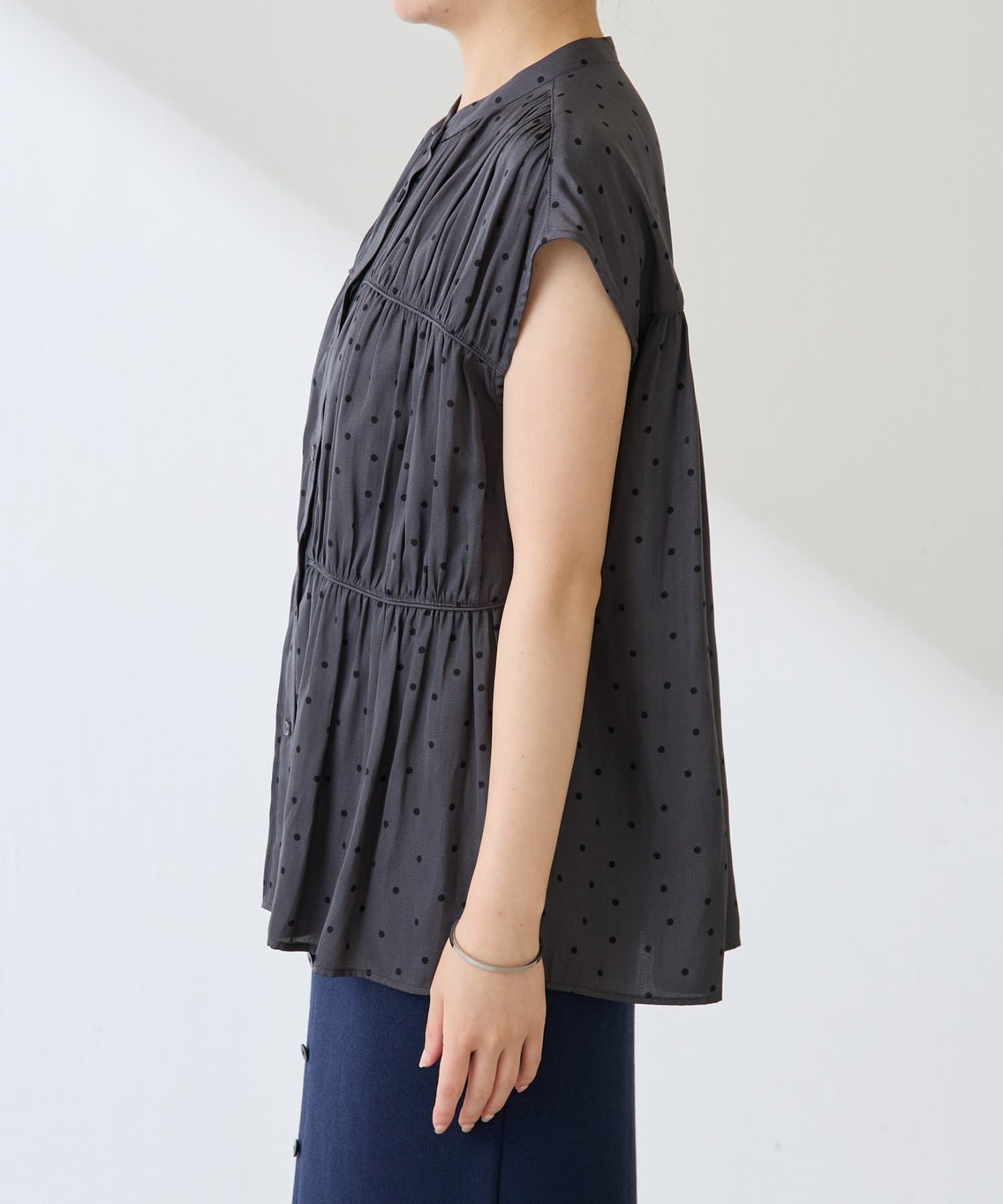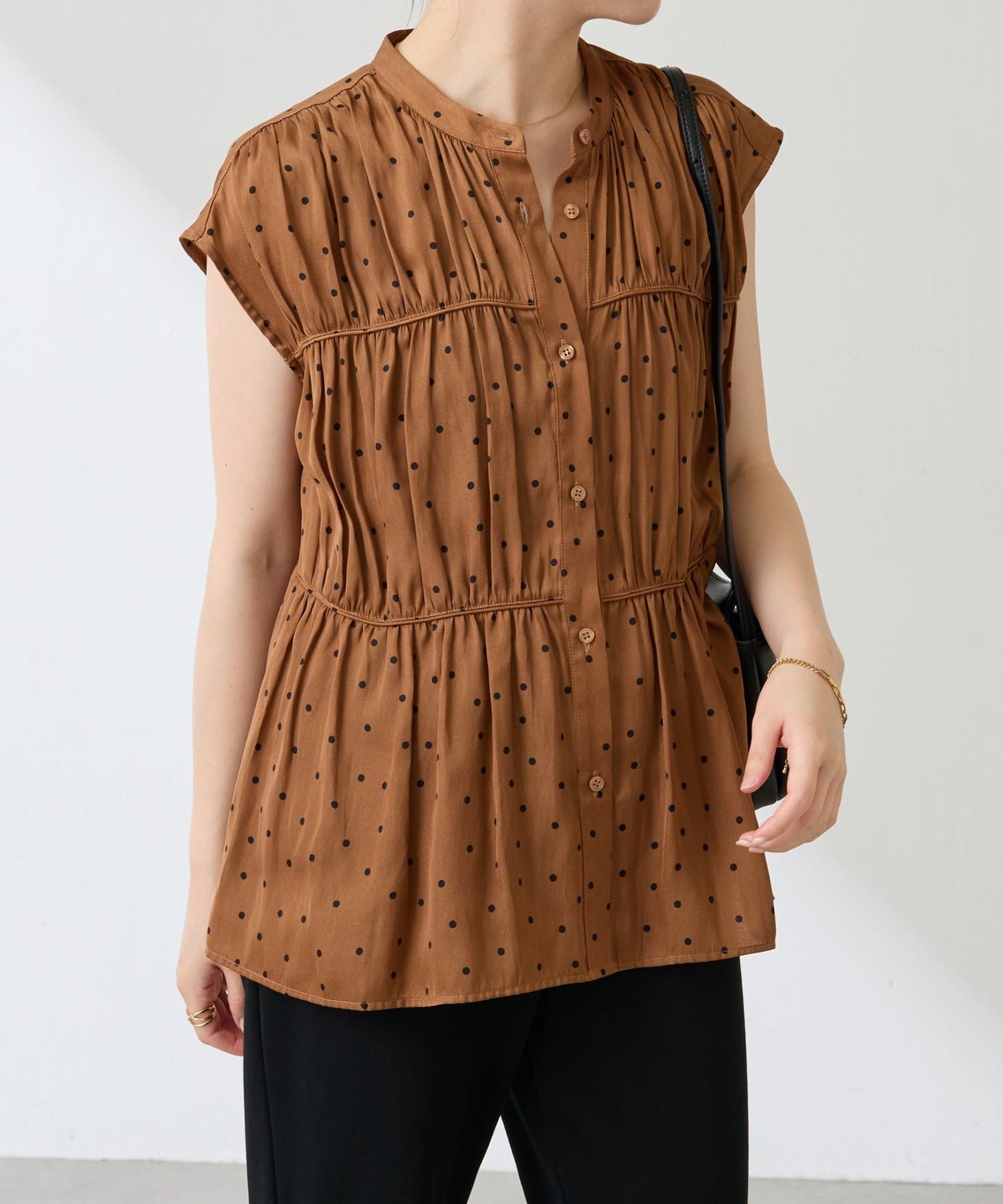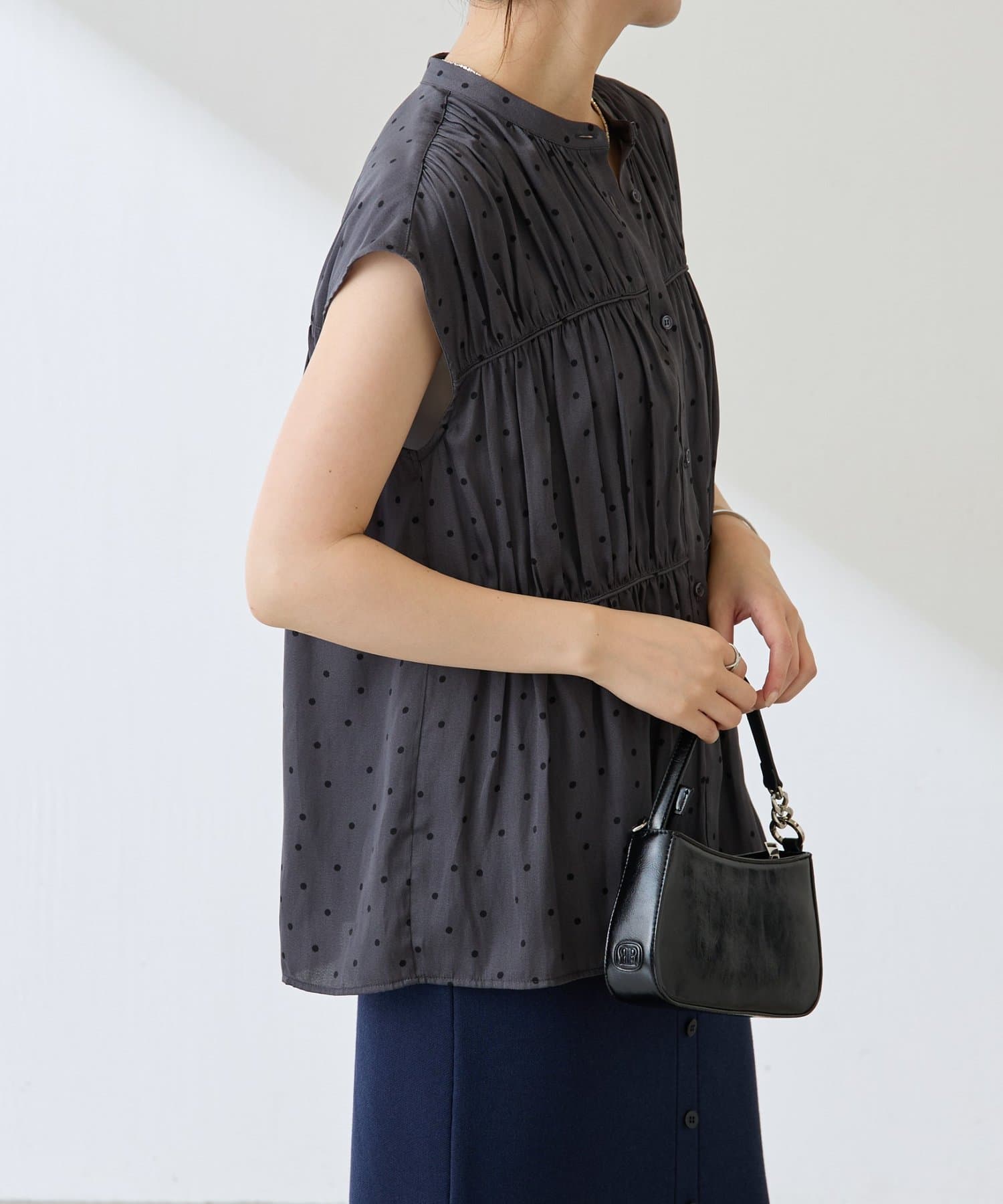 1枚で着映えするたっぷりギャザーのドットブラウス