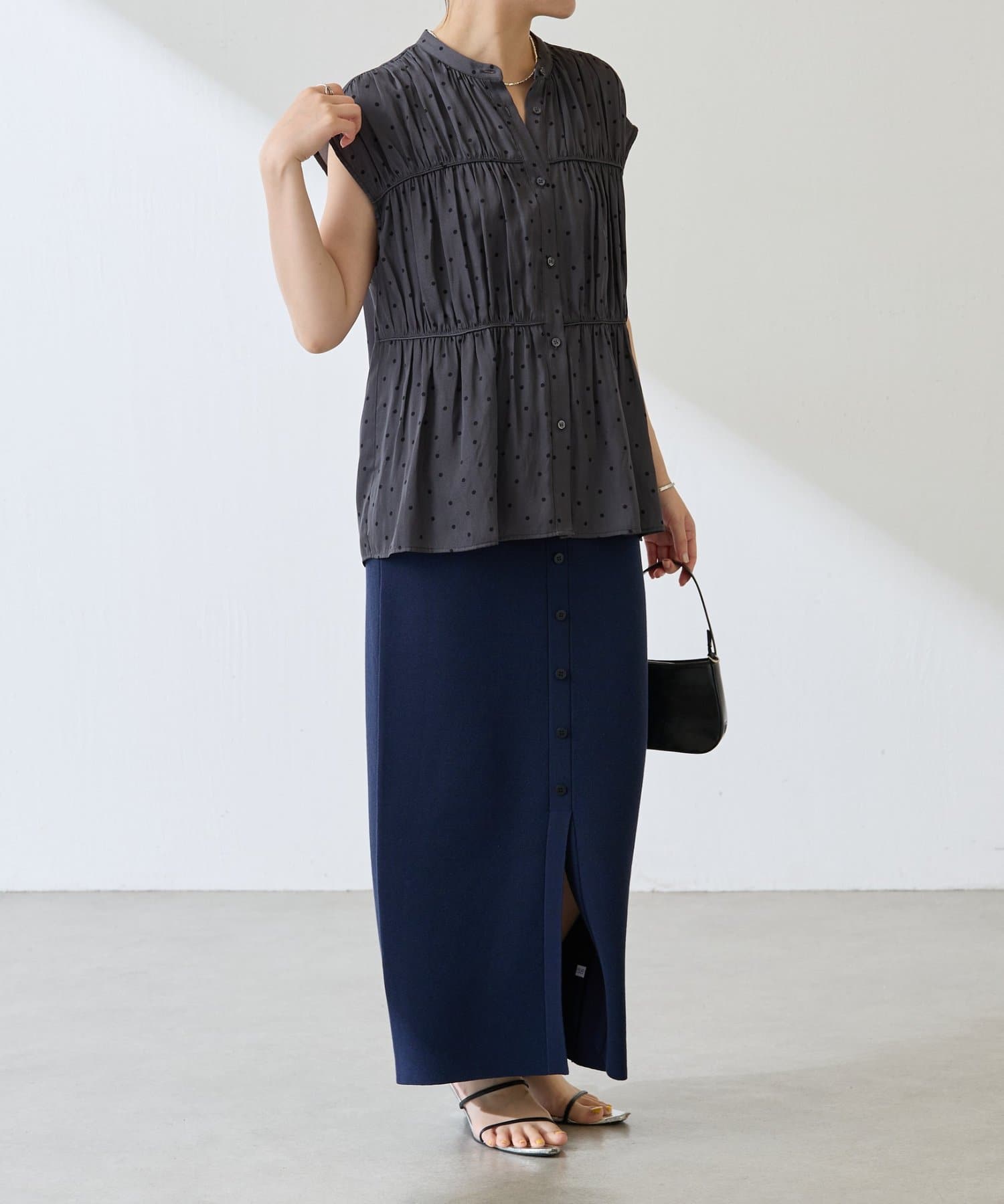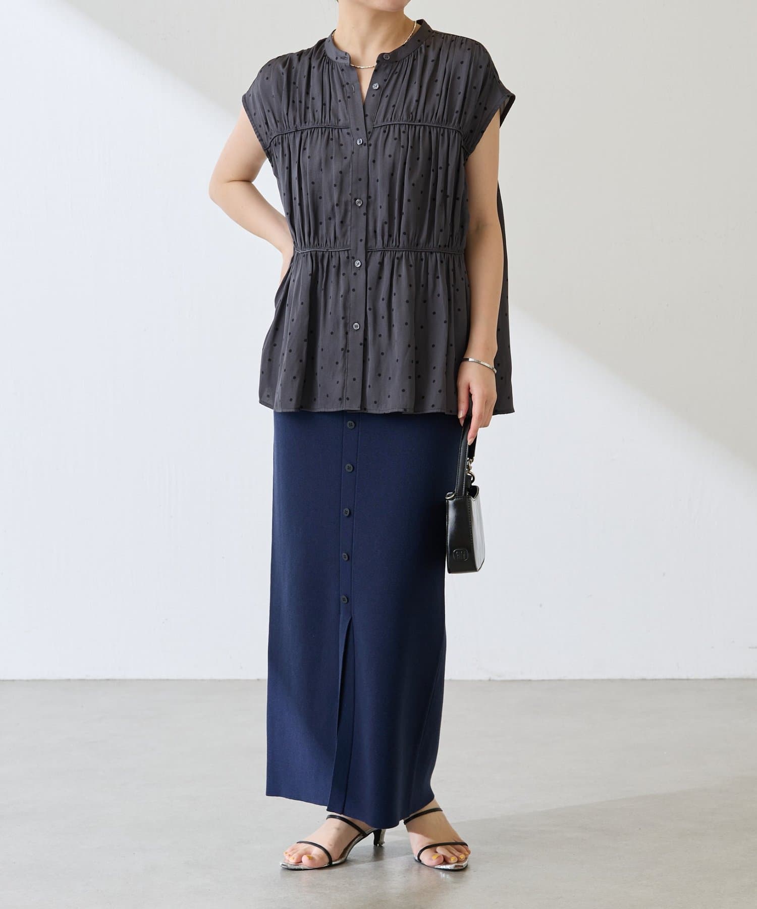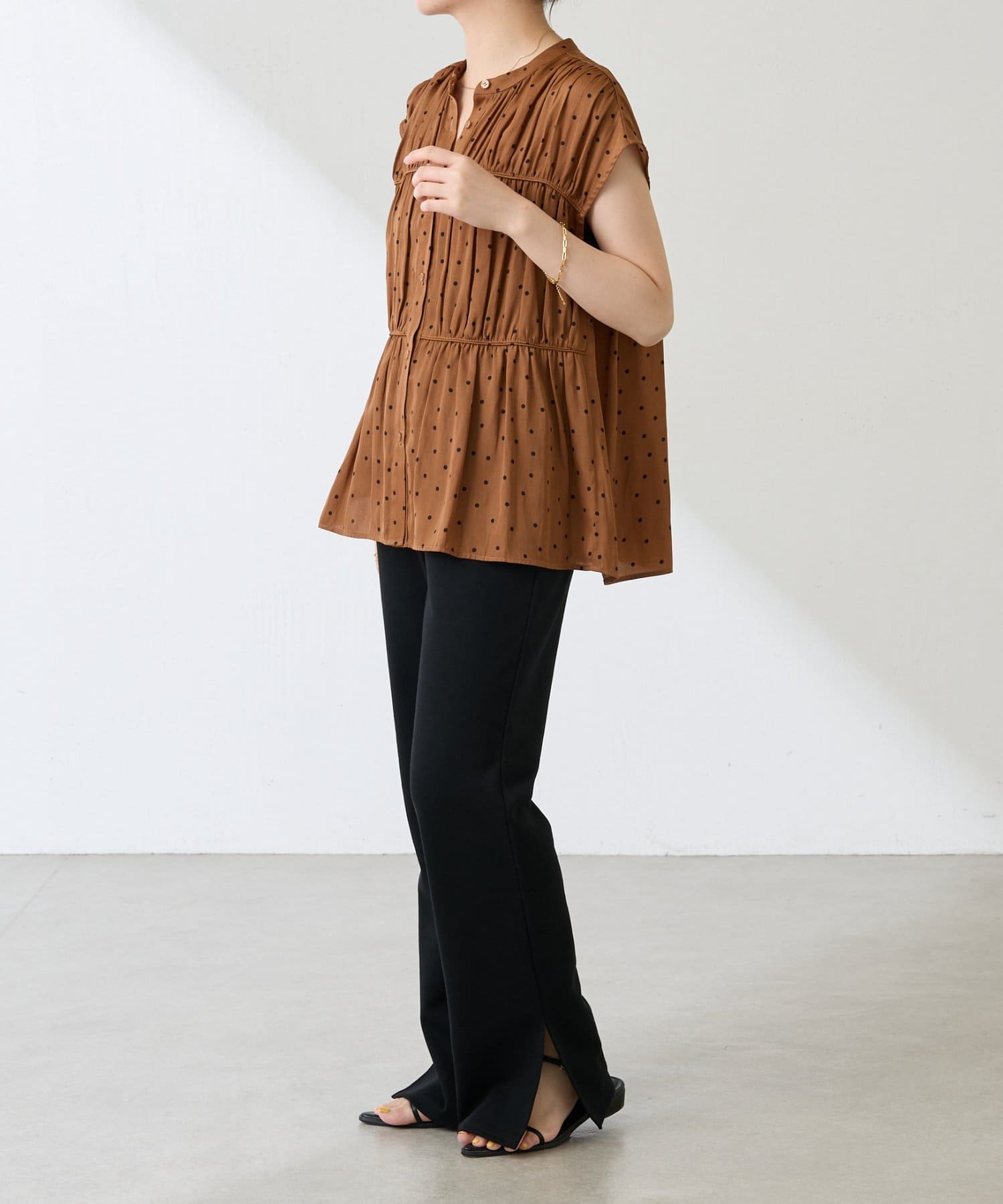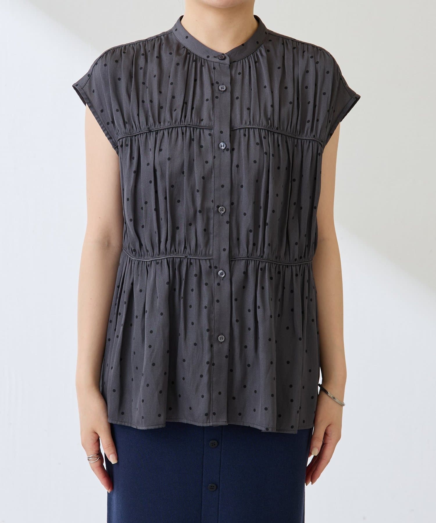 1枚で着映えするたっぷりギャザーのドットブラウス