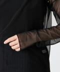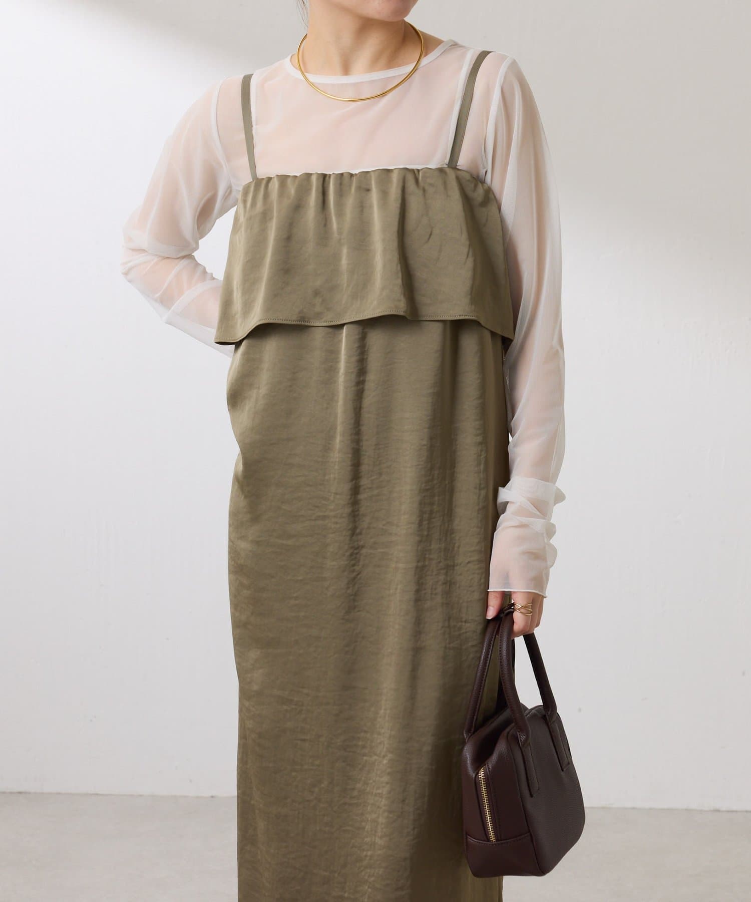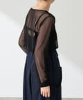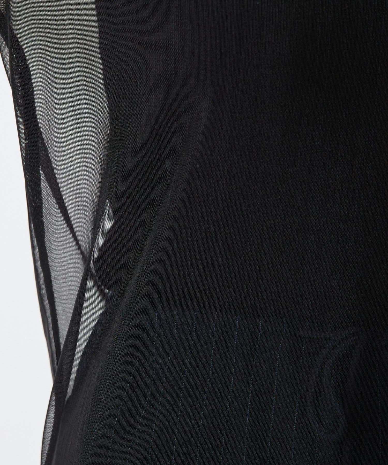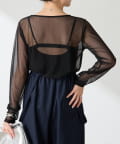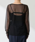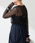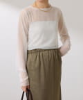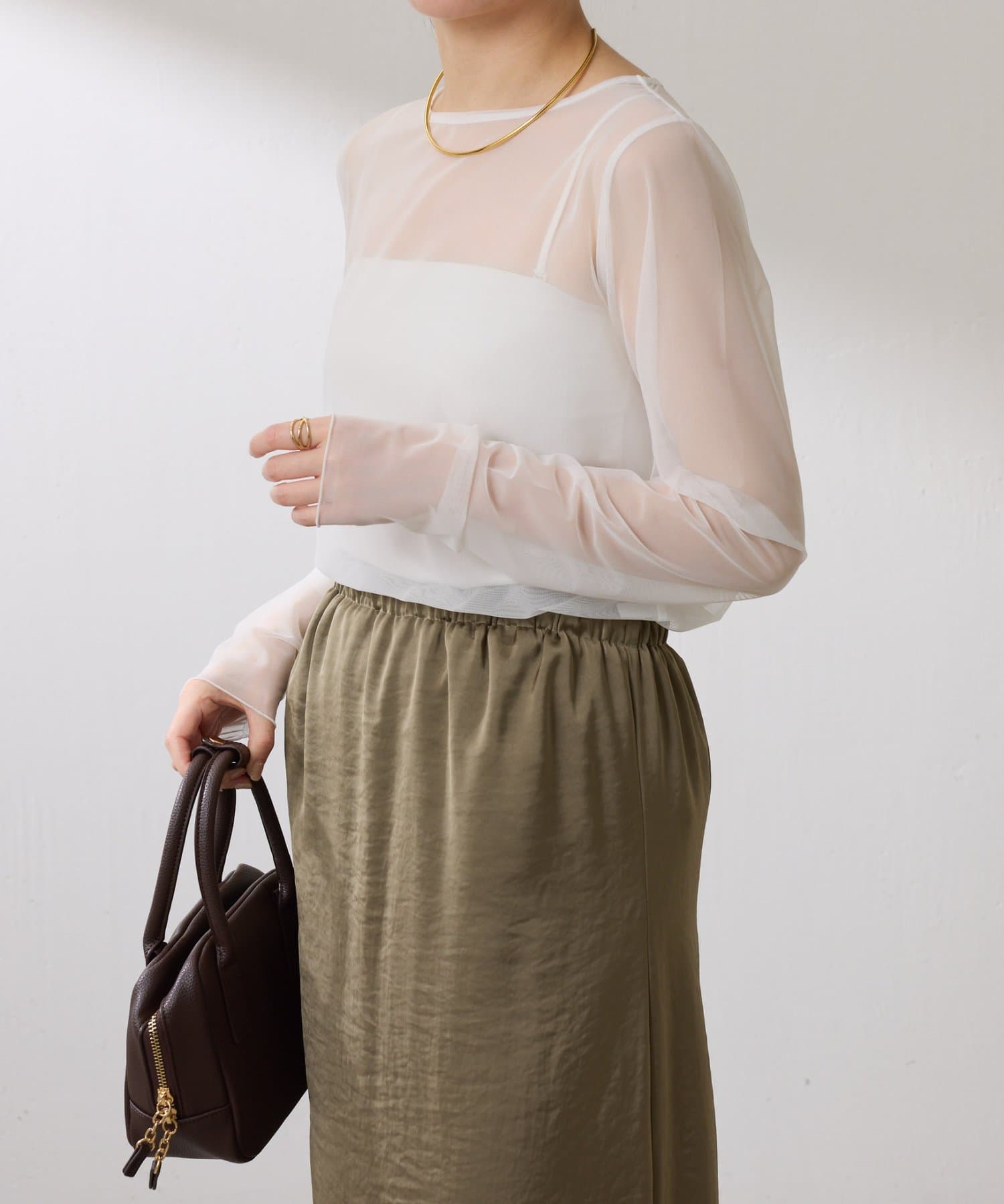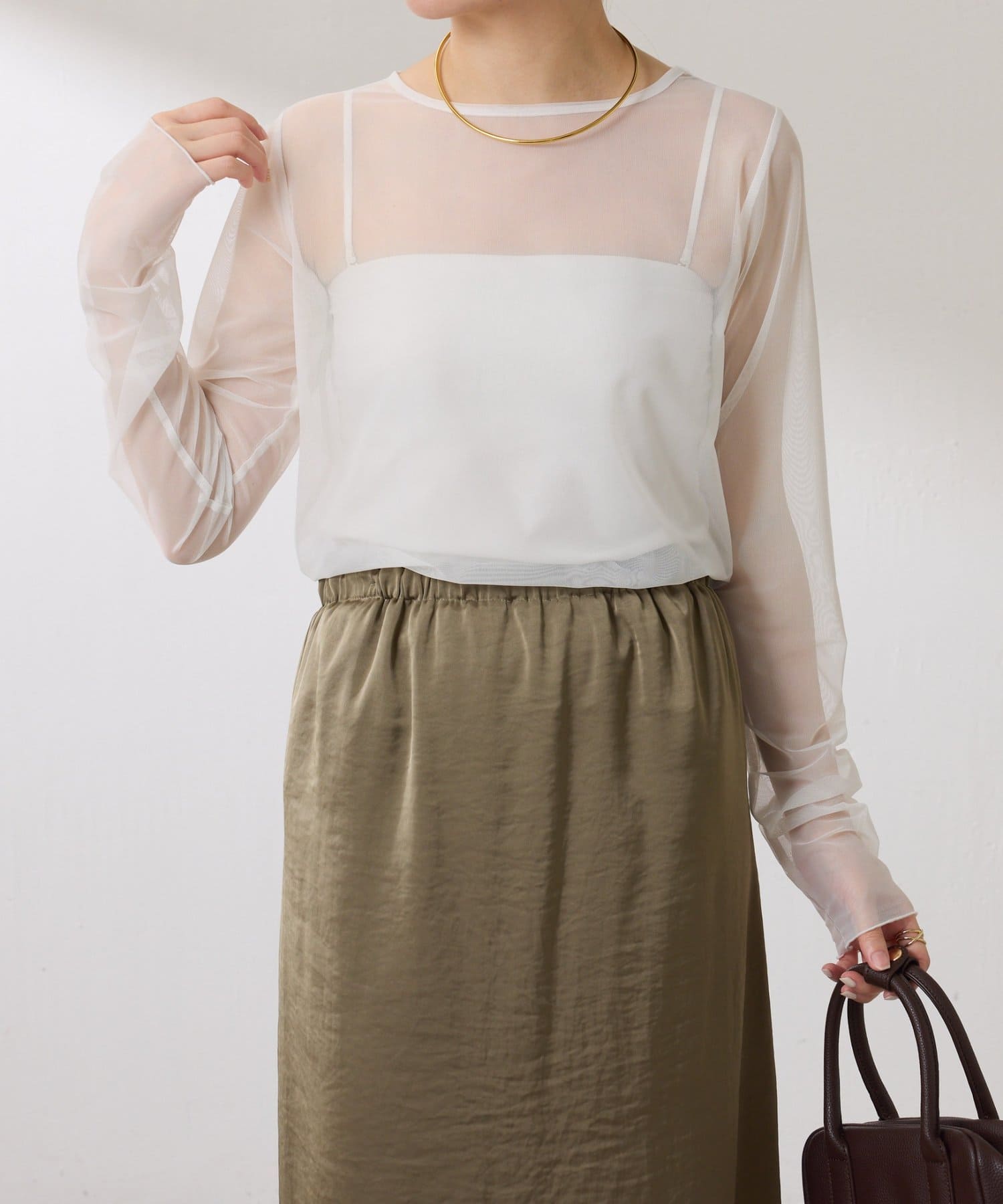 ・ニットやベストとレイヤードしても、シアー素材なので軽やかでこなれた印象になります。