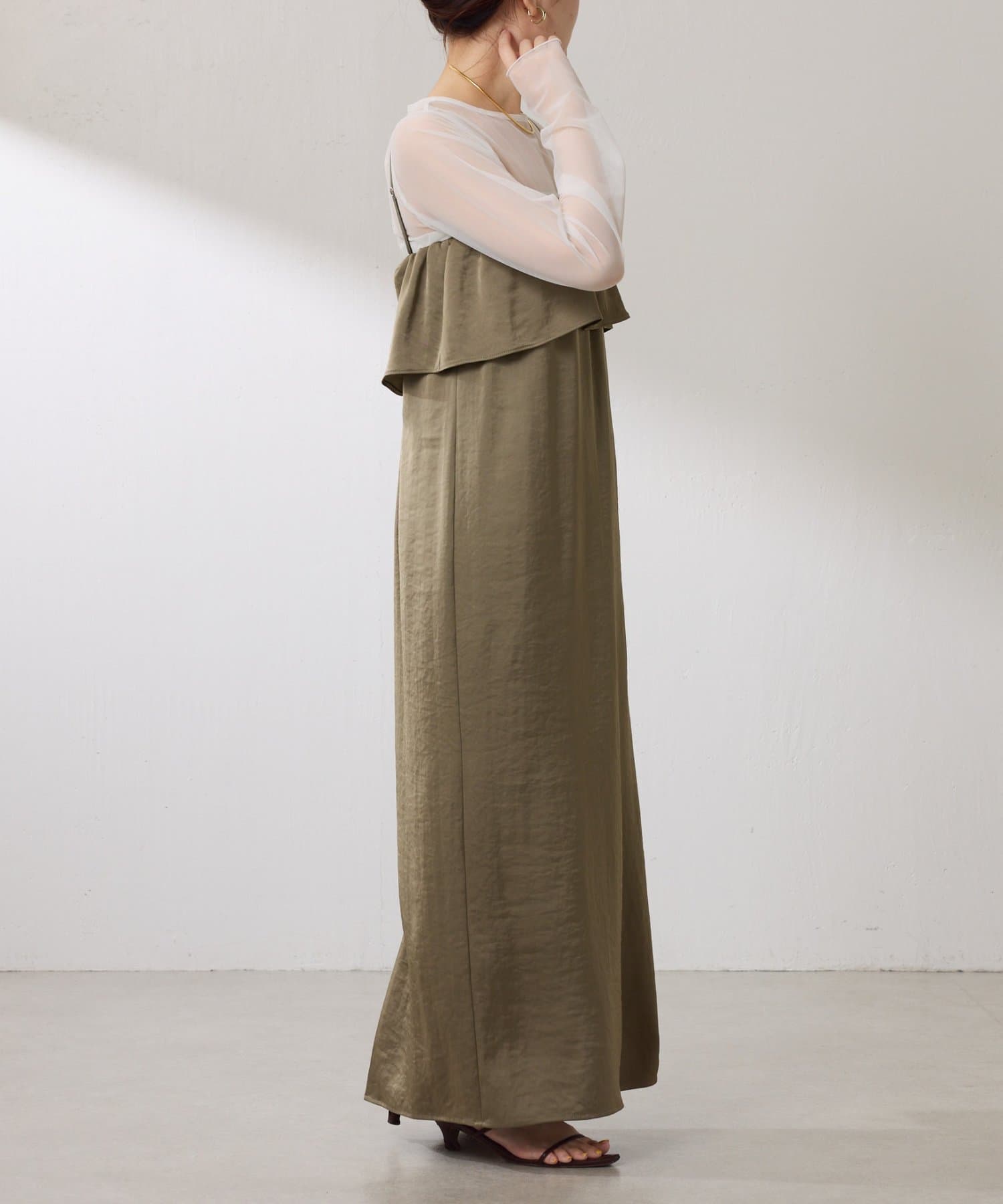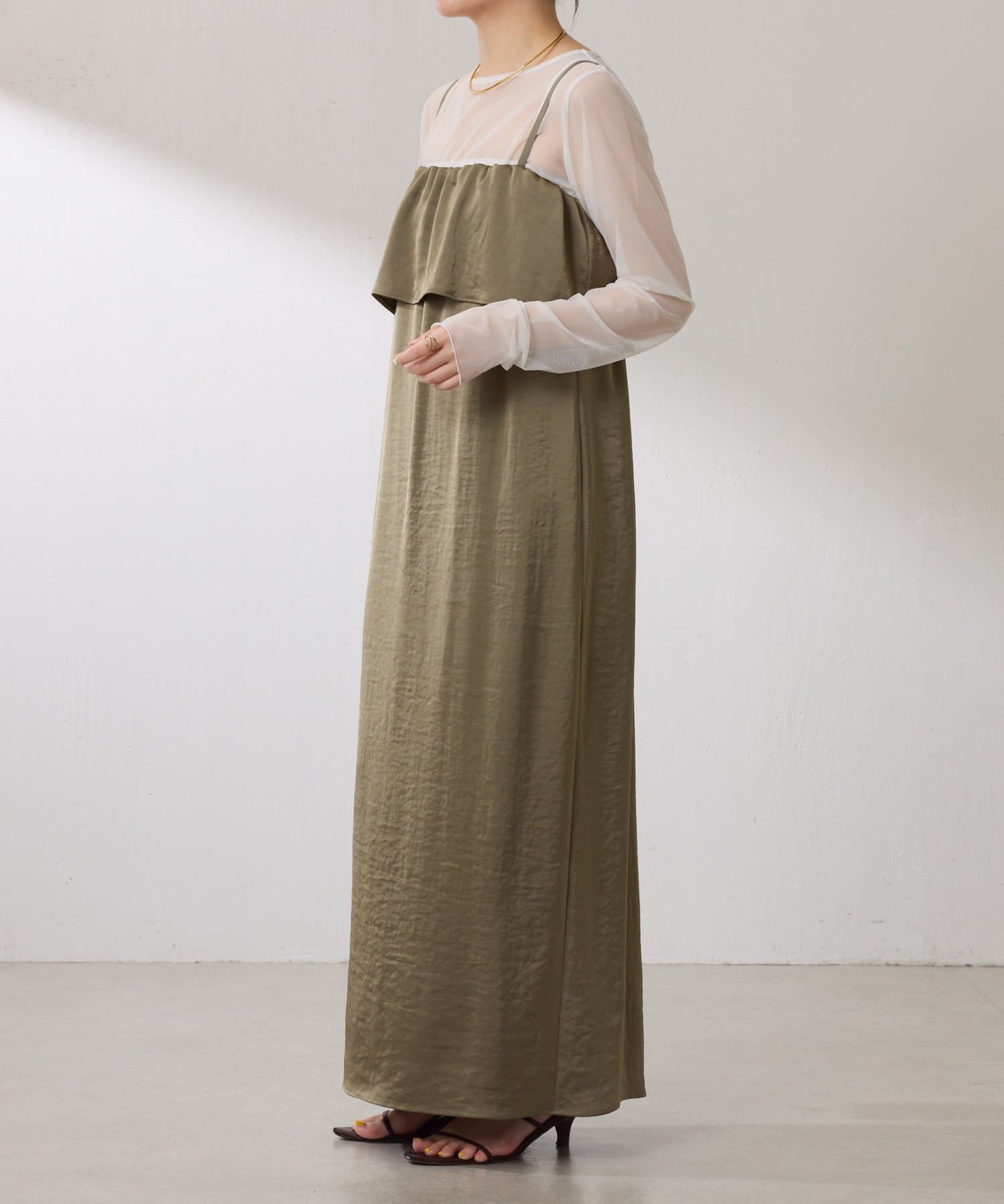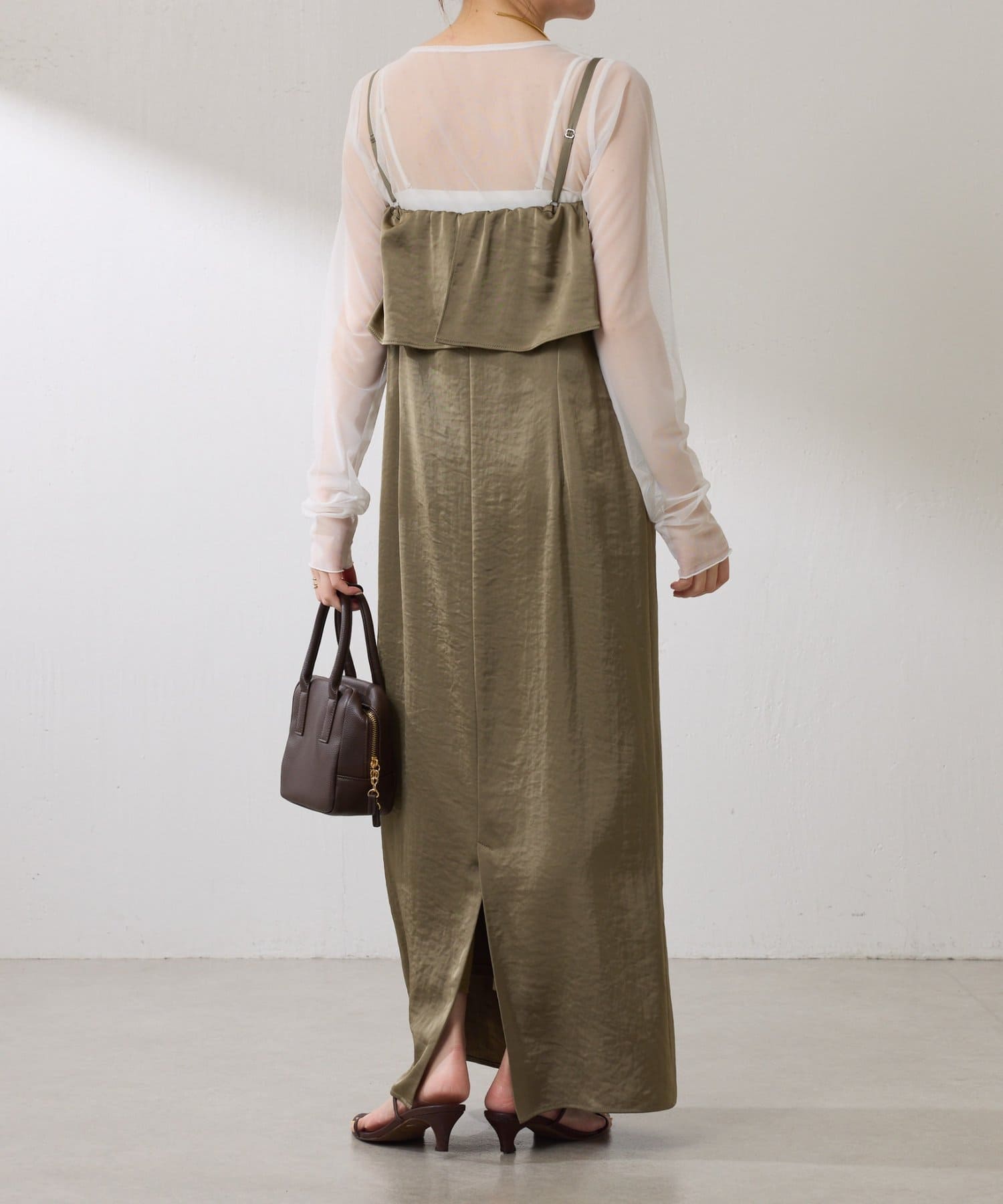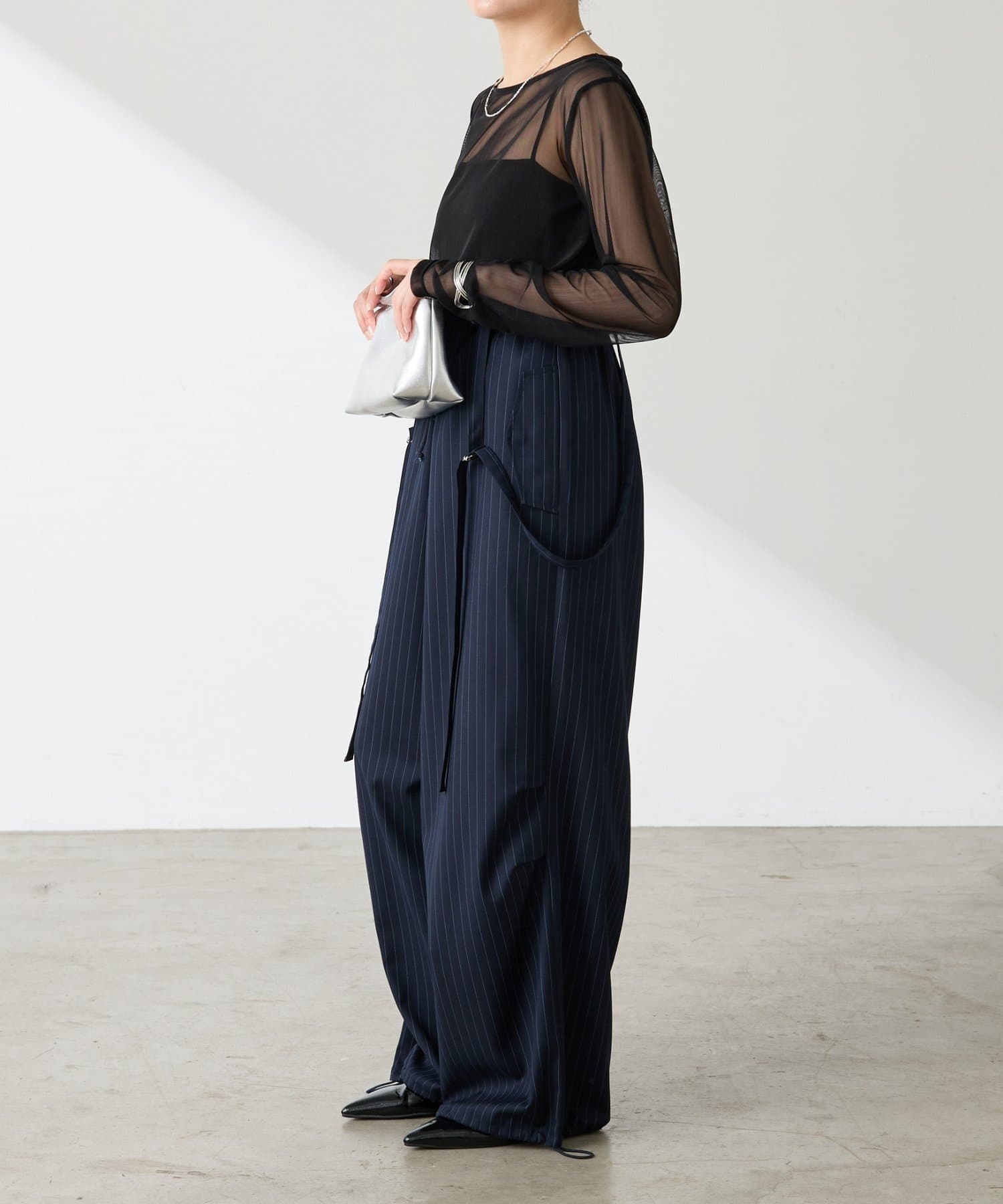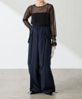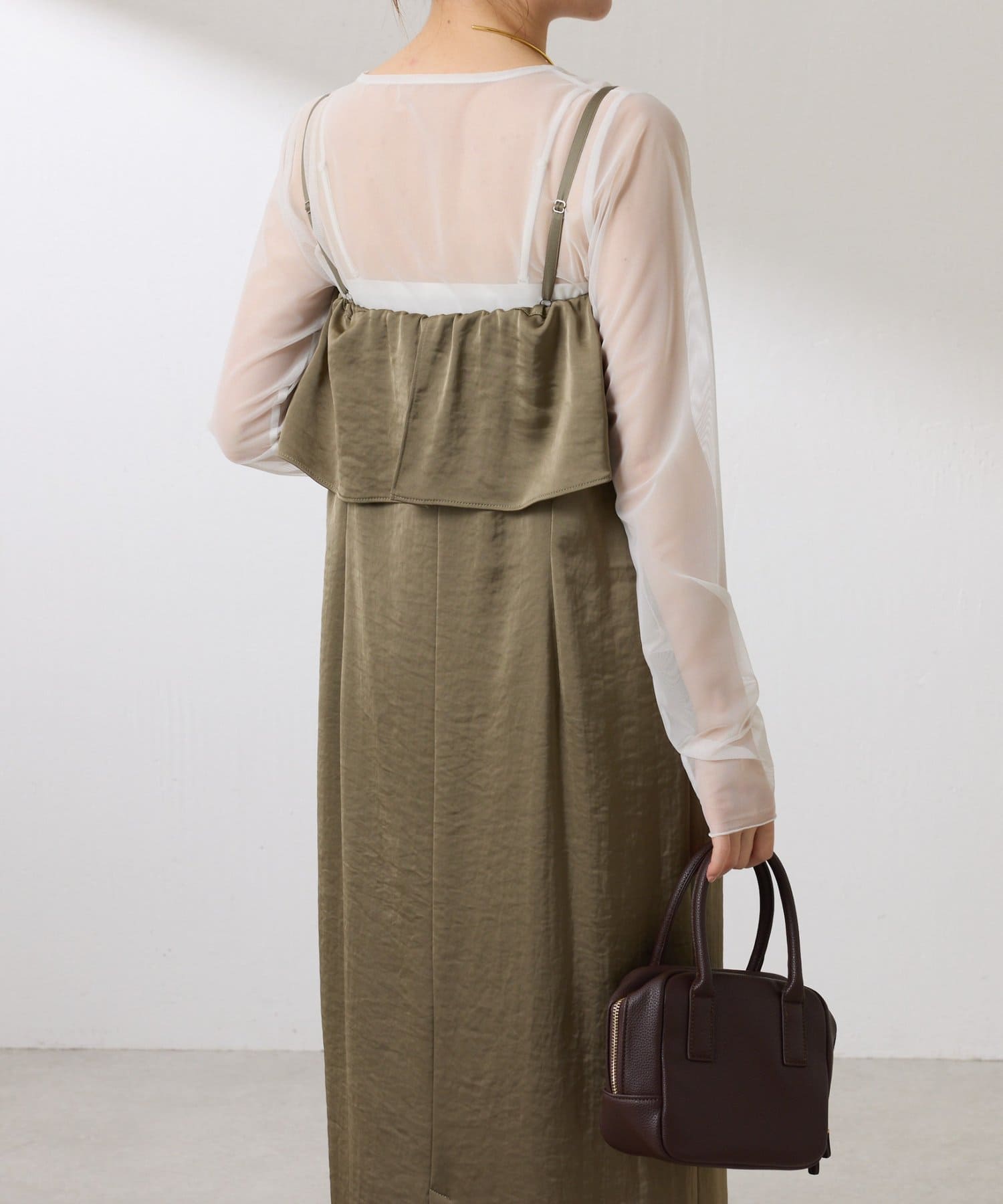 ・ニットやベストとレイヤードしても、シアー素材なので軽やかでこなれた印象になります。