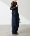 パラシュートパンツやオーバーオール、ジャケットなど辛口アイテムと合わせて女性らしさプラスするのも素敵です。
