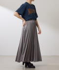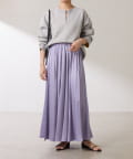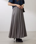 ・上品な光沢感のある生地で作られたフレアシルエットのスカート。