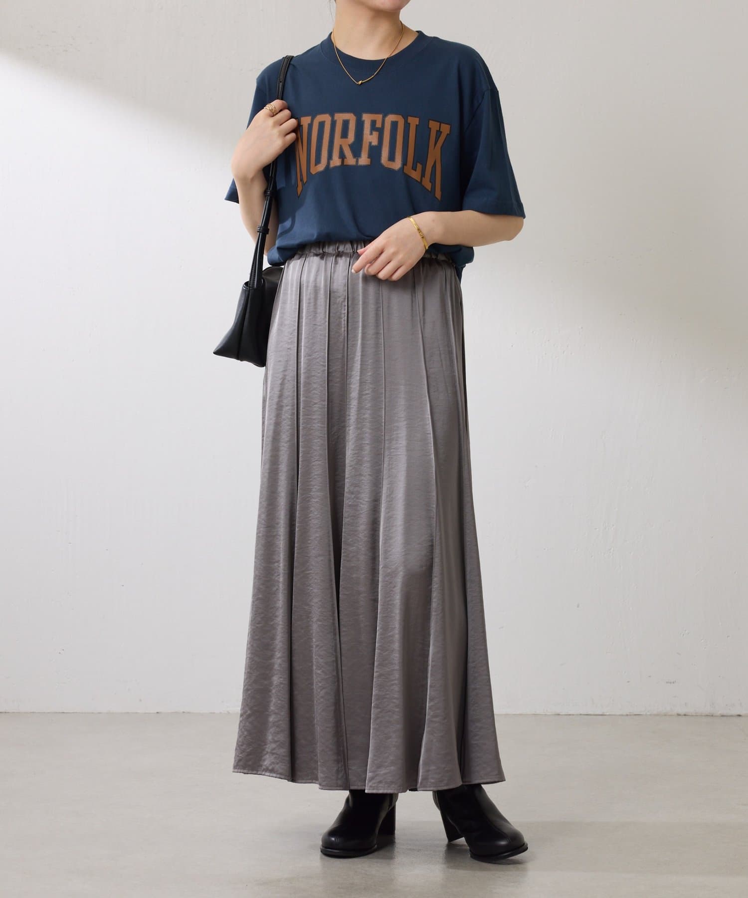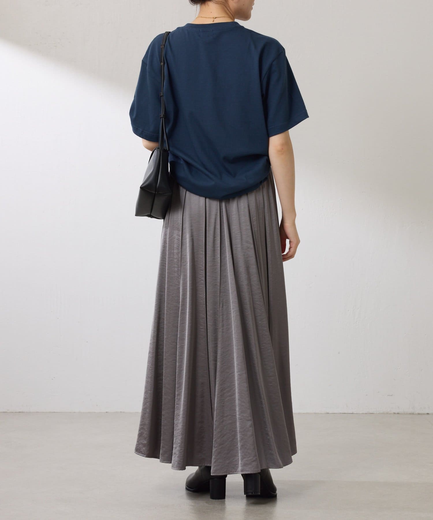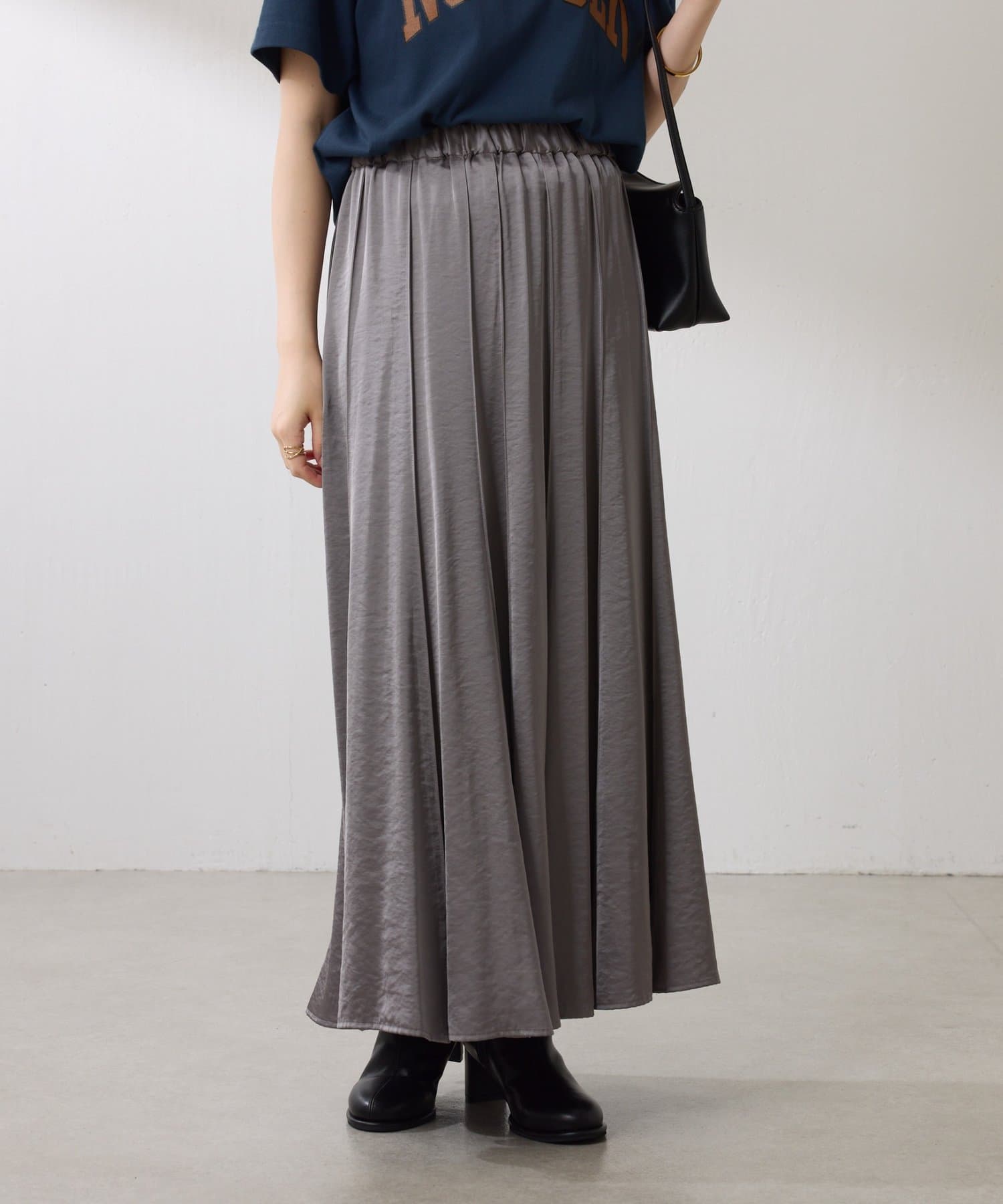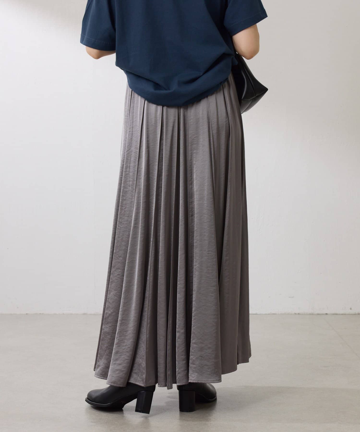 動くたびに優しく揺れるサテンフレアスカート