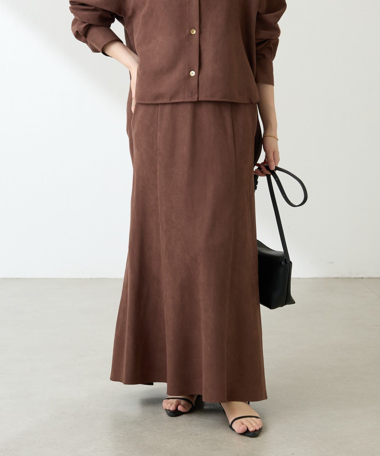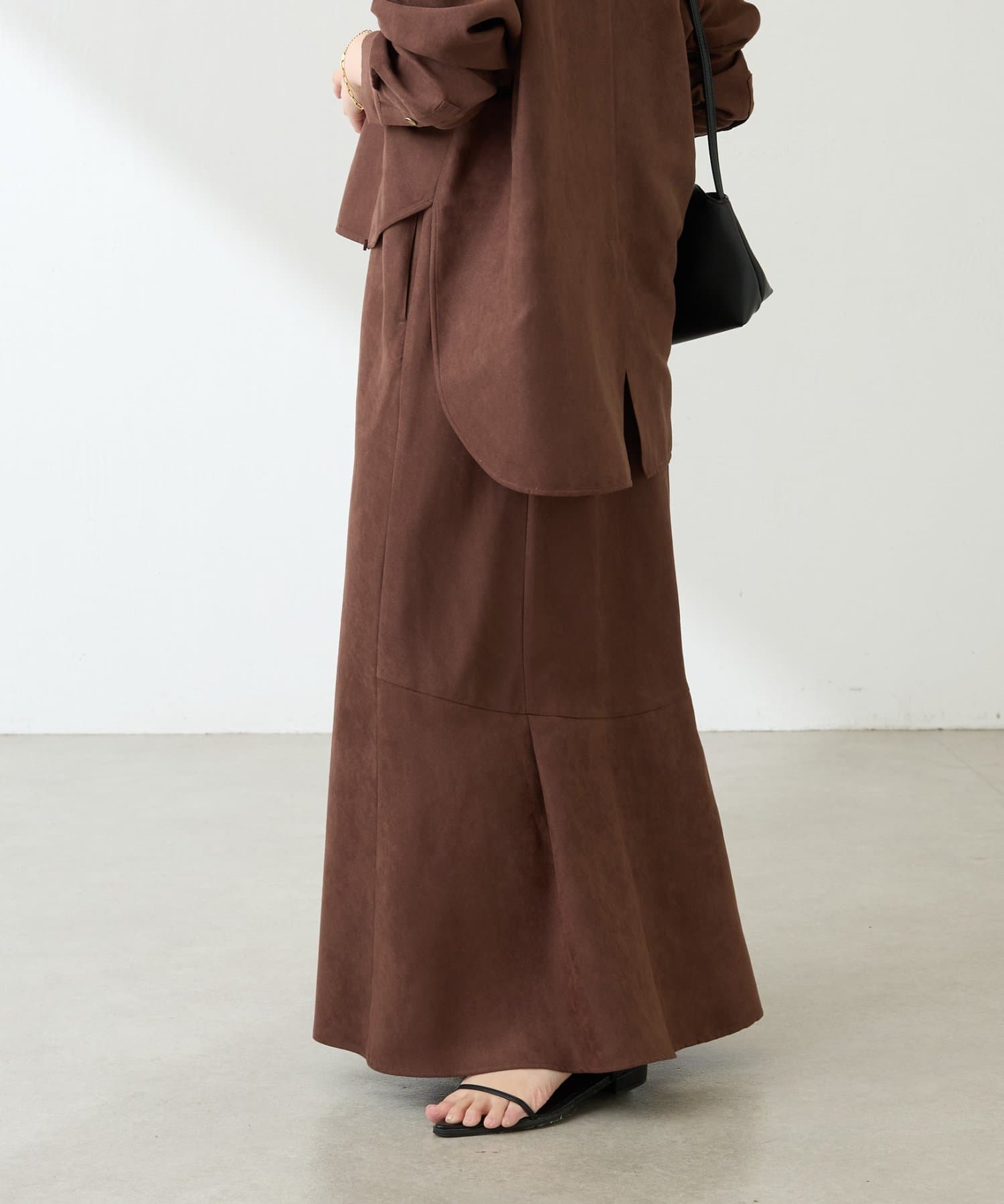 ・薄くて軽いフェイクスエード素材を使用したマーメイドスカート。