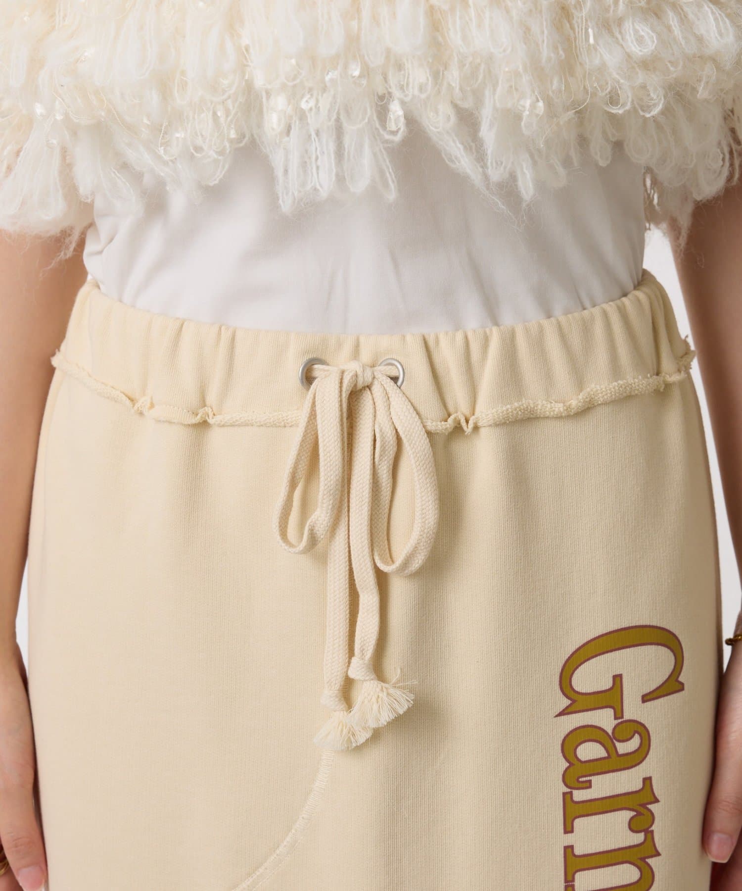 シンプルながらもロゴが目を惹くスウェットスカート
