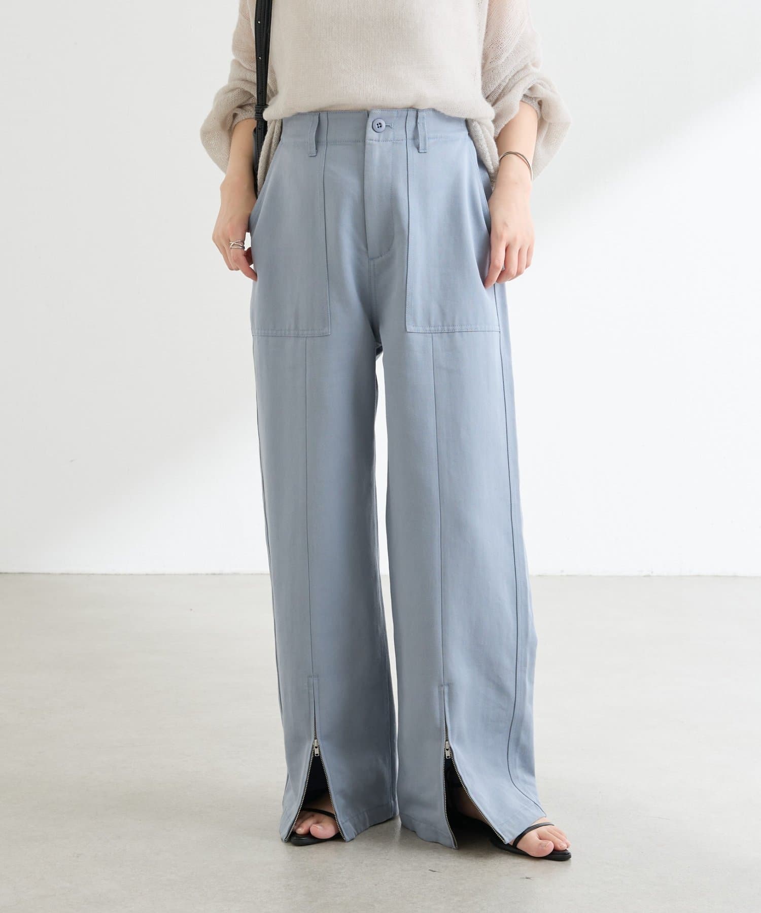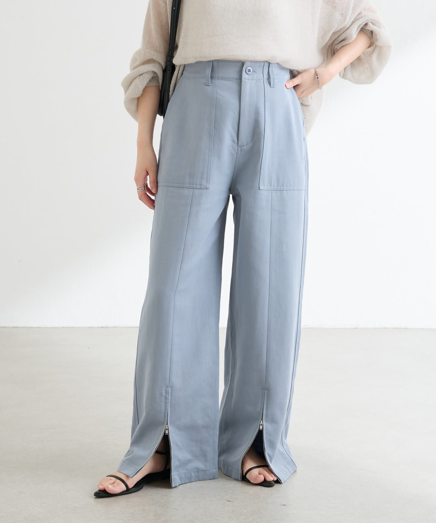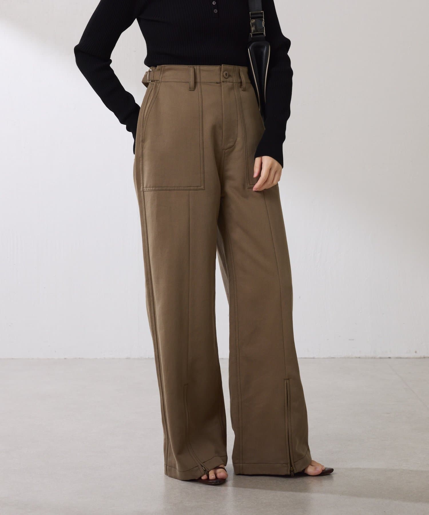 ・ジップを閉めるとストレート、開けるとややフレアシルエットになるので、合わせるシューズや好みによって雰囲気を変えて楽しめます。
