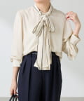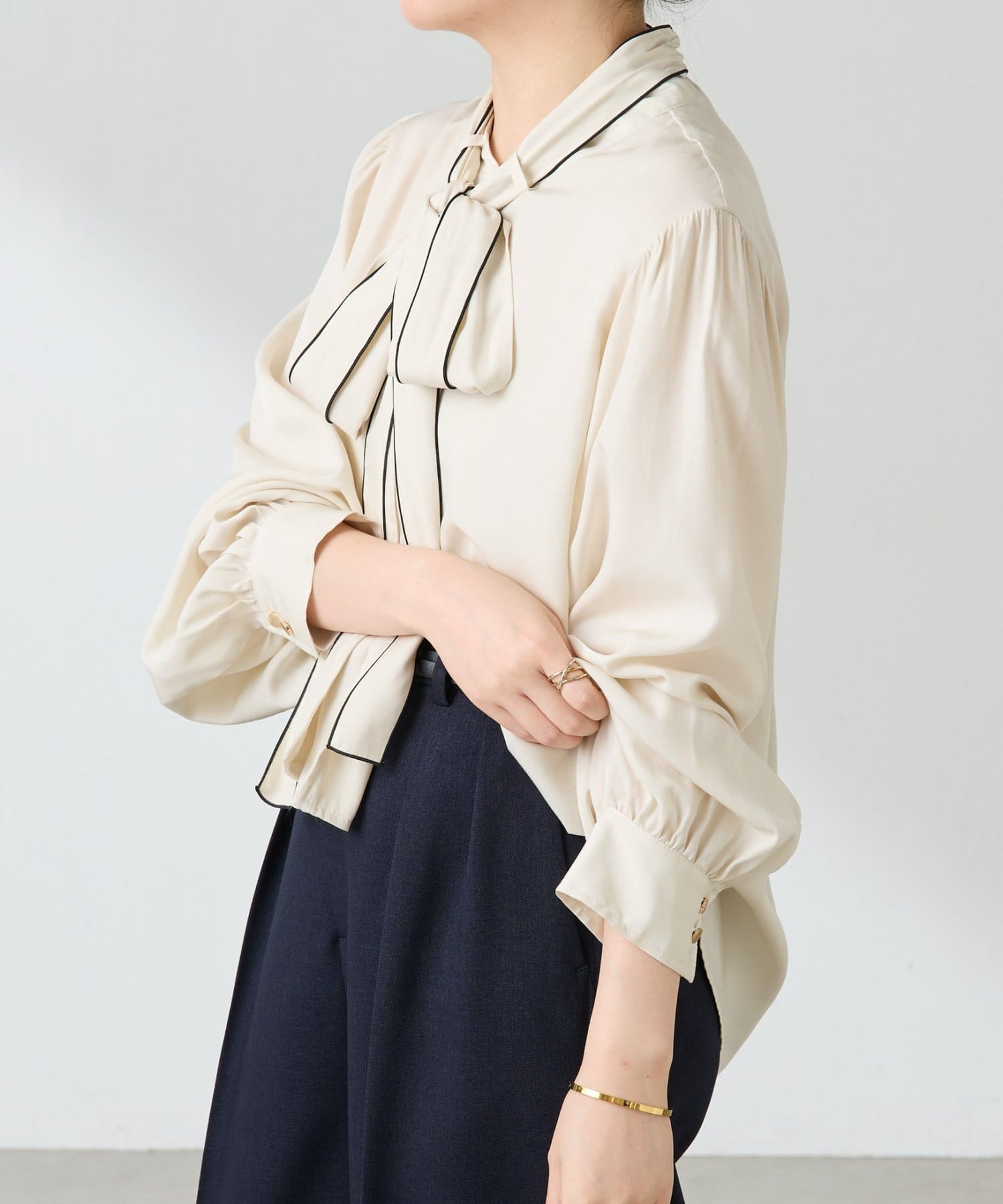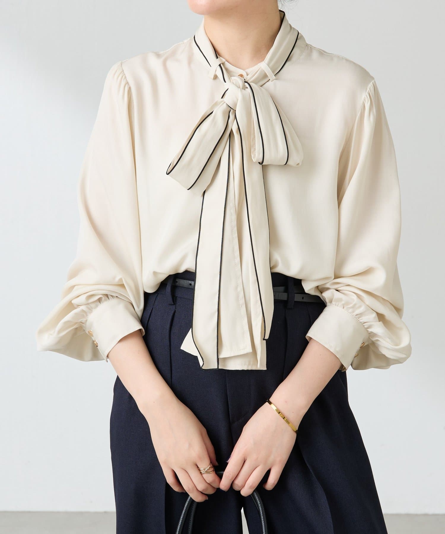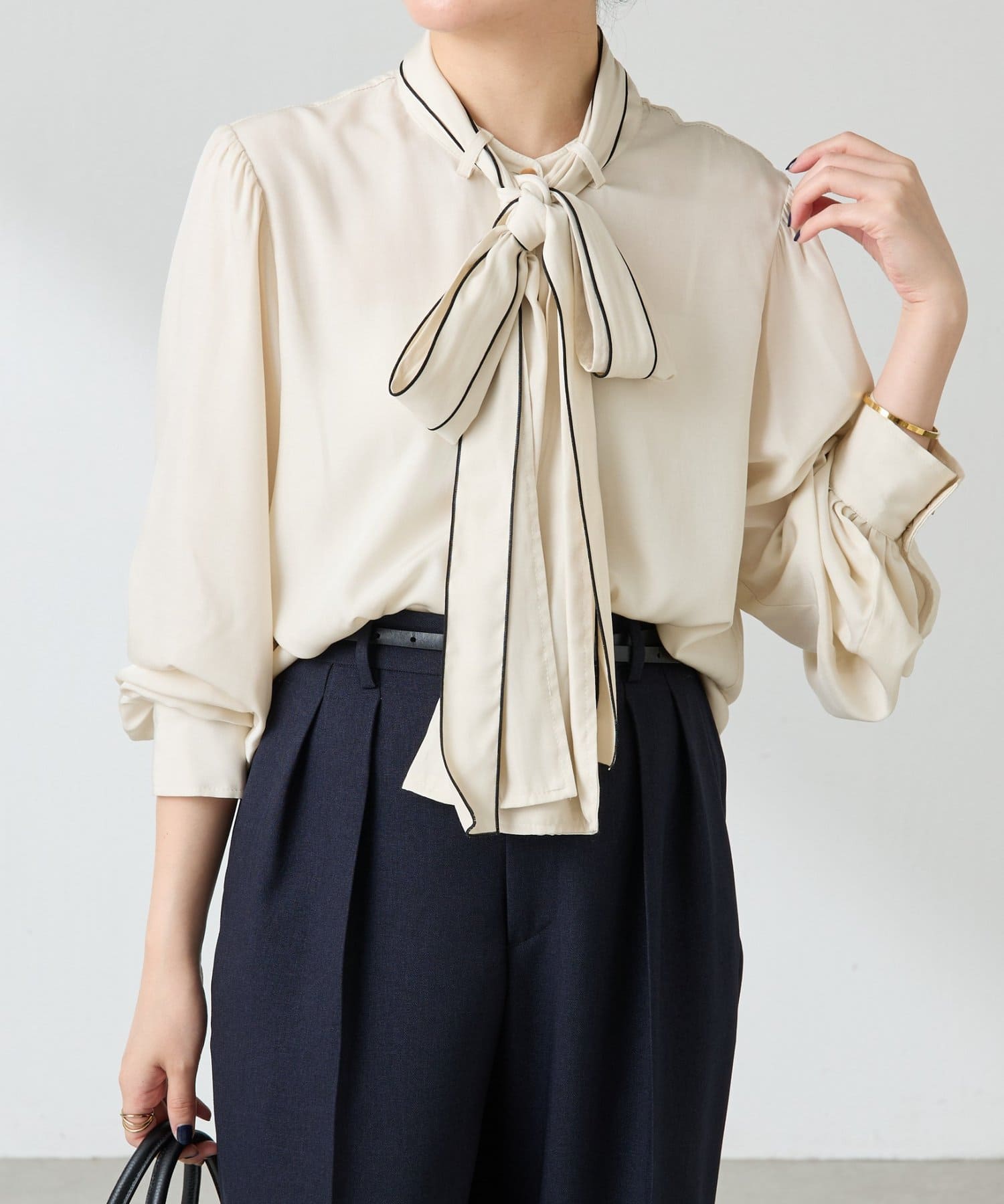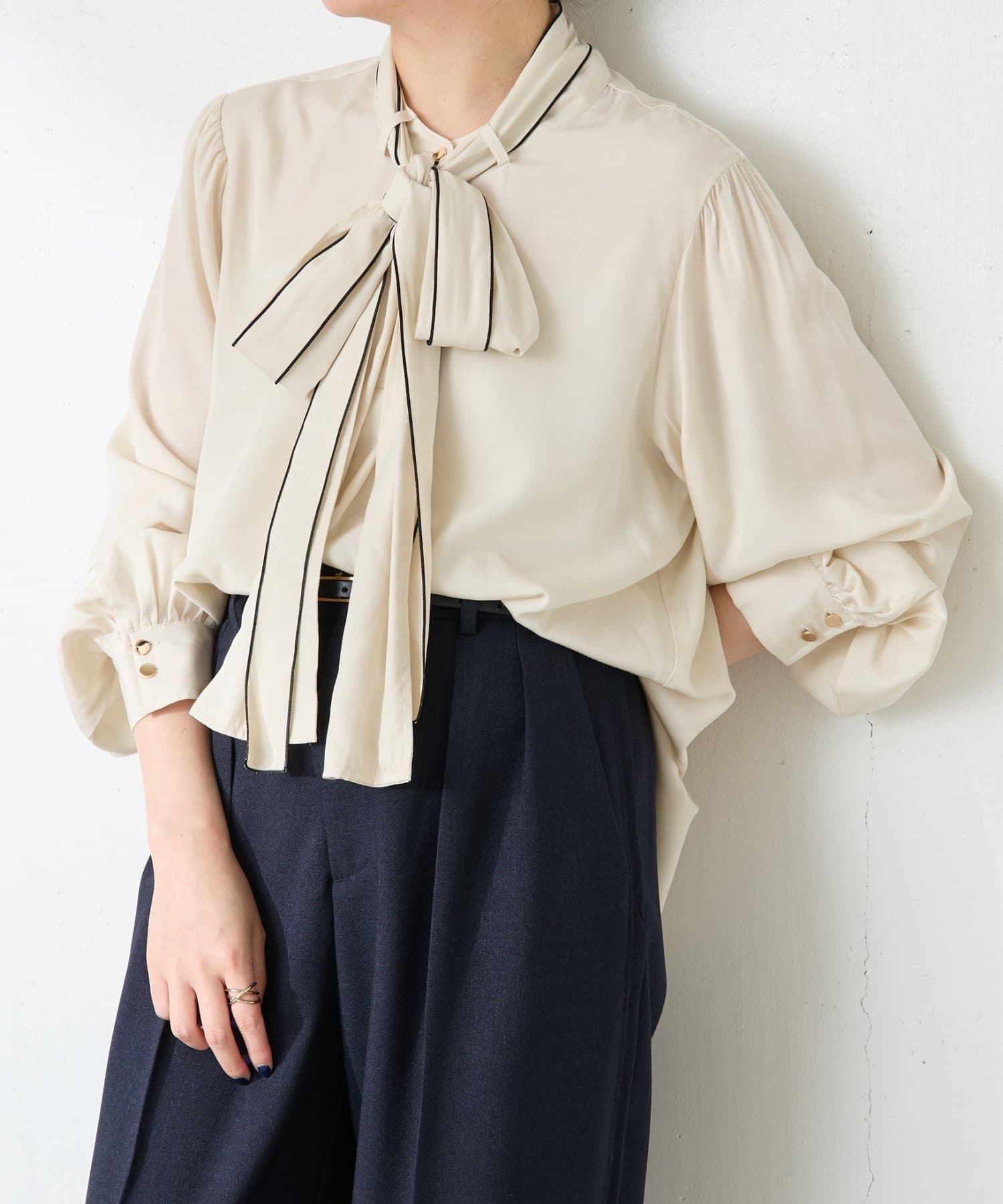 ・太めなタイと細めのパイピング仕様のタイの2種類のボウタイが付いており、幅広いアレンジができるブラウス