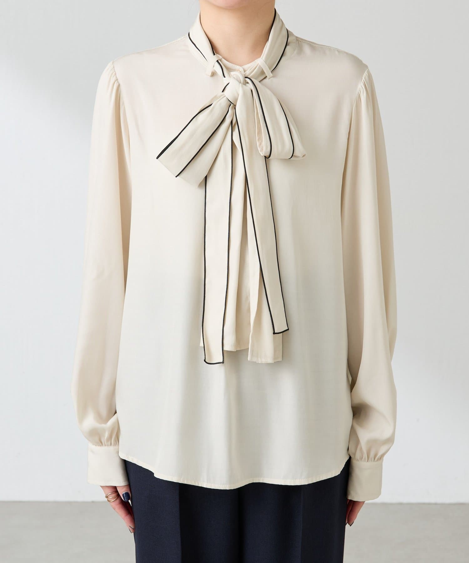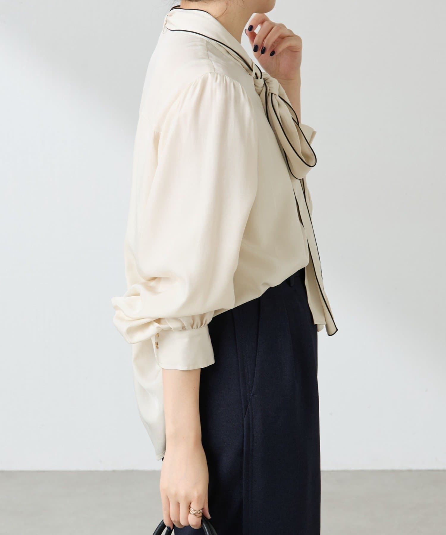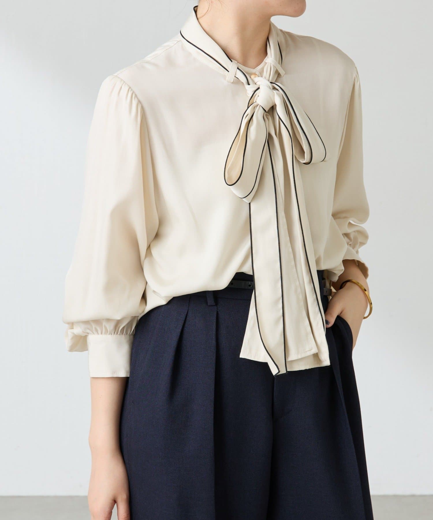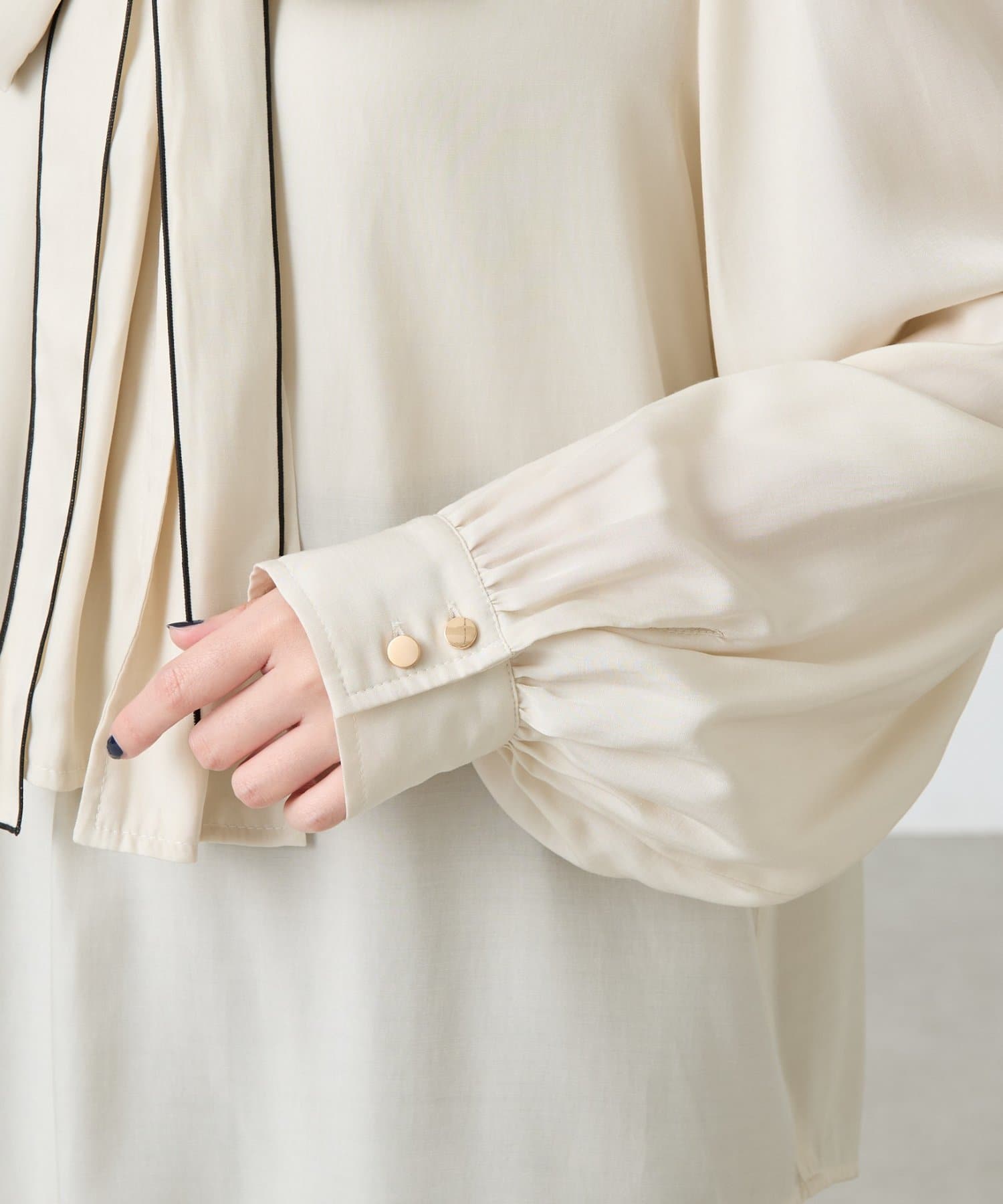 ・太めなタイと細めのパイピング仕様のタイの2種類のボウタイが付いており、幅広いアレンジができるブラウス