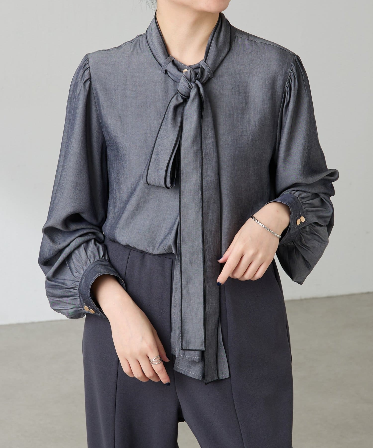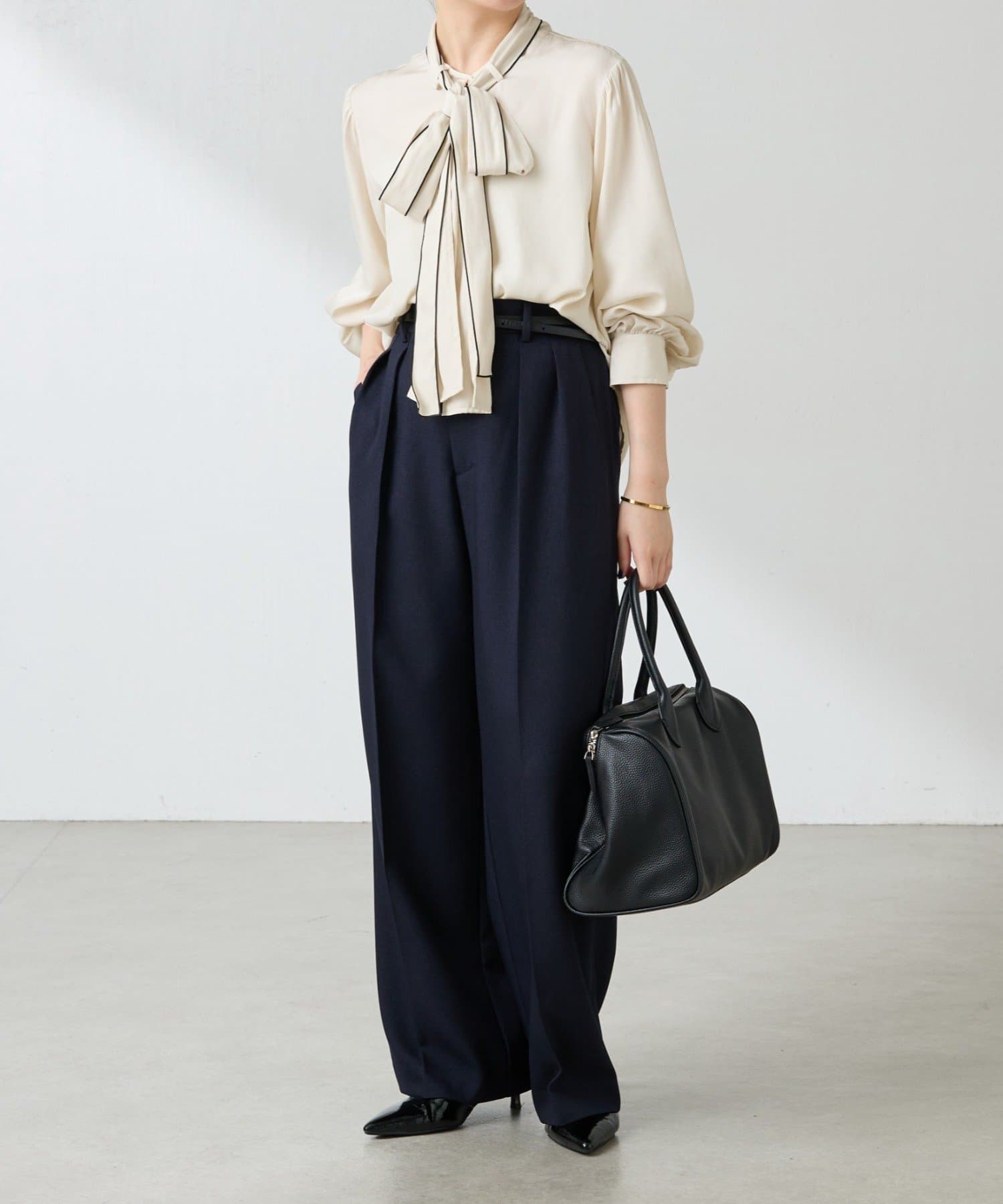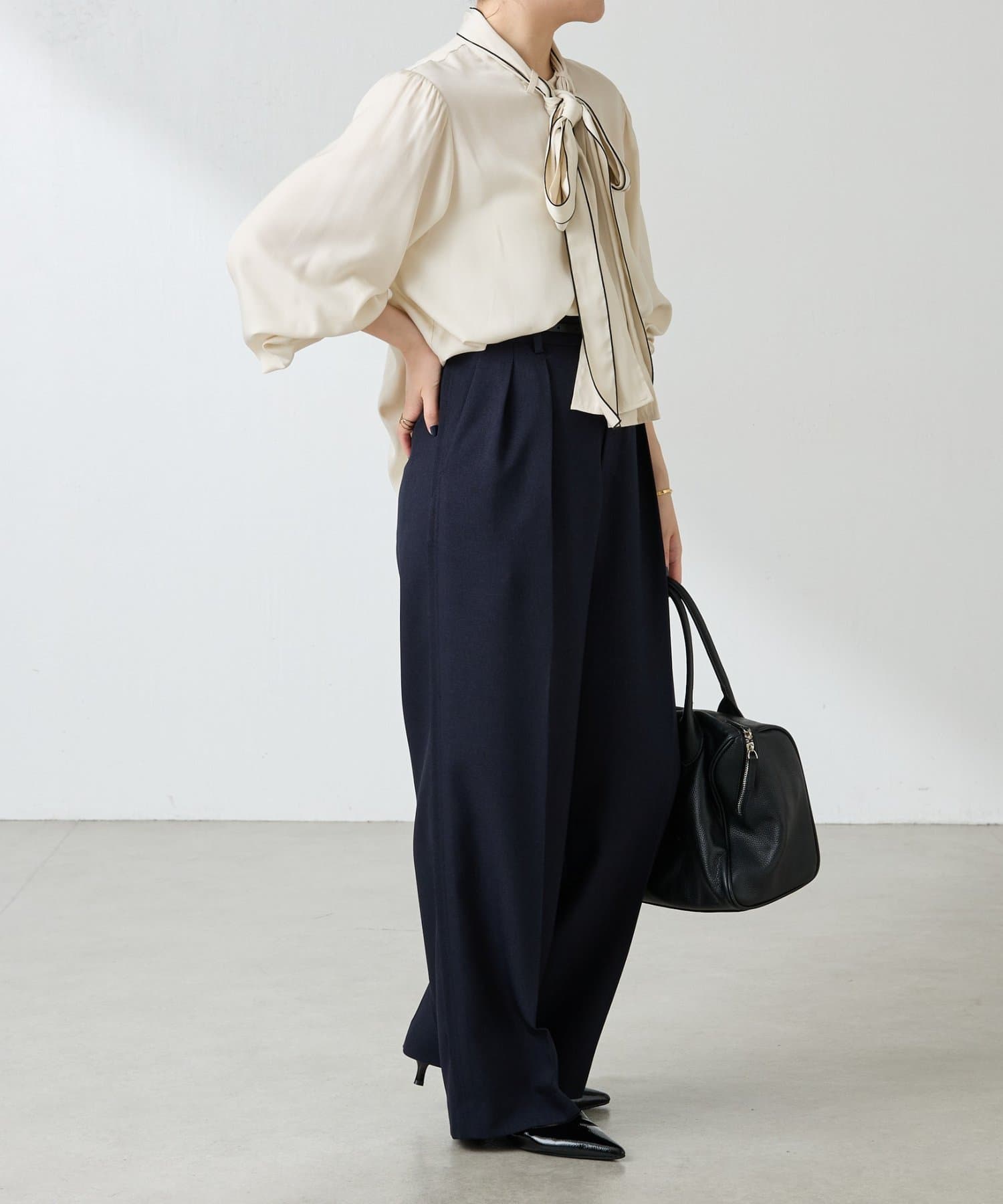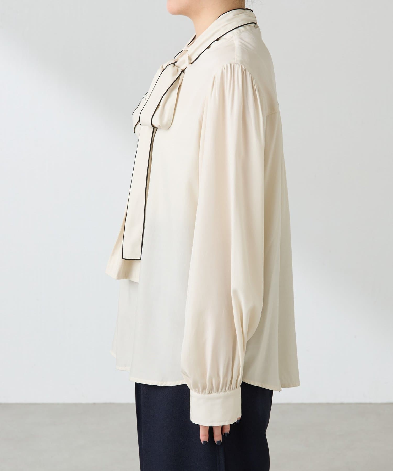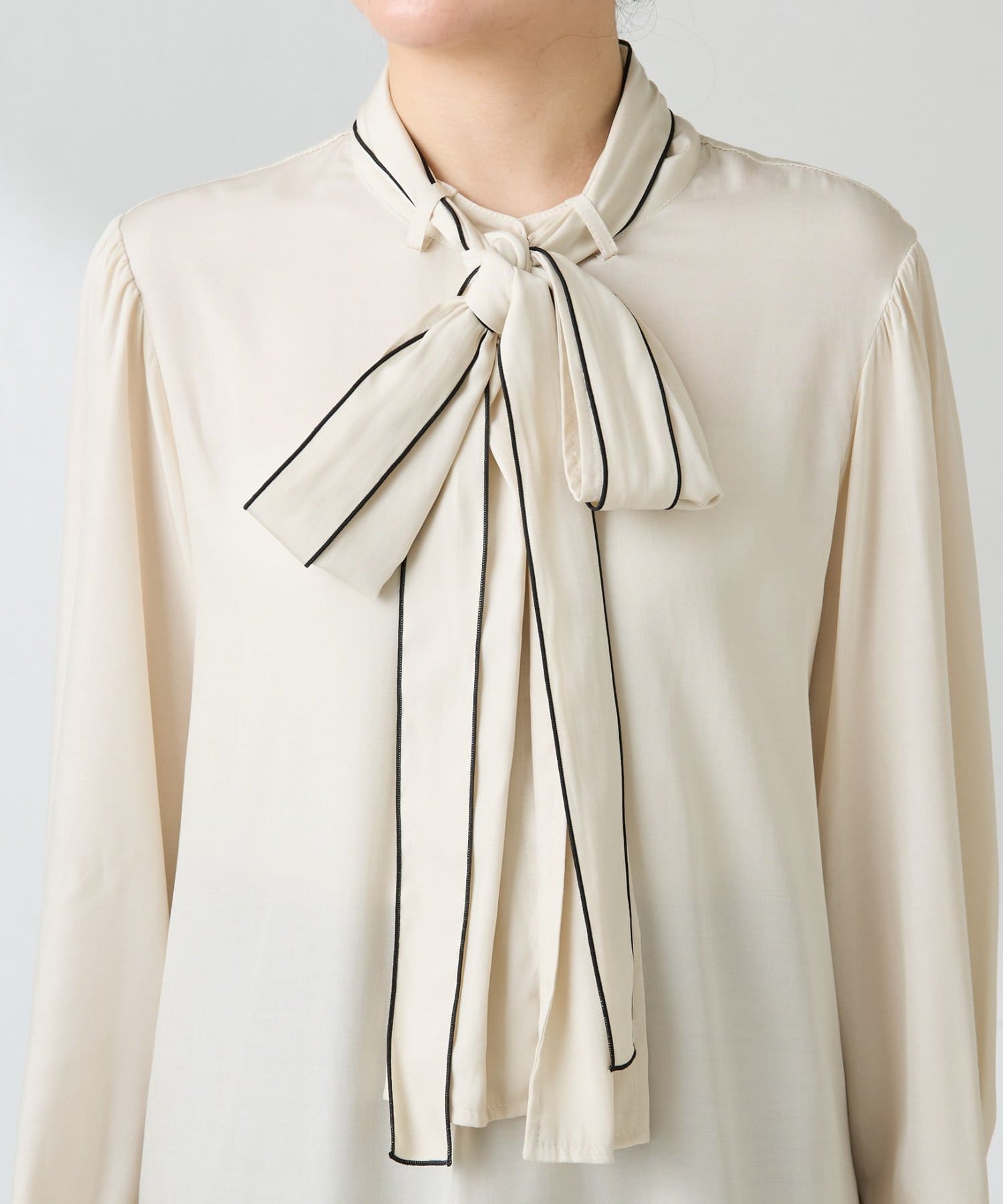 ・太めなタイと細めのパイピング仕様のタイの2種類のボウタイが付いており、幅広いアレンジができるブラウス