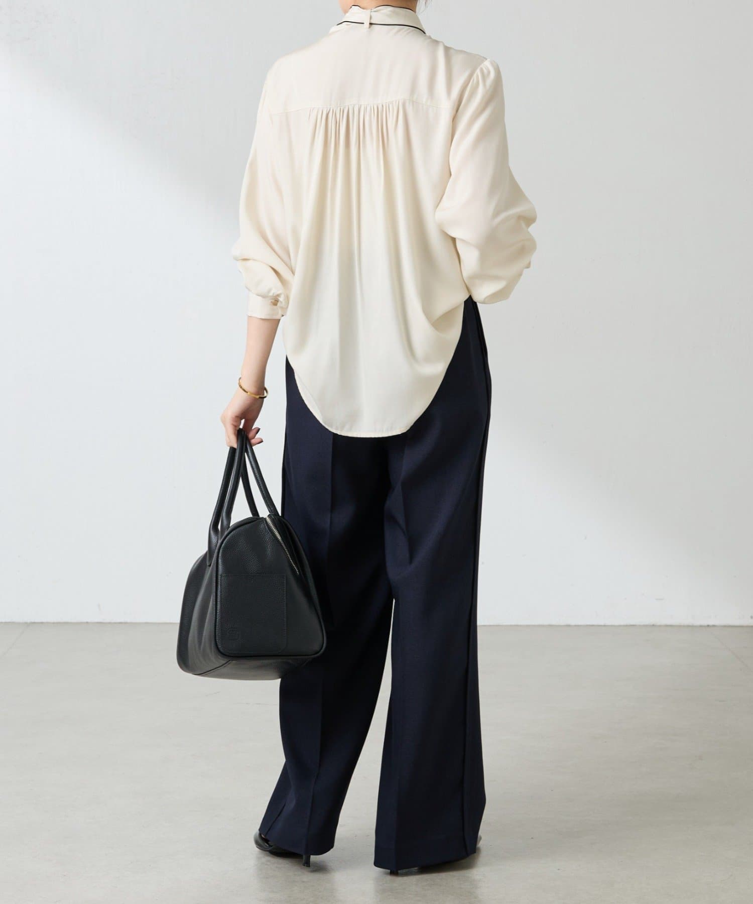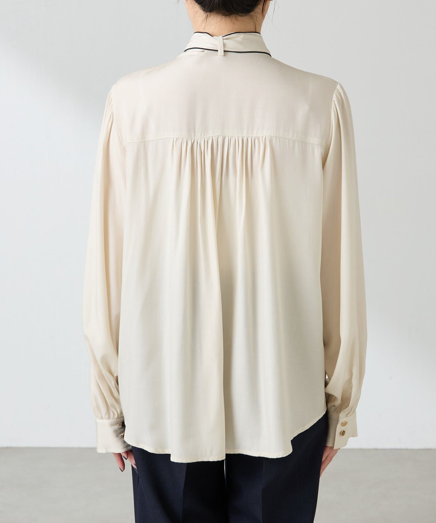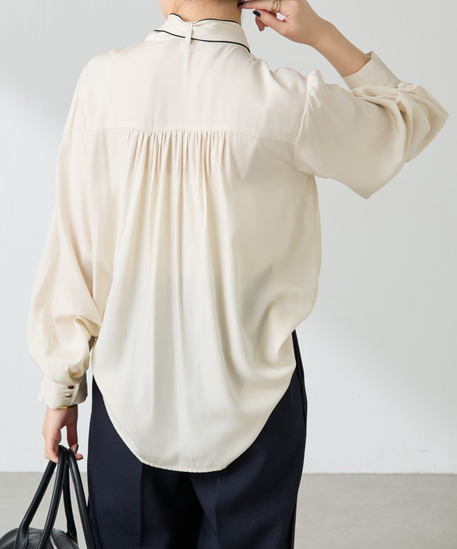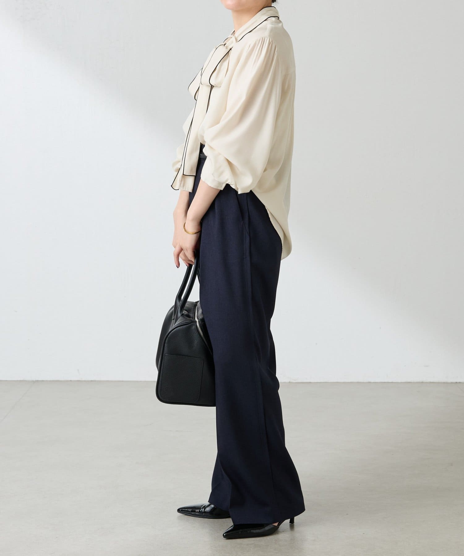 ・太めなタイと細めのパイピング仕様のタイの2種類のボウタイが付いており、幅広いアレンジができるブラウス