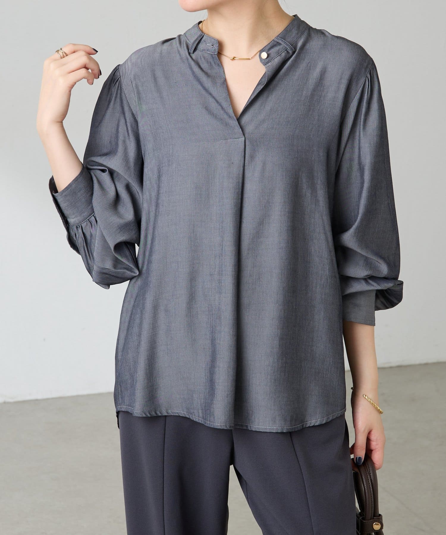 ・ほどよくボリュームのあるシルエットで華やかさのあるブラウスです。