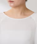 ・詰まりすぎていないクルーネックでニットやカーディガンと重ね着しても首元のバランスが取りやすいです。