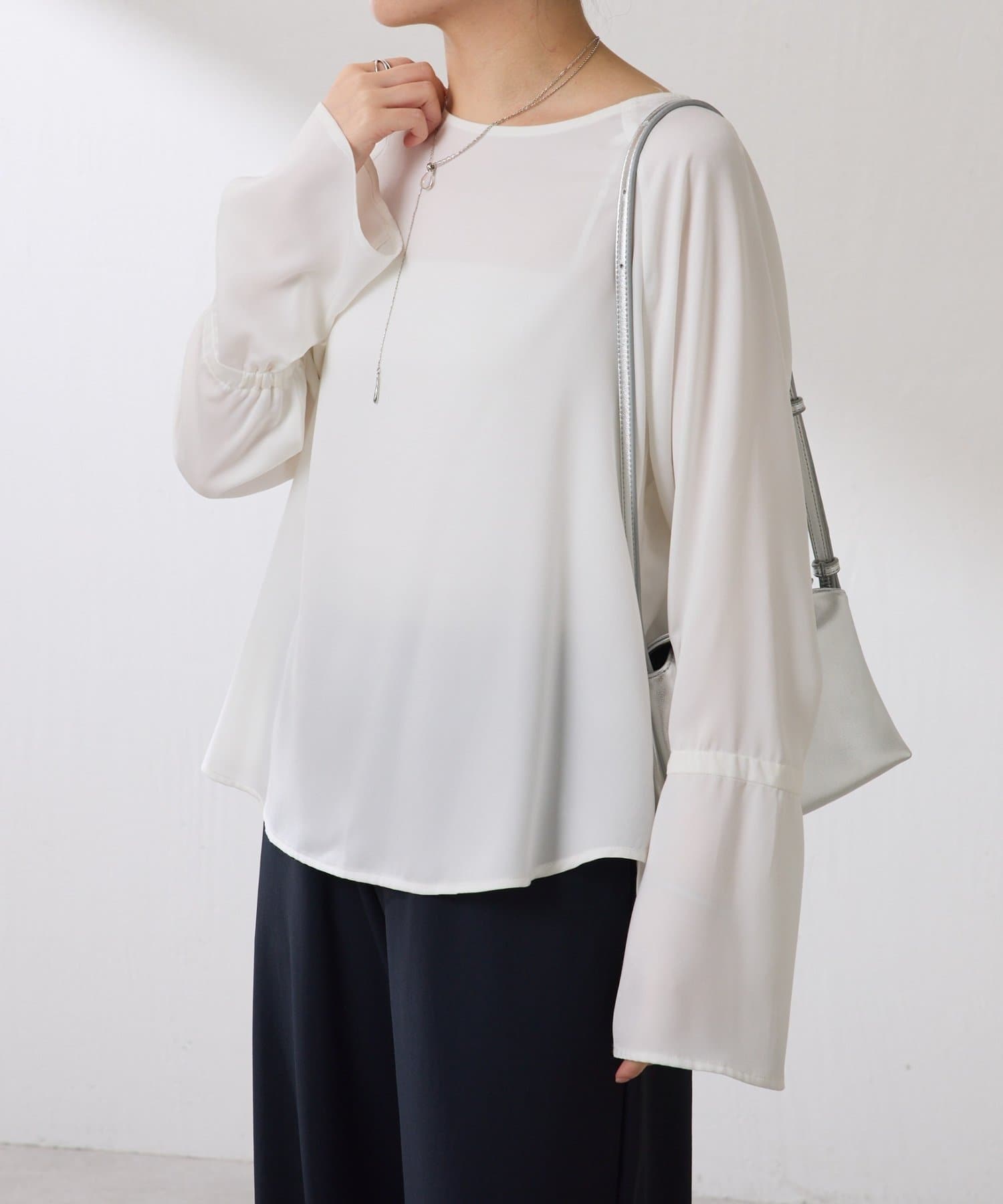 TOP > COLLAGE GALLARDAGALANTE > レディース > トップス > シャツ/ブラウス(プルオーバー) > 【春まで使える/レイヤードアイテム】袖フレアサテンブラウス/セレモニー