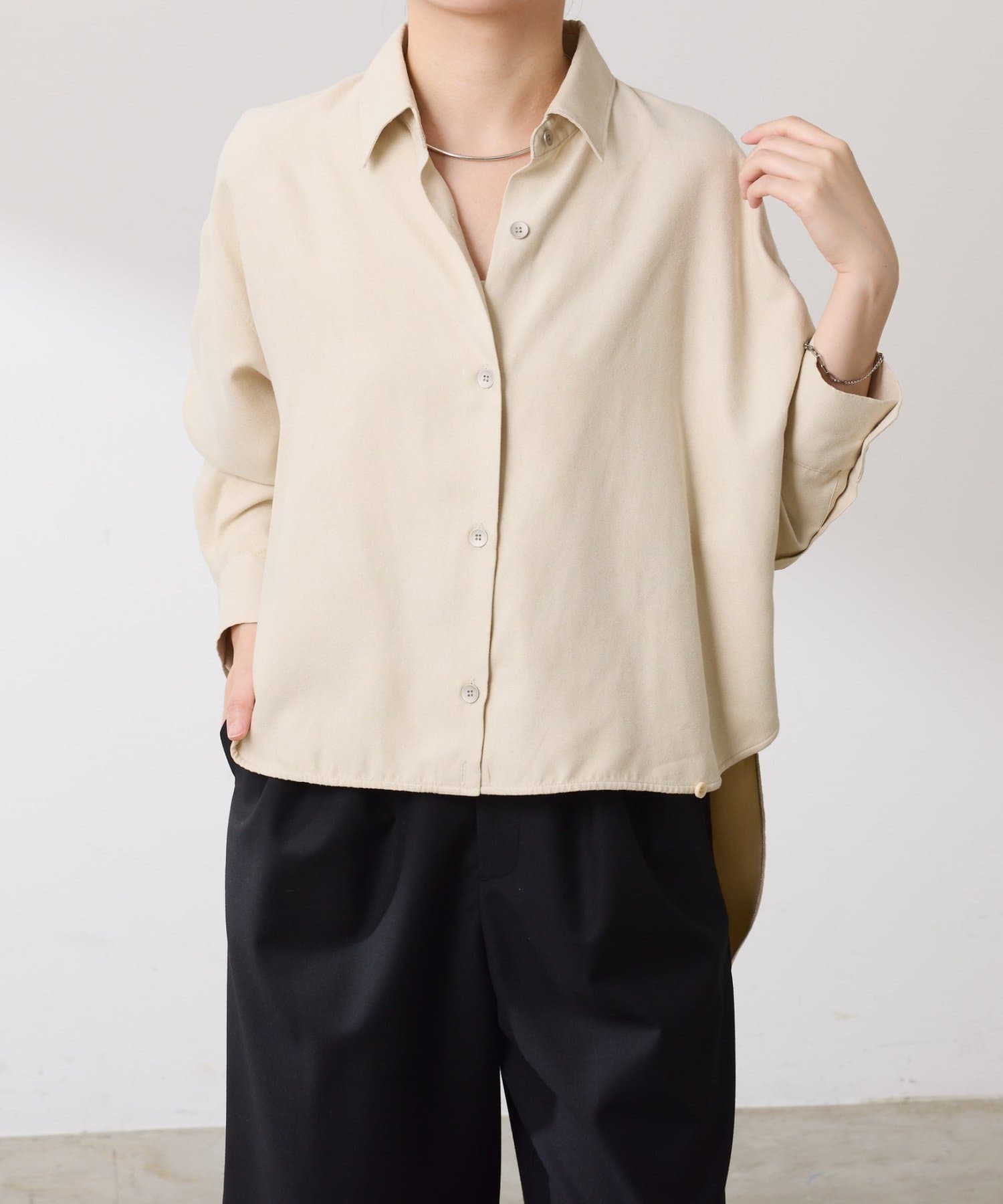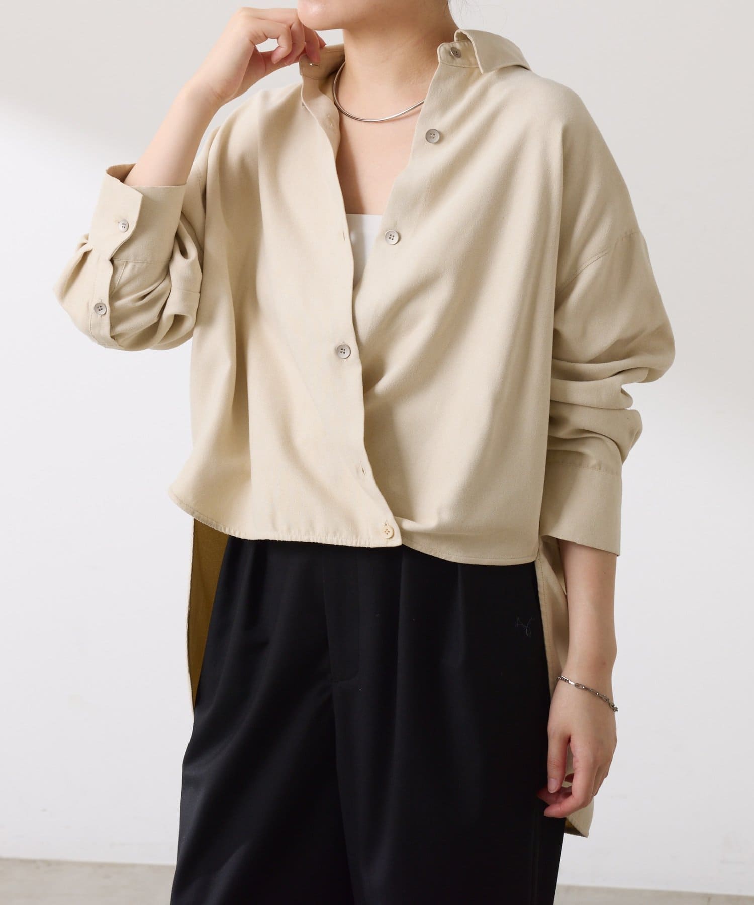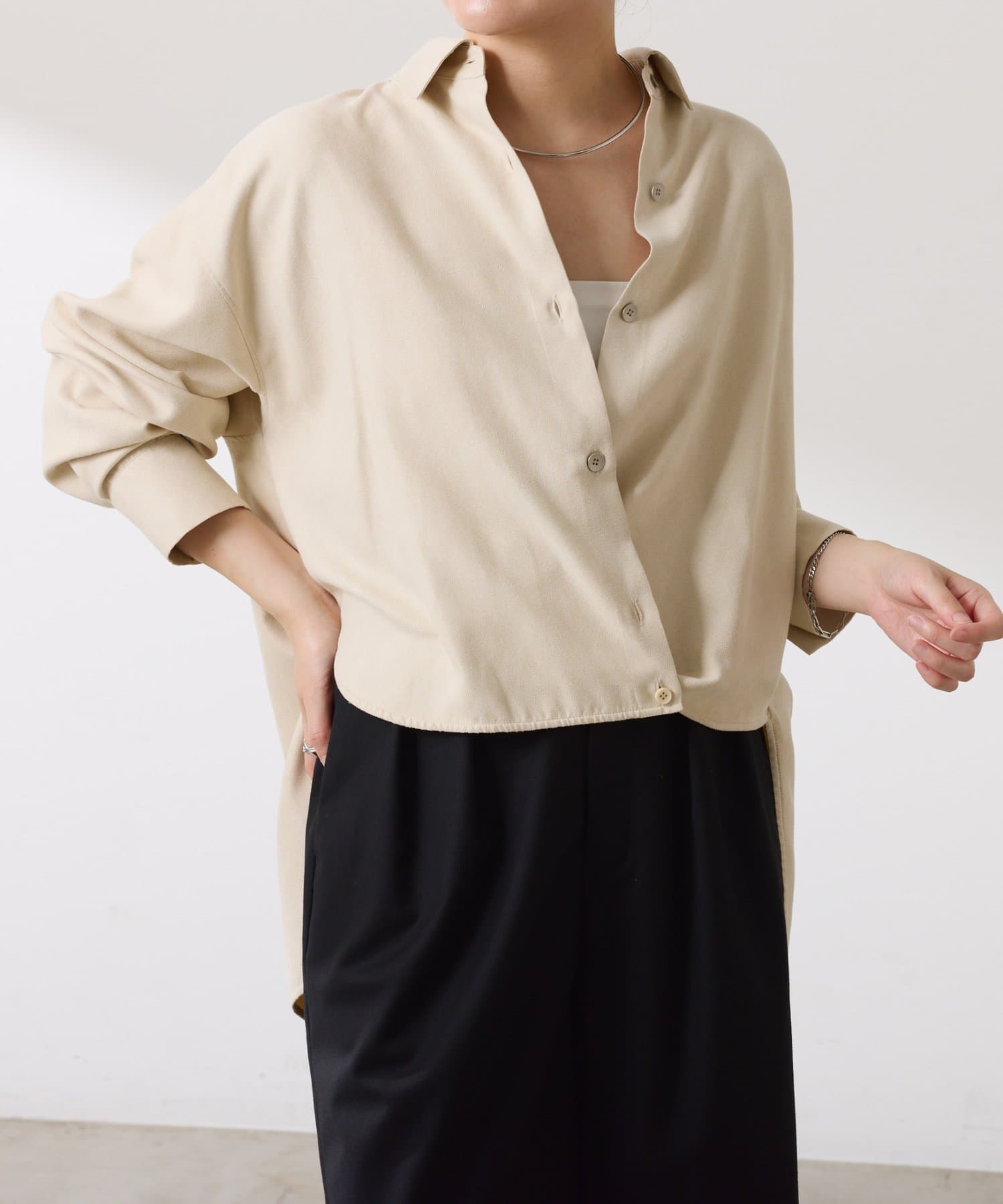 ・前後で着丈が異なります。前は短丈で、インせずにバランスよく決まり、後ろはお尻が隠れて体型カバーも叶います◎