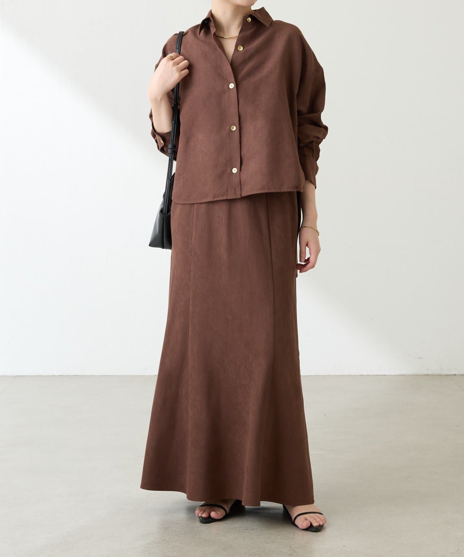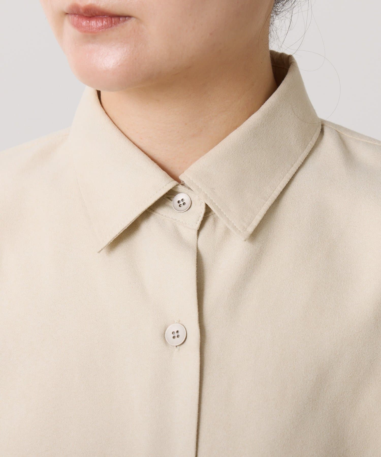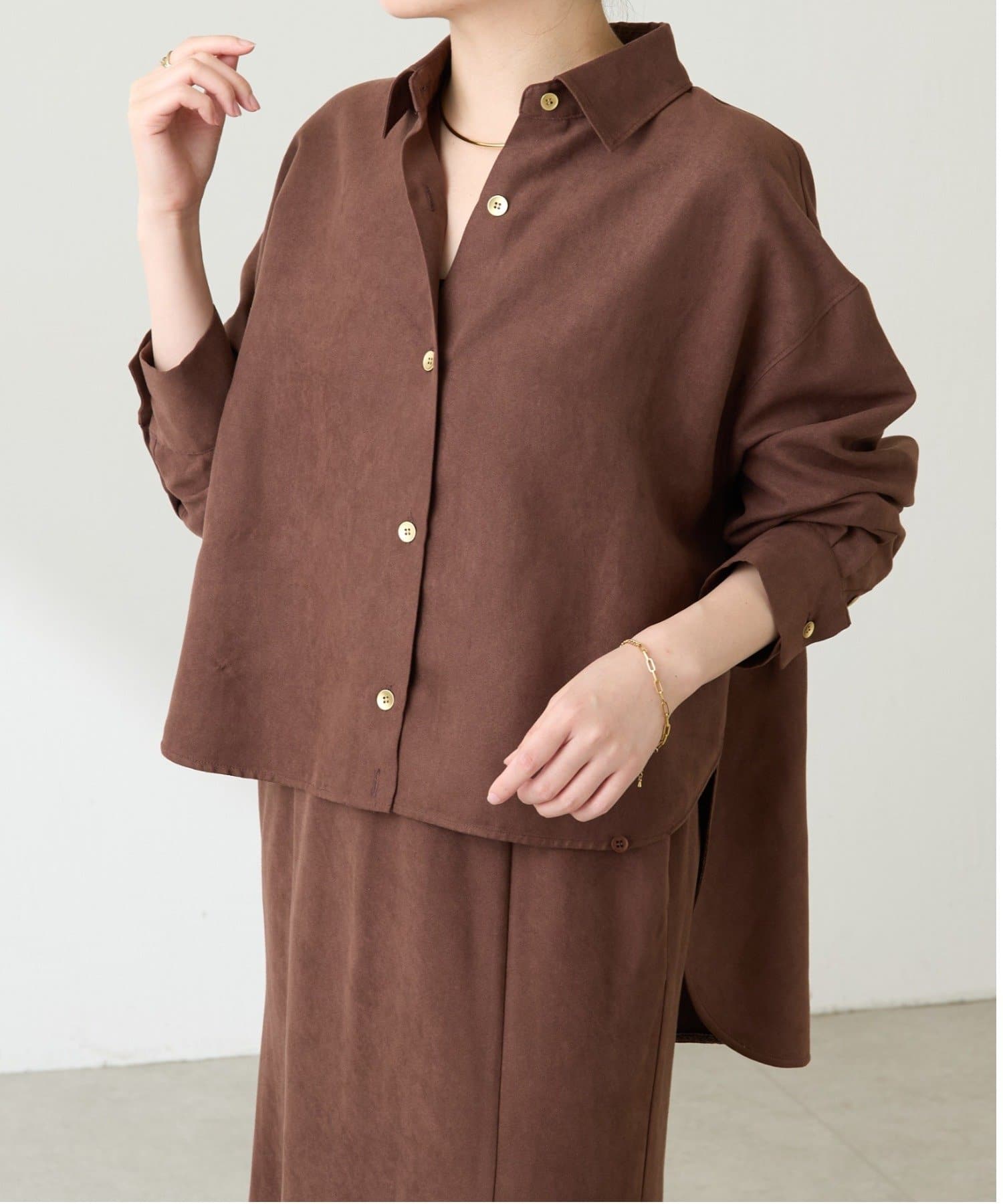 着るだけでいつものシャツスタイルがワンランクアップするスエードシャツ