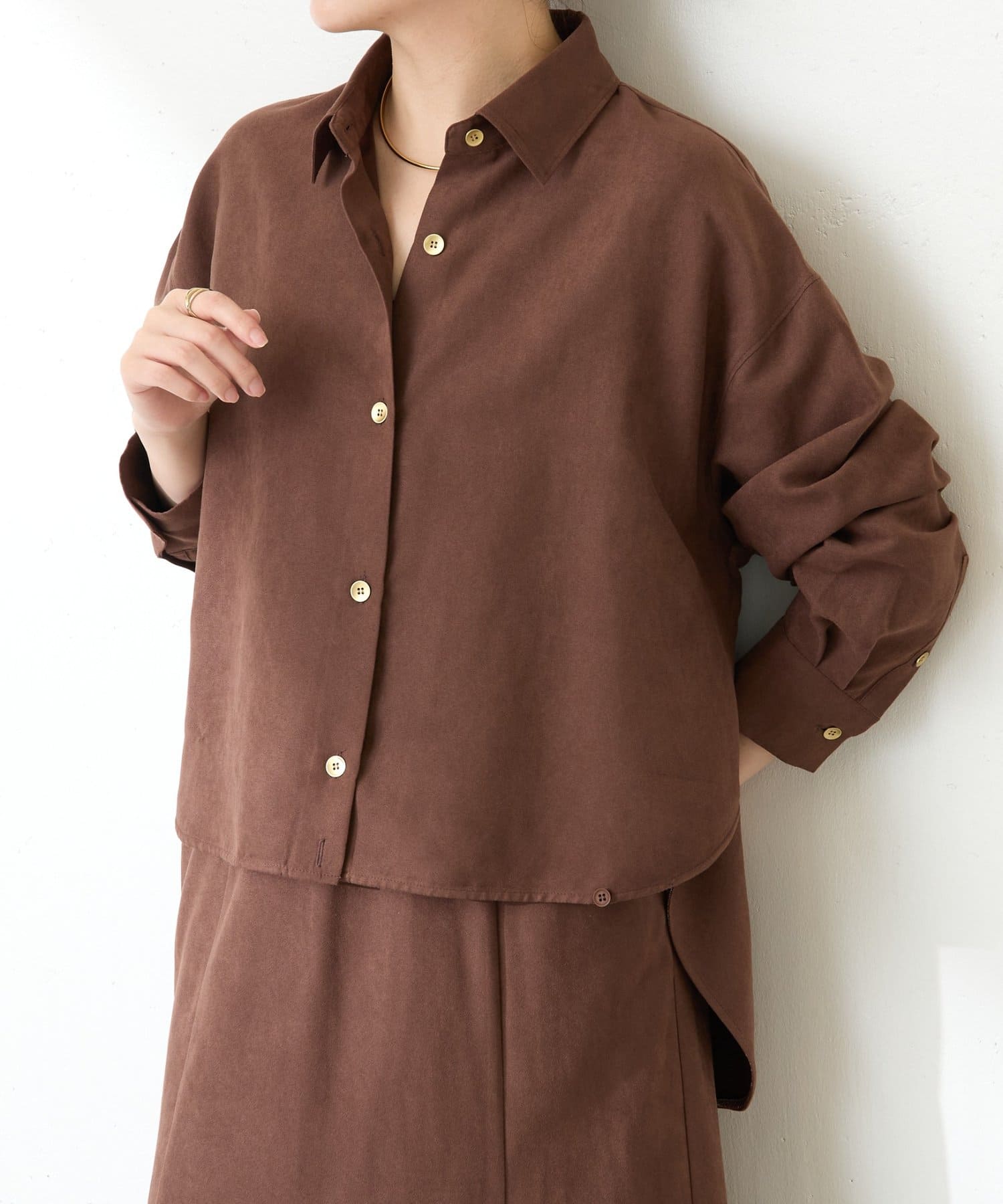 【デザインを変えられる】スエードタッチバックロングシャツ/カセット服