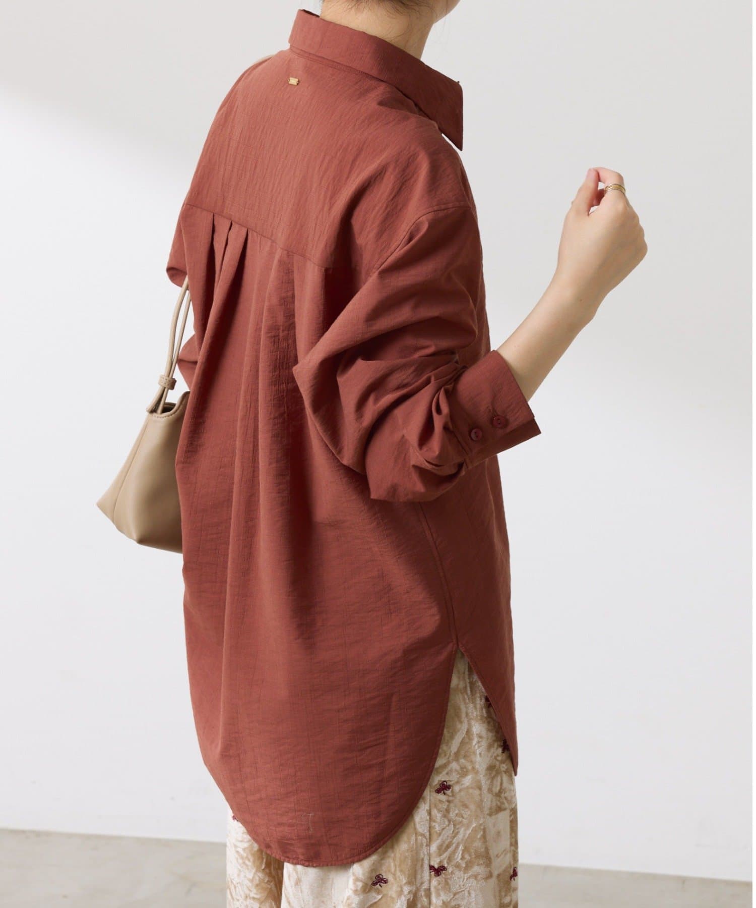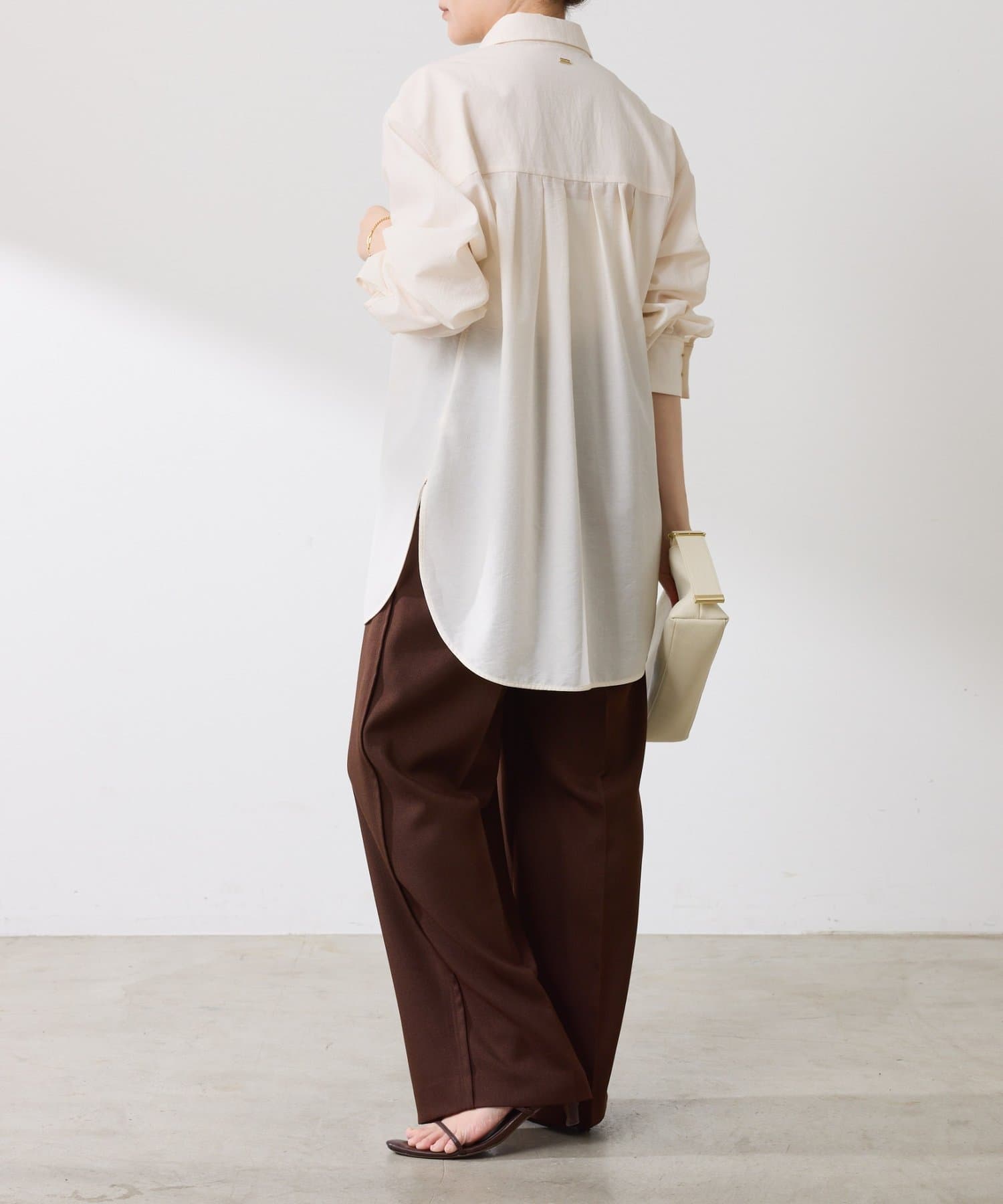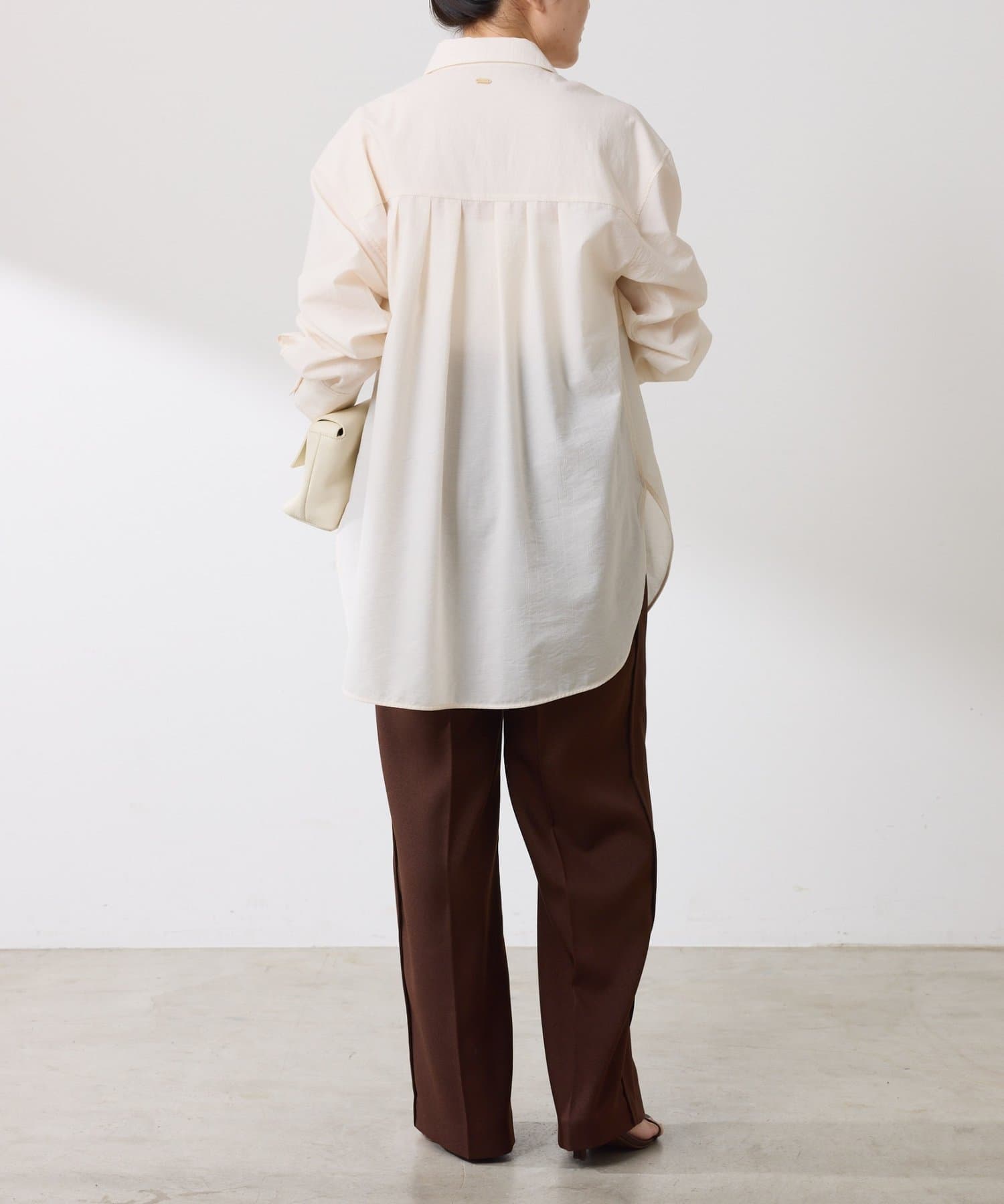 ・程よいツヤと落ち感のある素材を使用したチュニックシャツ。
