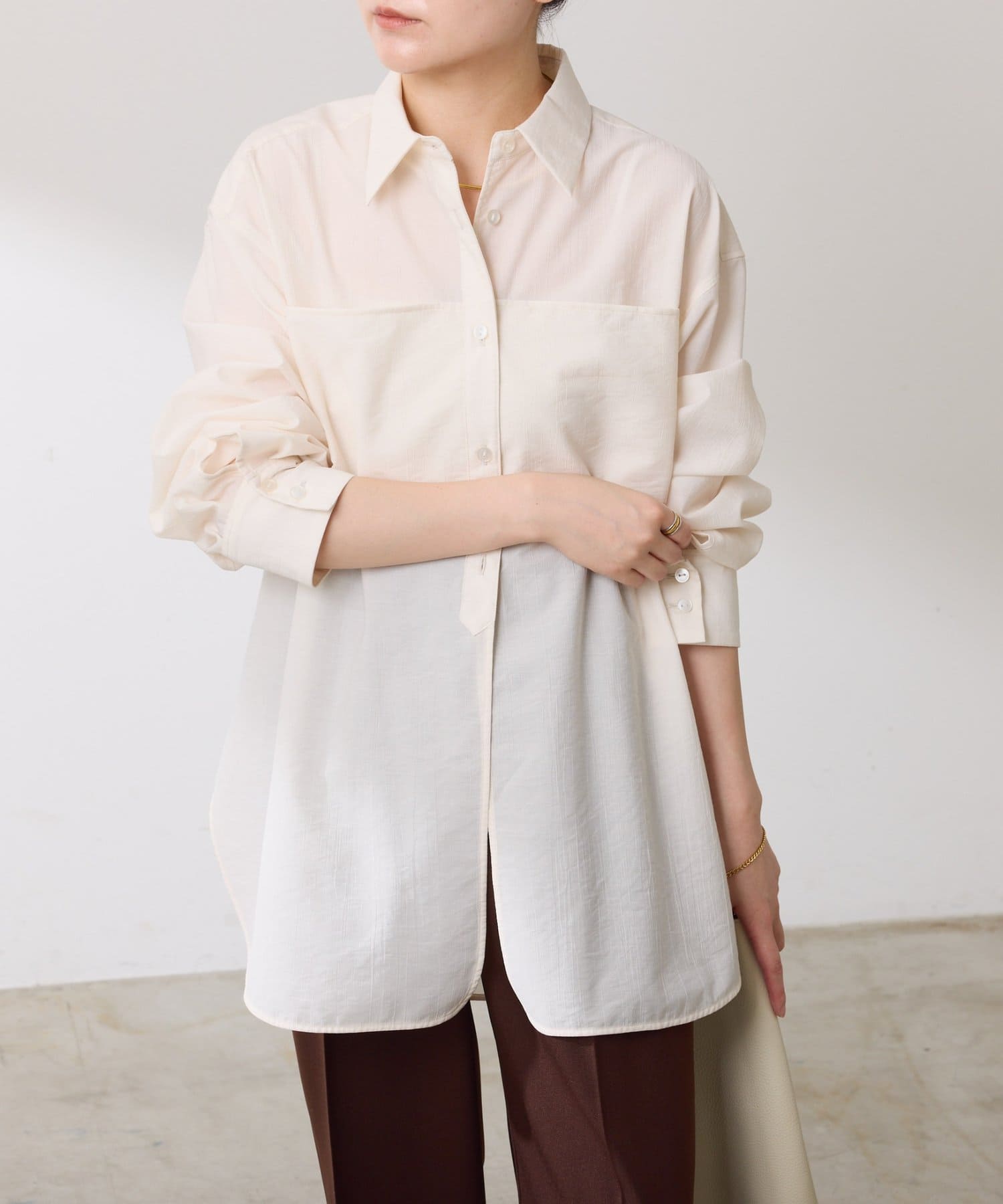 トレンドのレイヤードスタイルが楽しめるチュニックシャツ