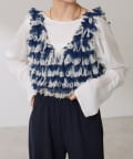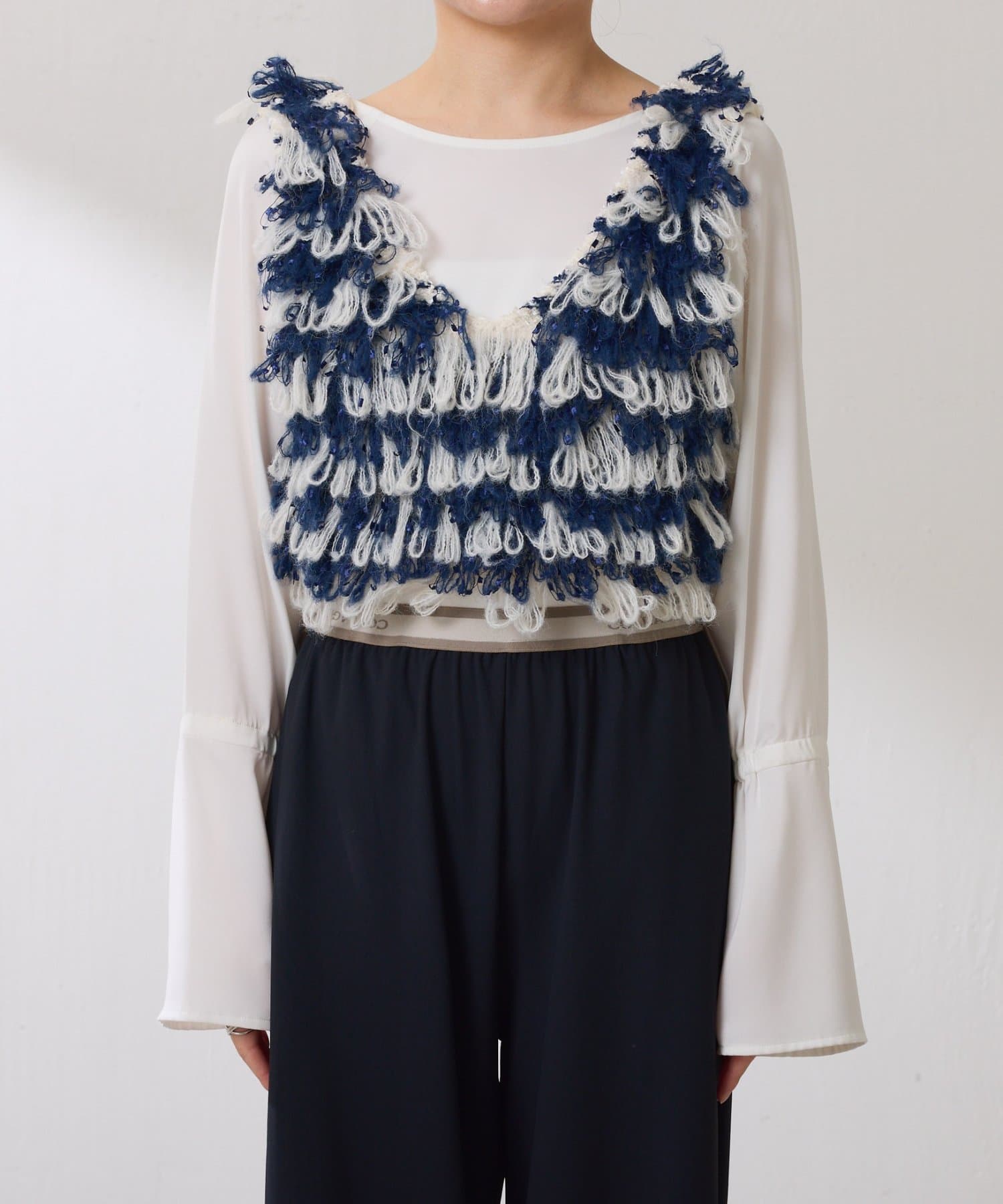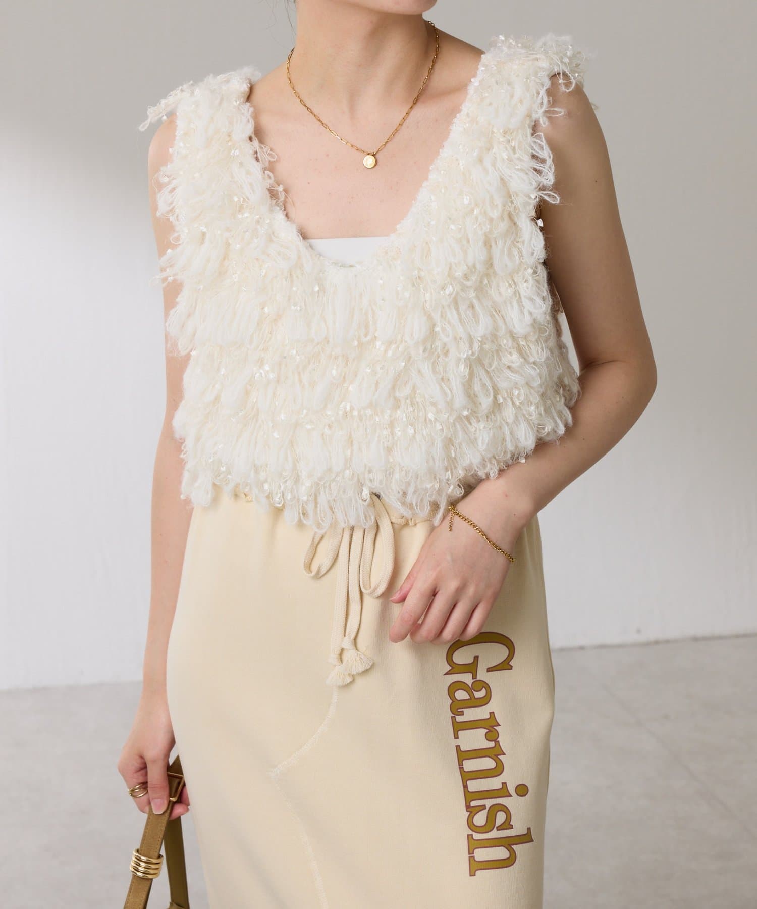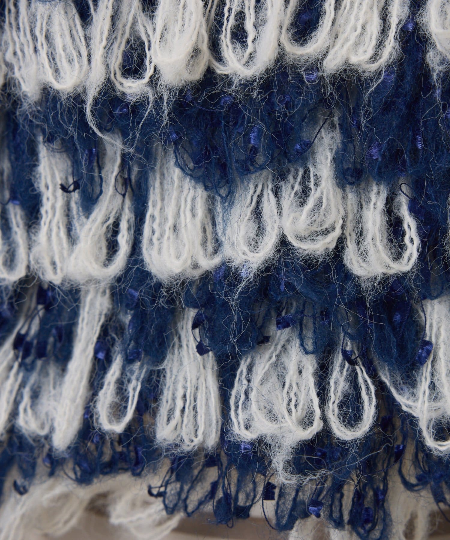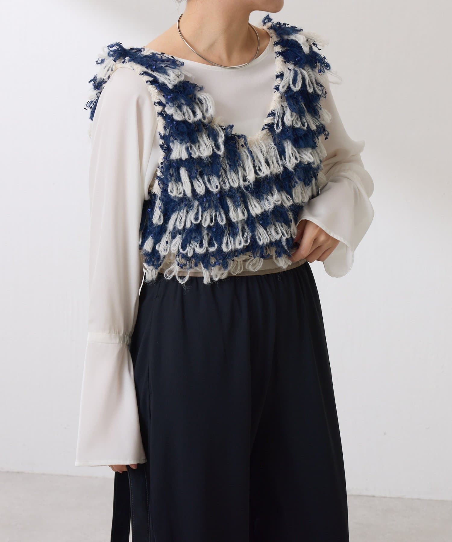 ・2種類の糸でボーダー状にループを出したクロップドのニットベスト。
