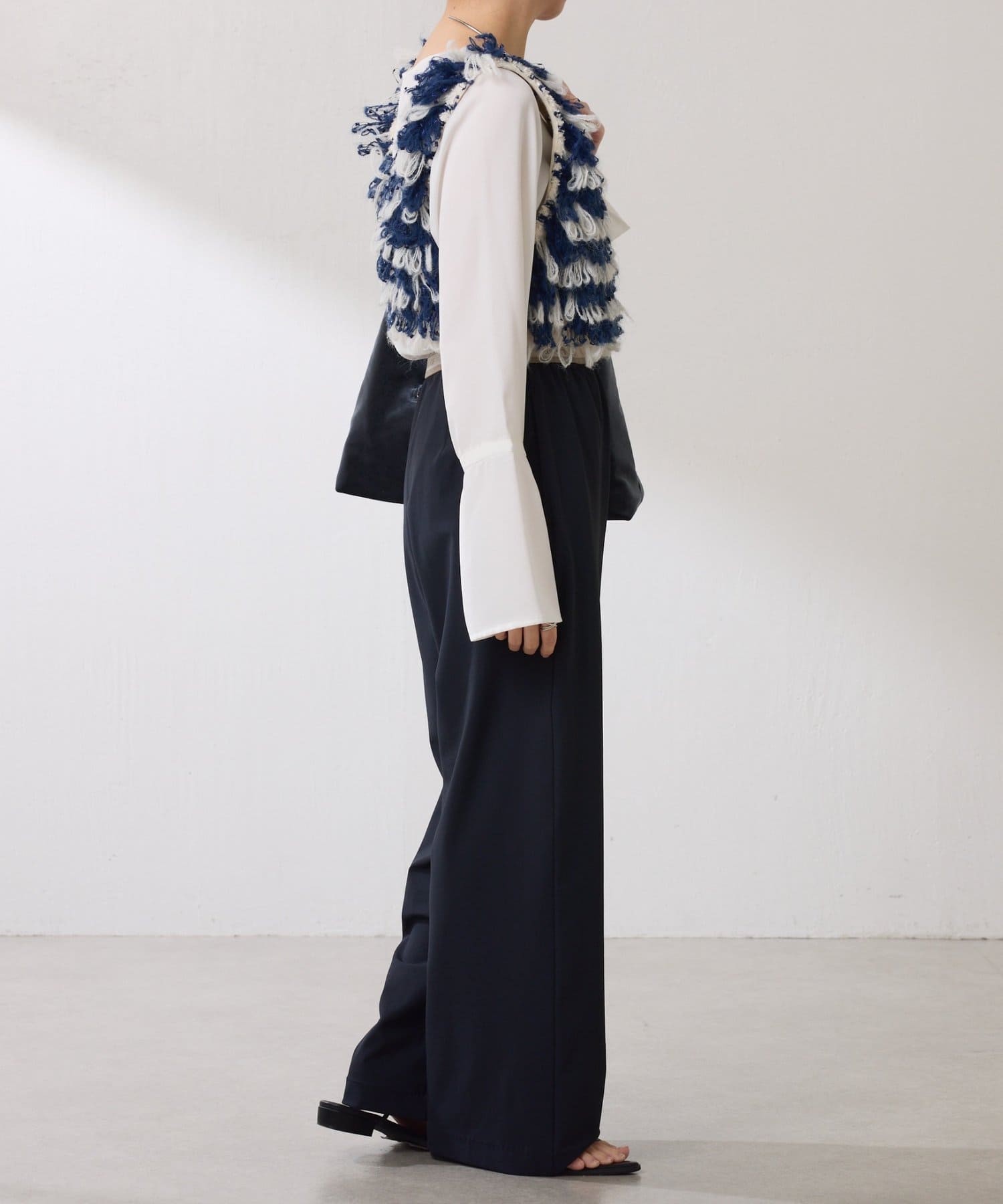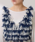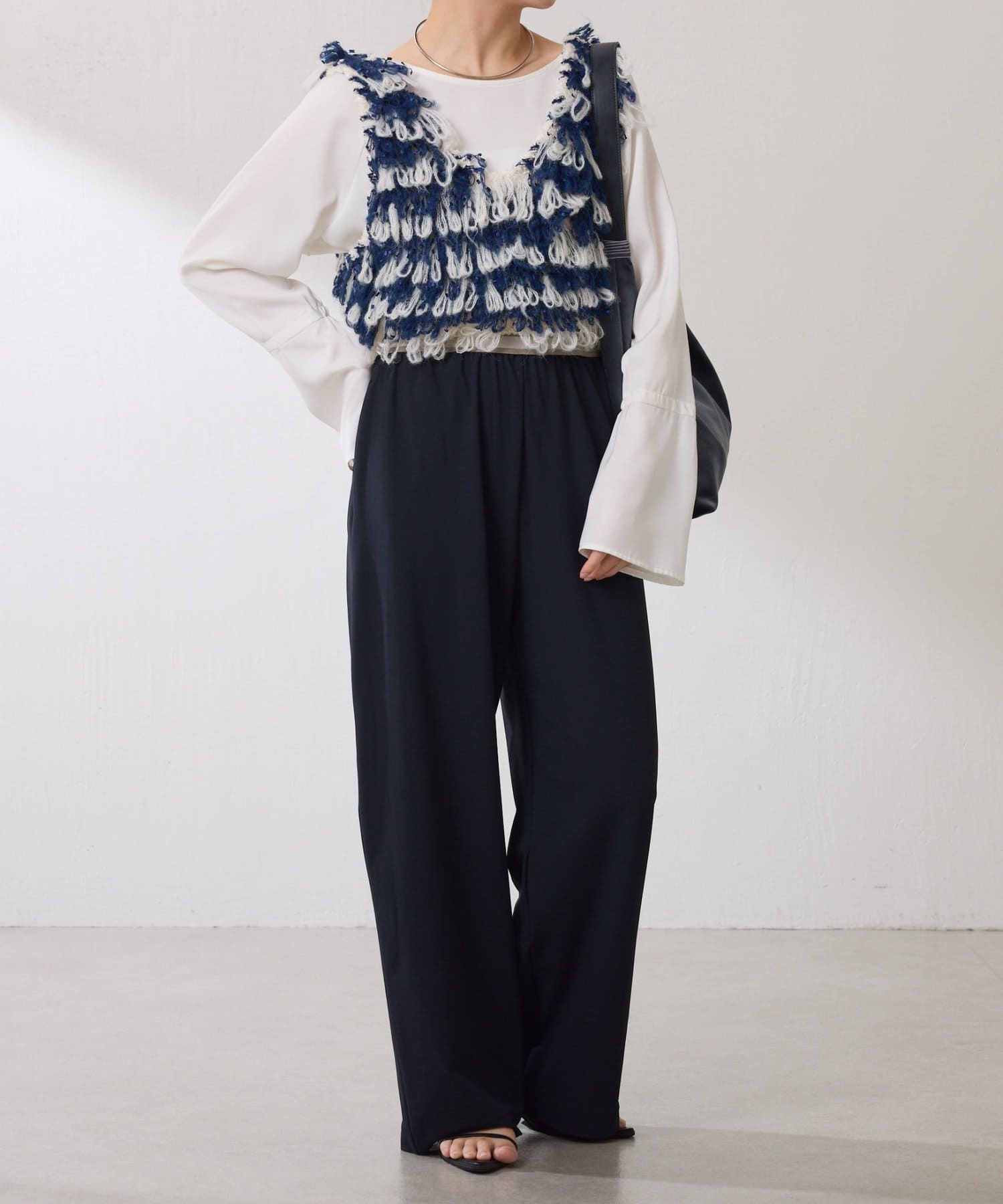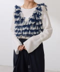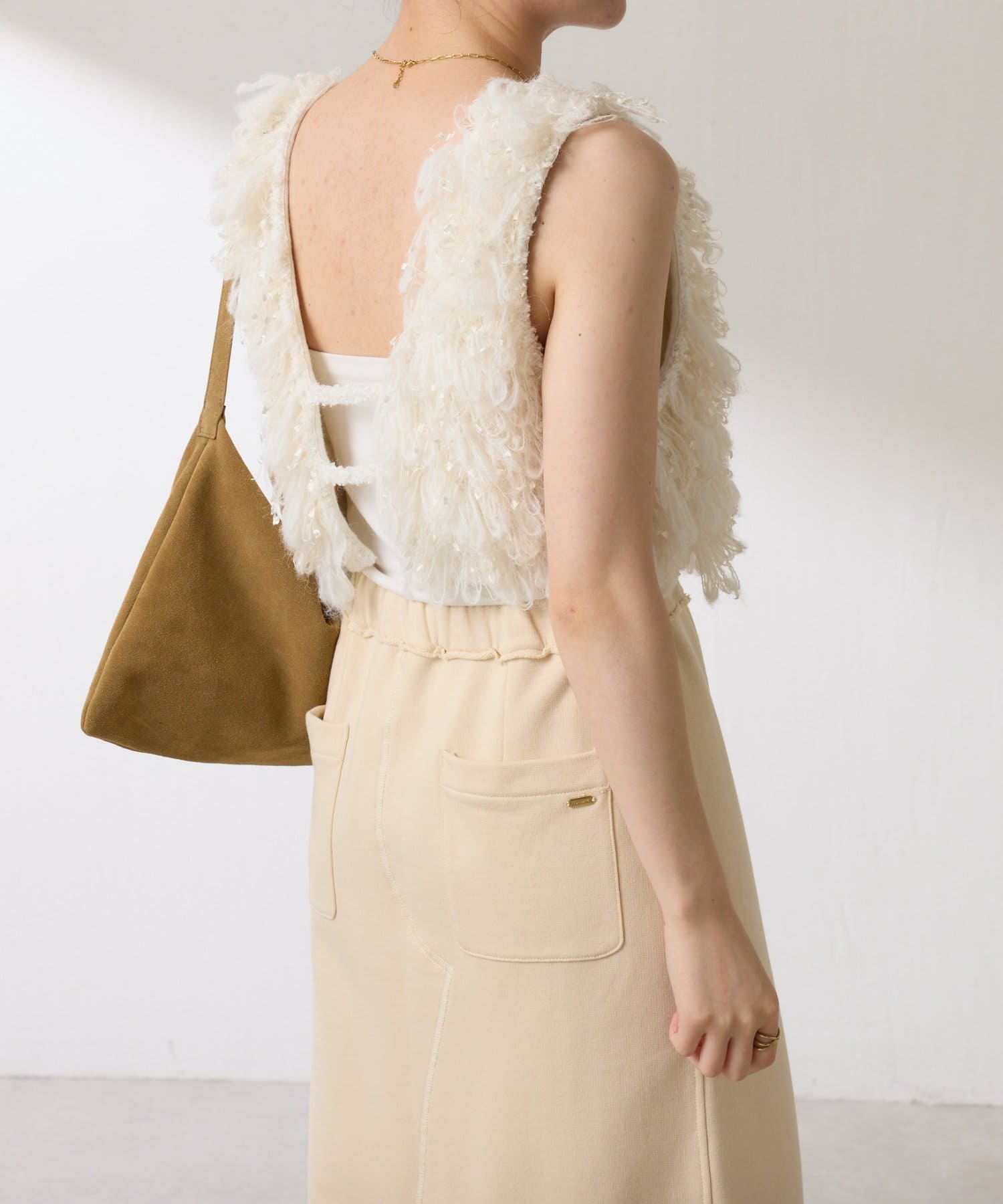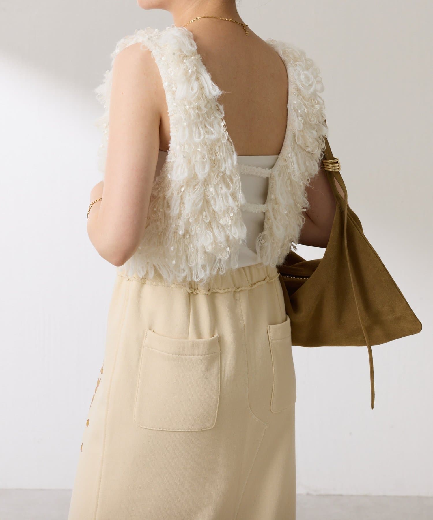 ・2種類の糸でボーダー状にループを出したクロップドのニットベスト。