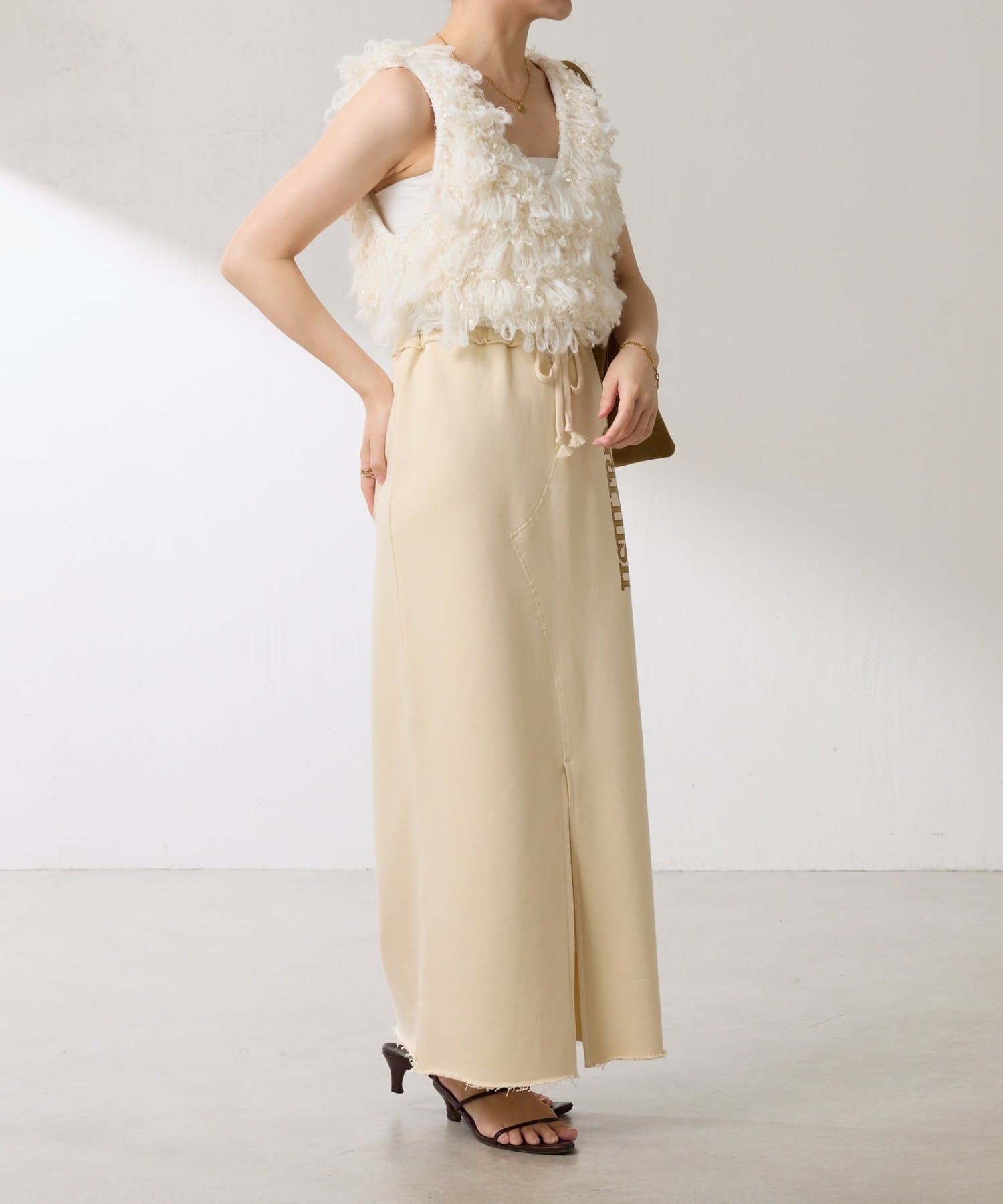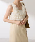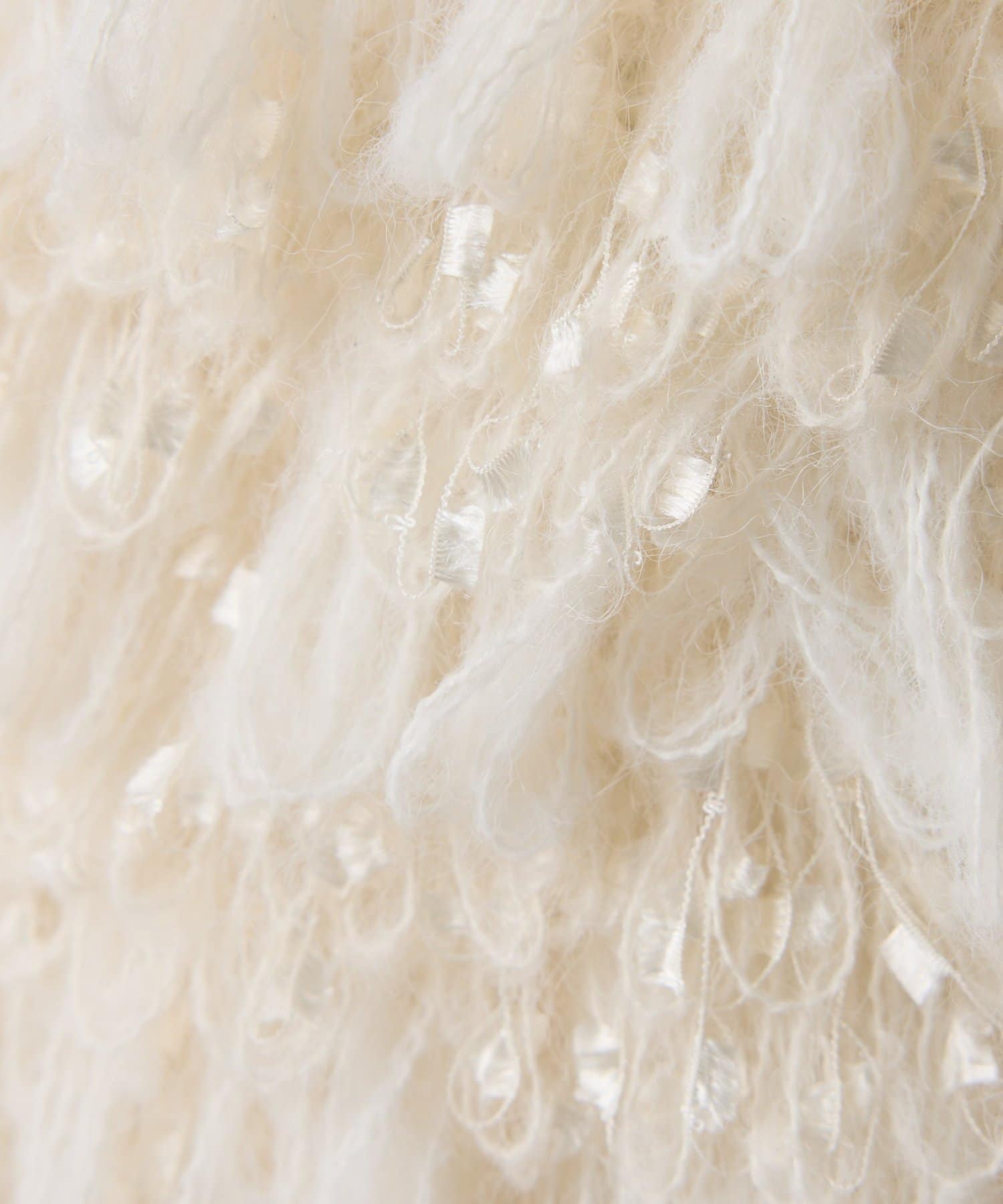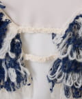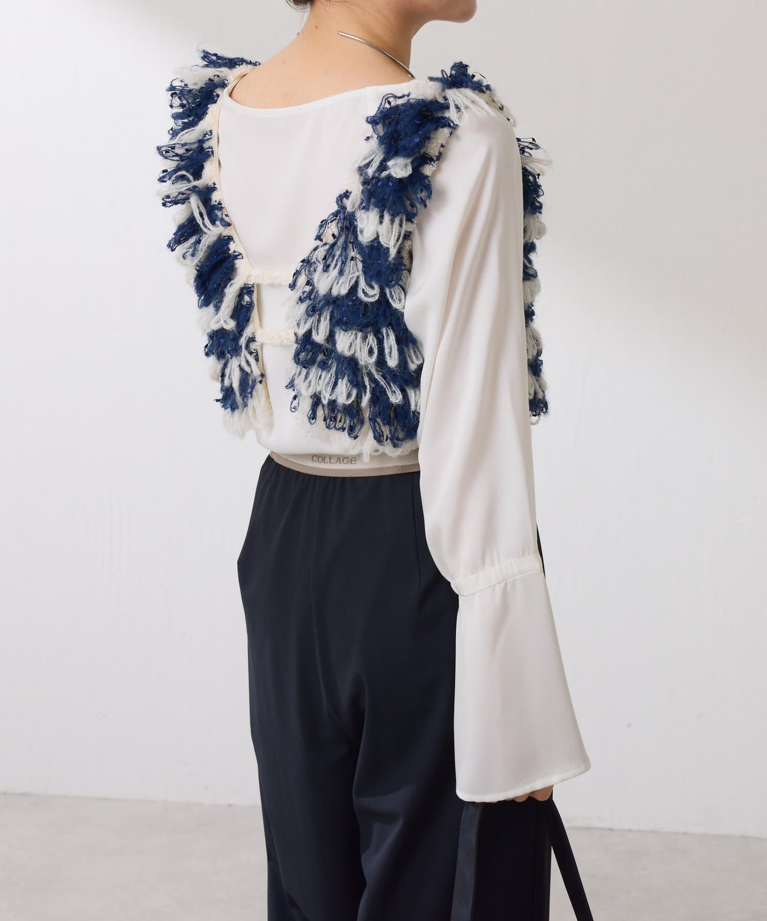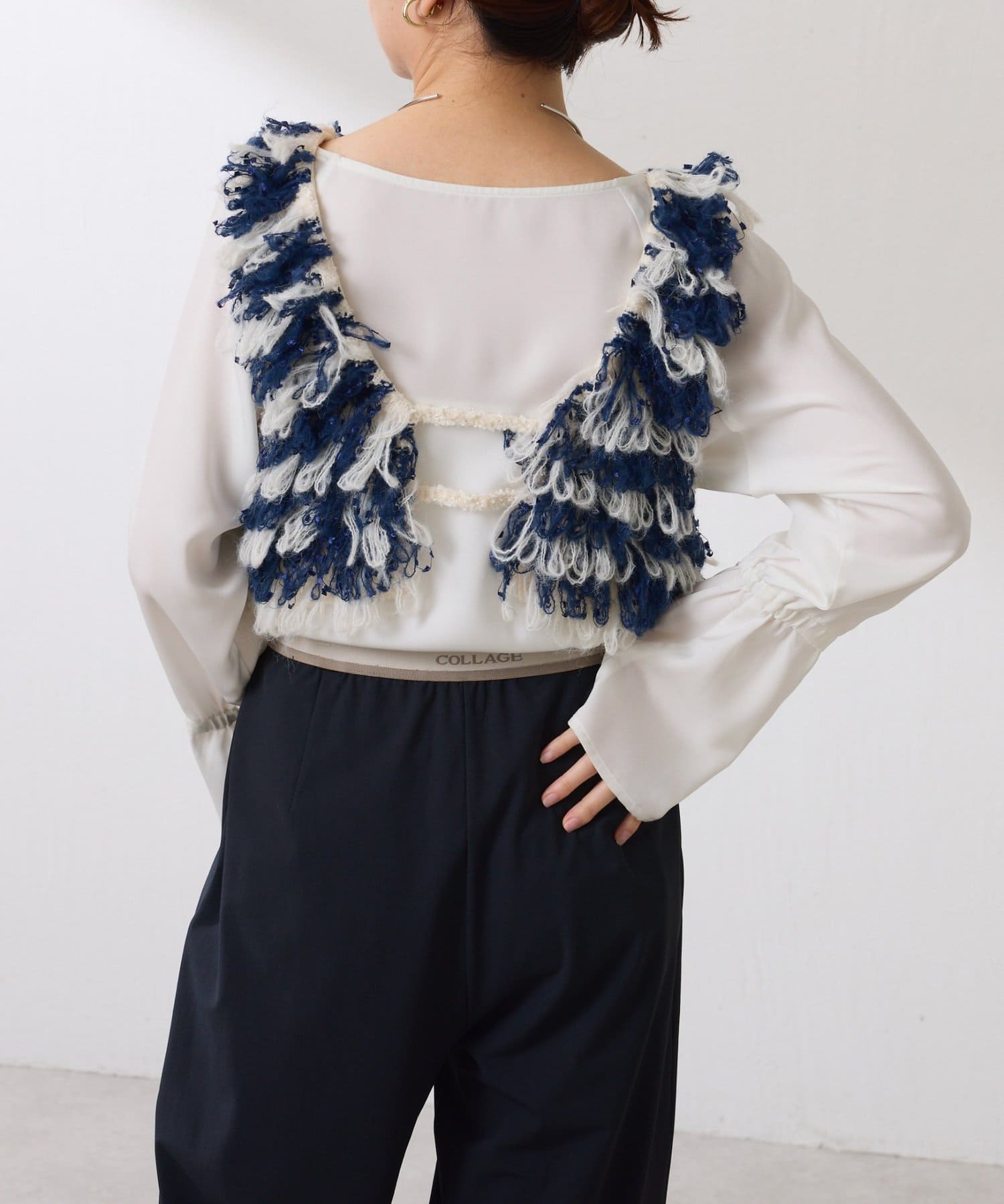 ・2種類の糸でボーダー状にループを出したクロップドのニットベスト。