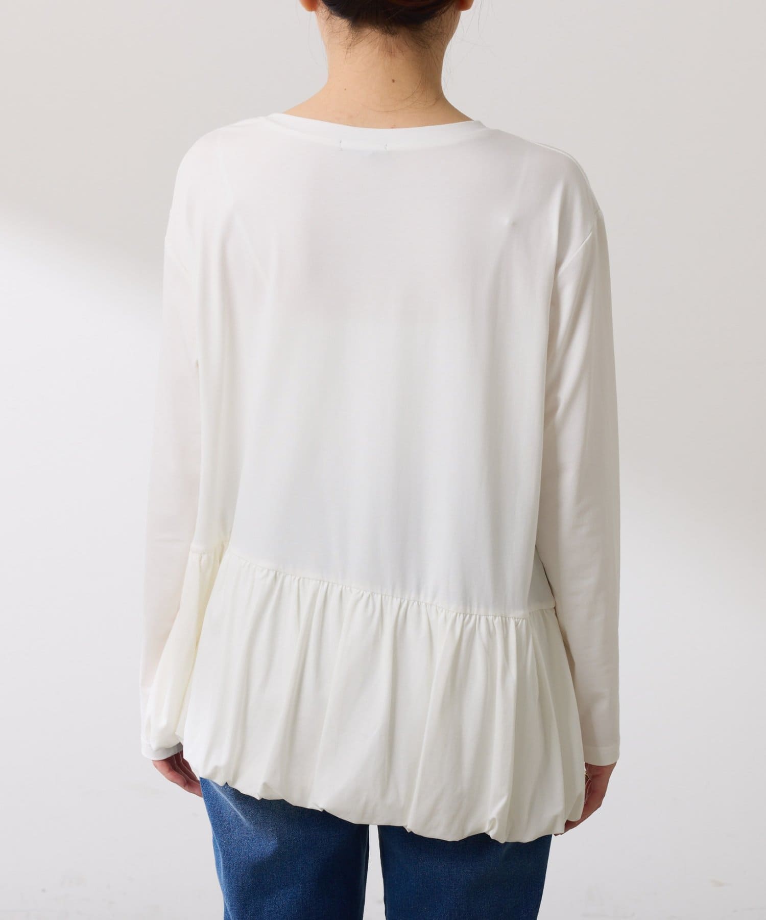 ・裾のバルーンは、アシンメトリーになっており、甘すぎず大人っぽい印象に仕上げました。