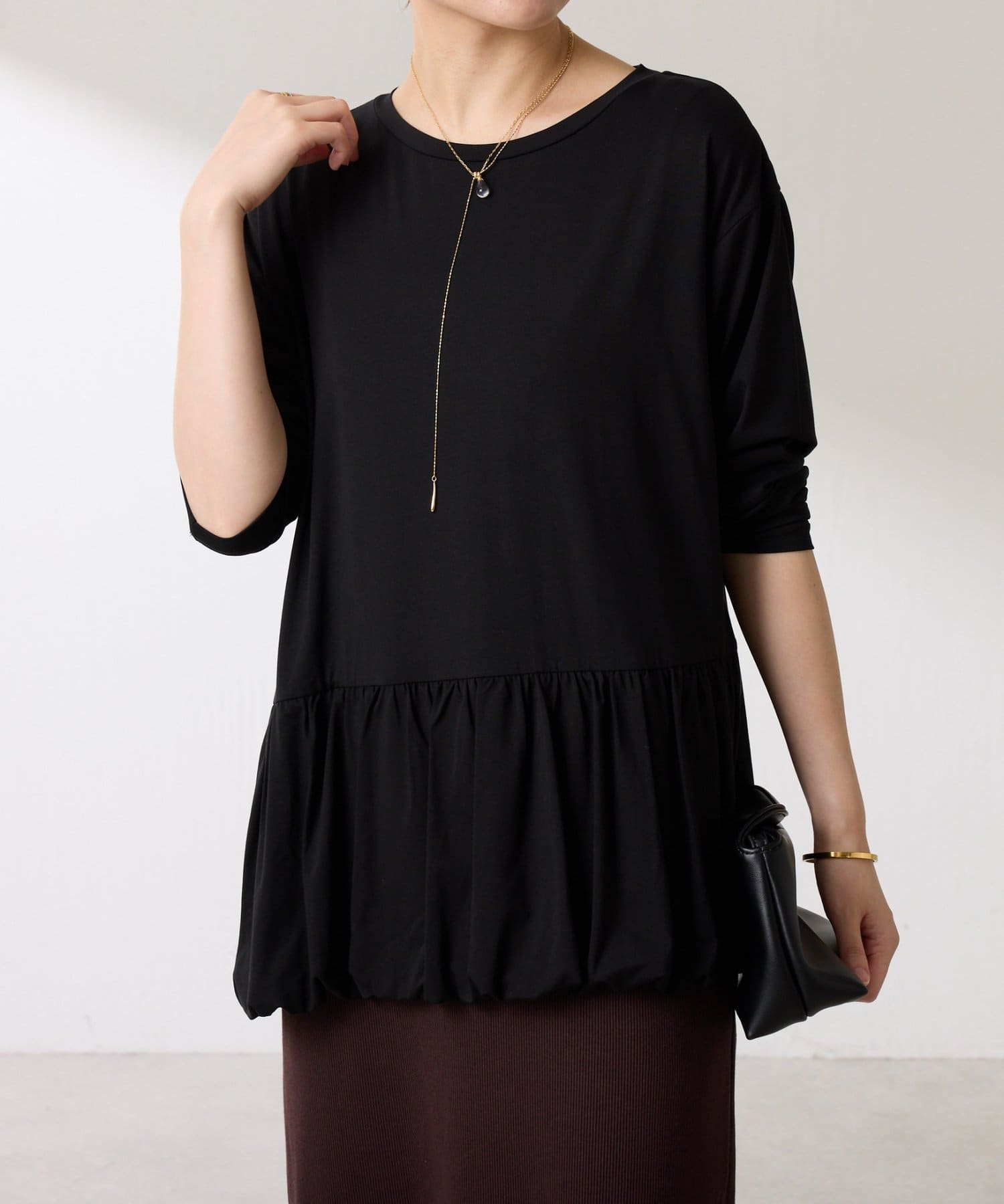 ・カットソー生地ですが、ほどよい光沢感がありきれいめスタイルにも使えます◎