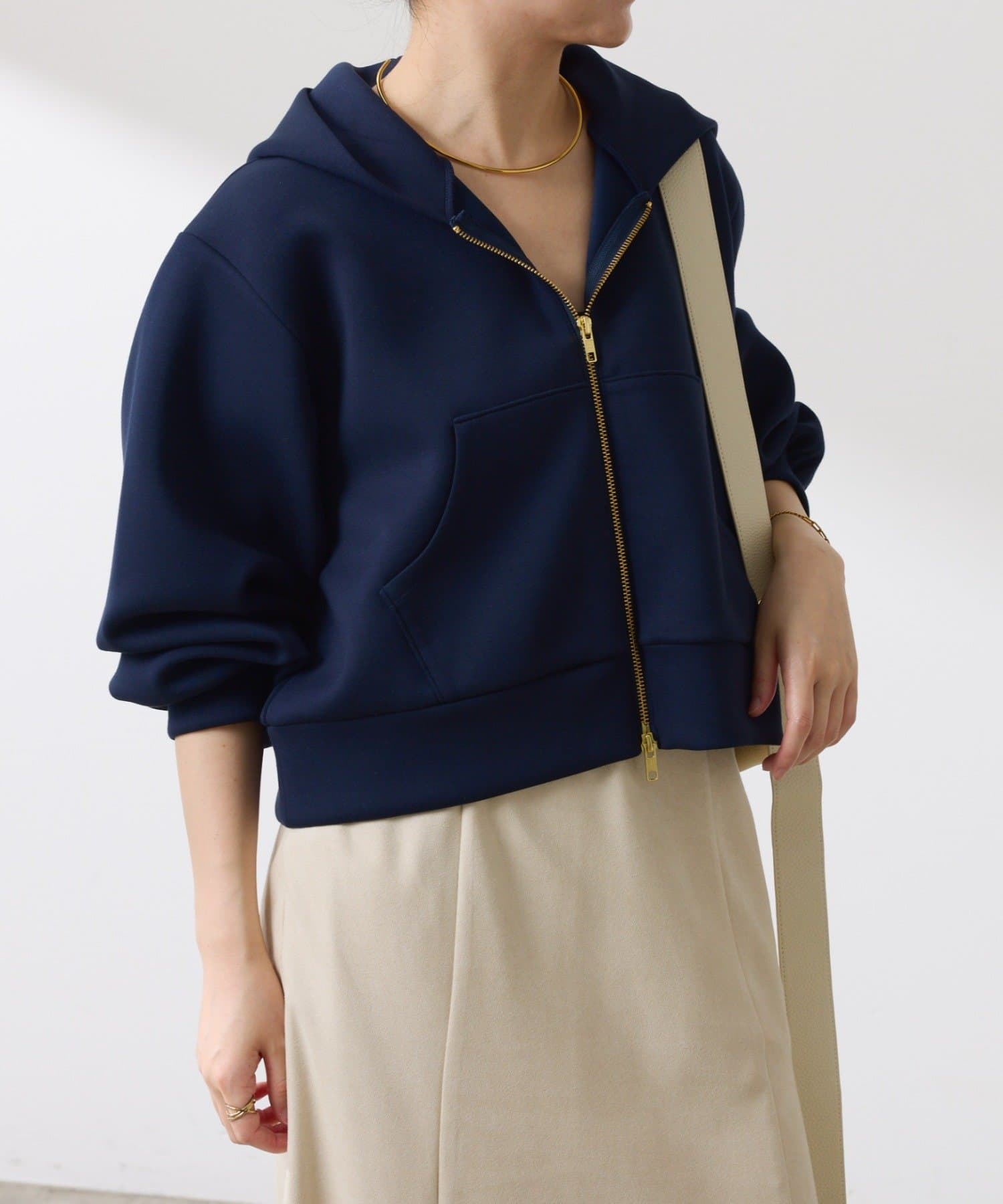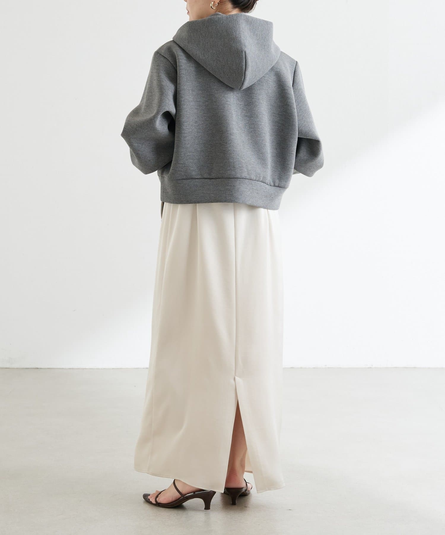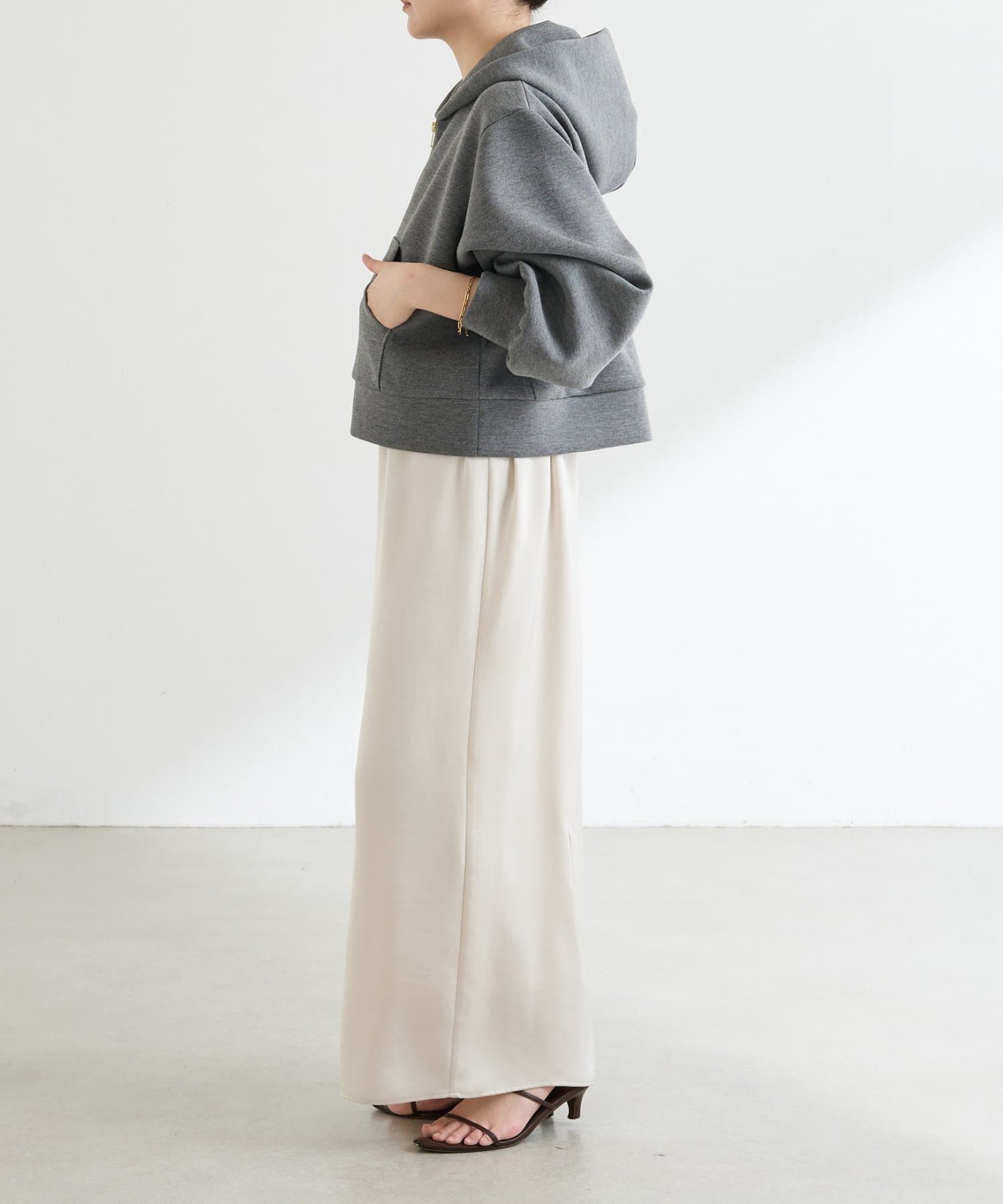 気軽に羽織れるパーカーですが、きれいめスカートやワンピースとも相性が良く普段使いに万能なアイテムです。