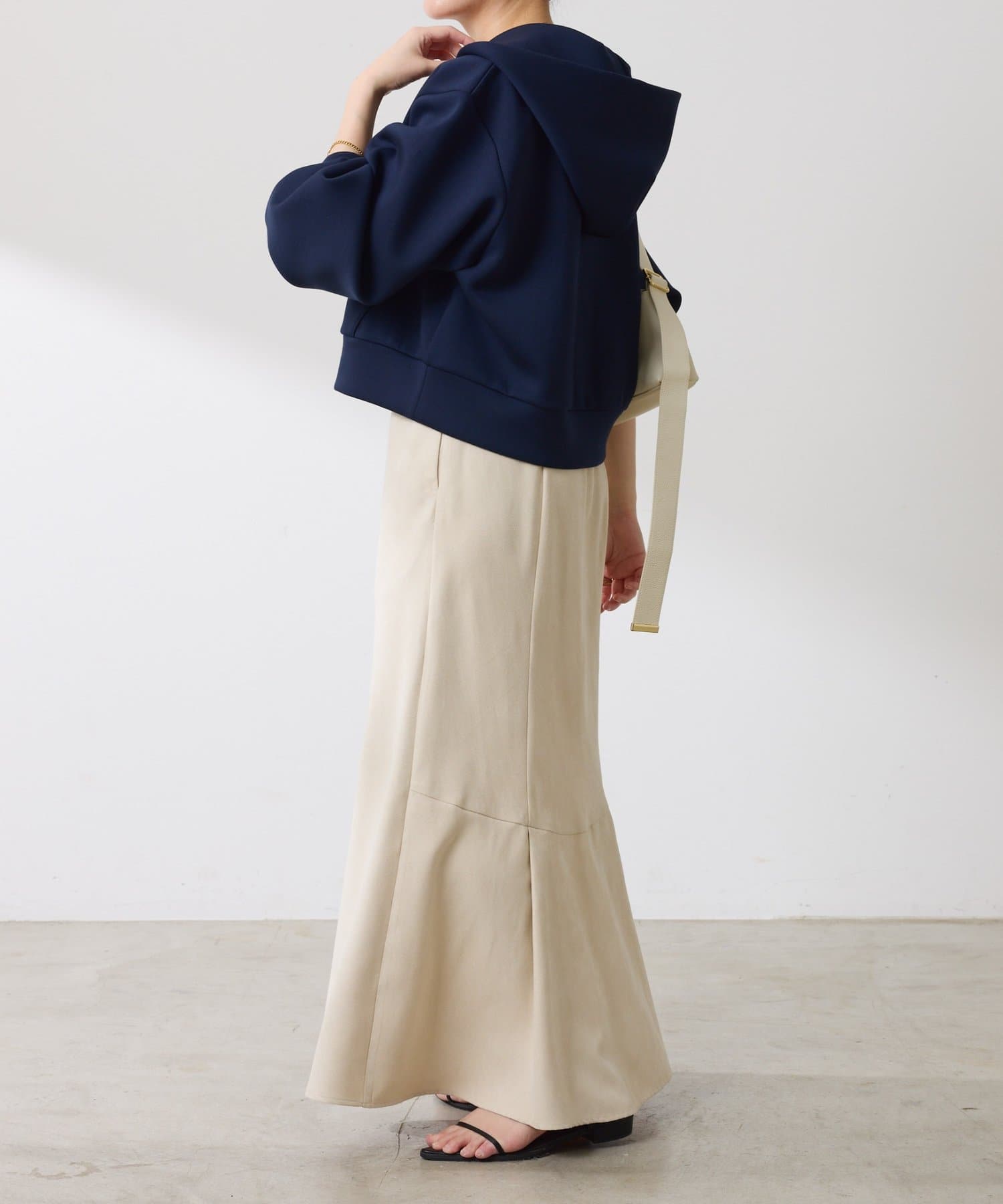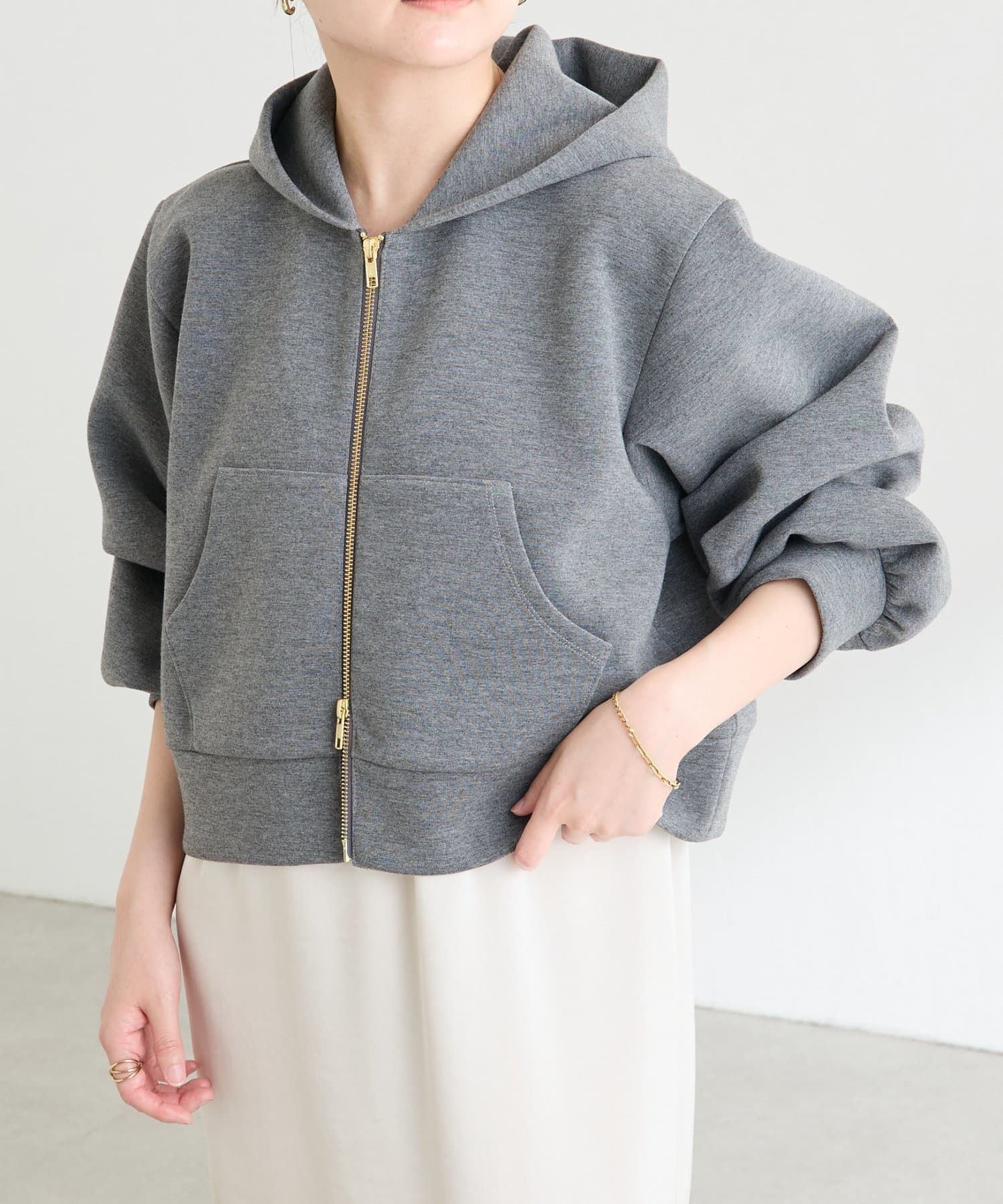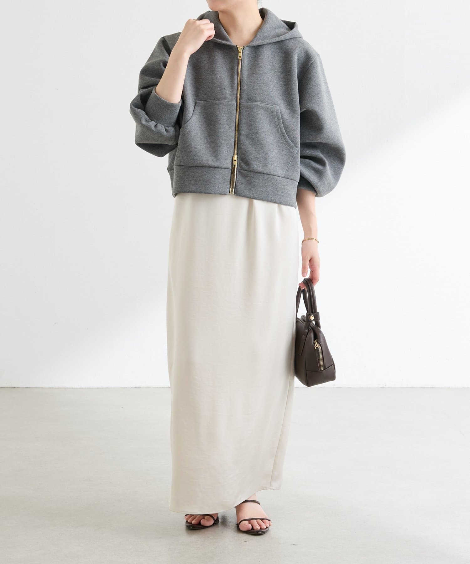 気軽に羽織れるパーカーですが、きれいめスカートやワンピースとも相性が良く普段使いに万能なアイテムです。