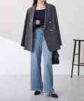 セミフレアパンツ×ポインテッドトゥのミュールと合わせた女性らしいスタイリングもおすすめです。