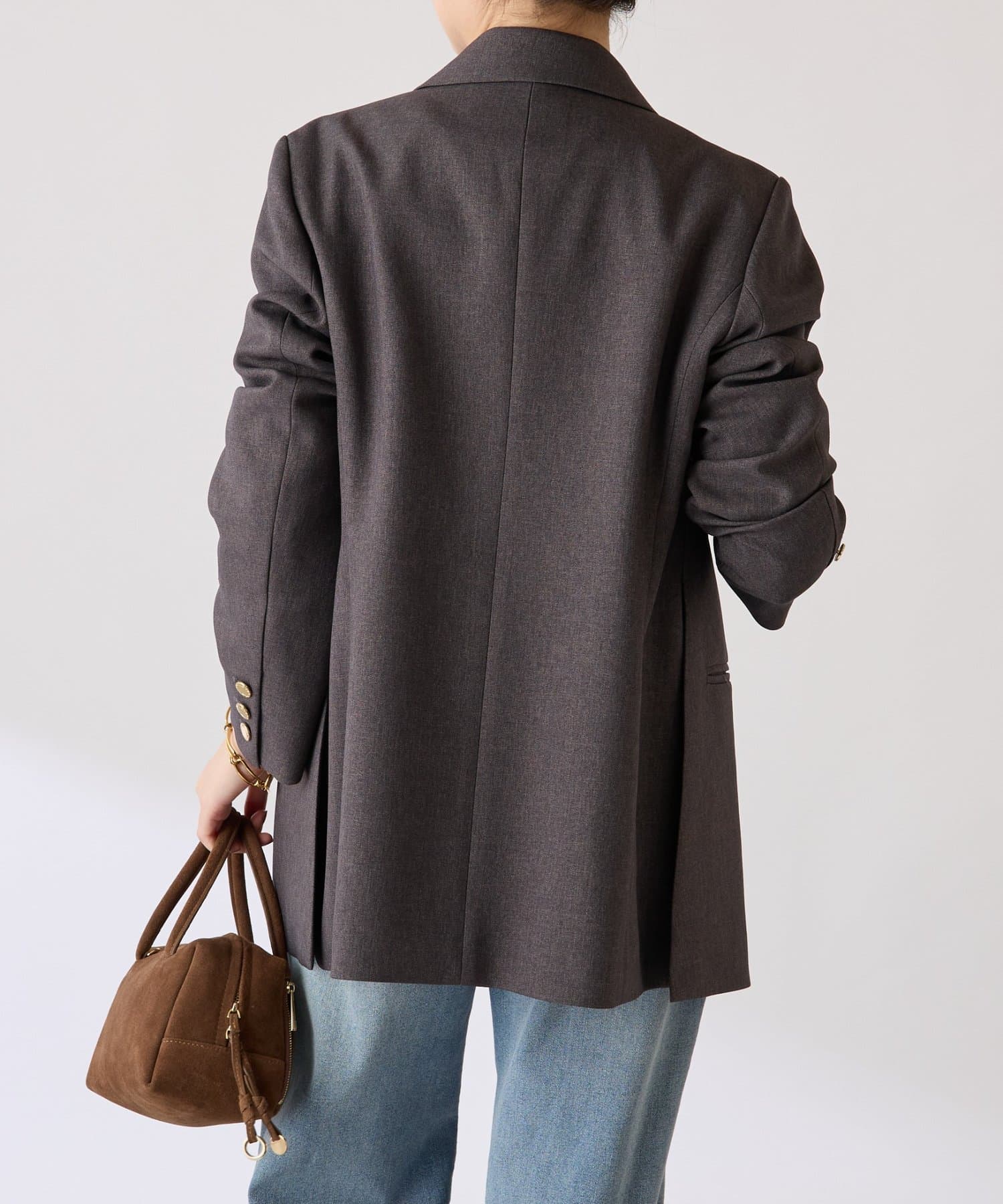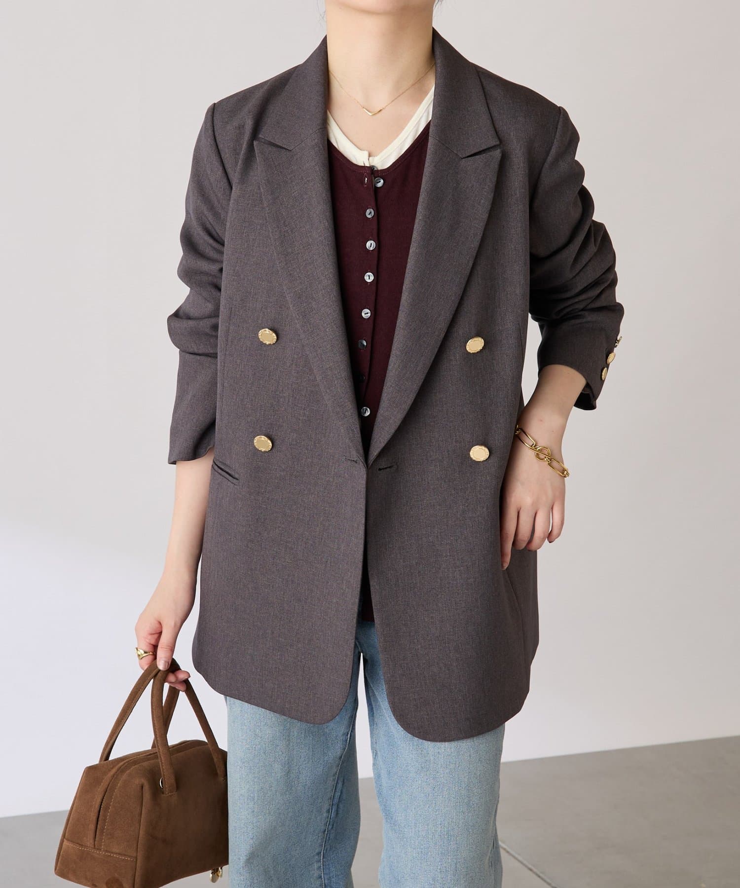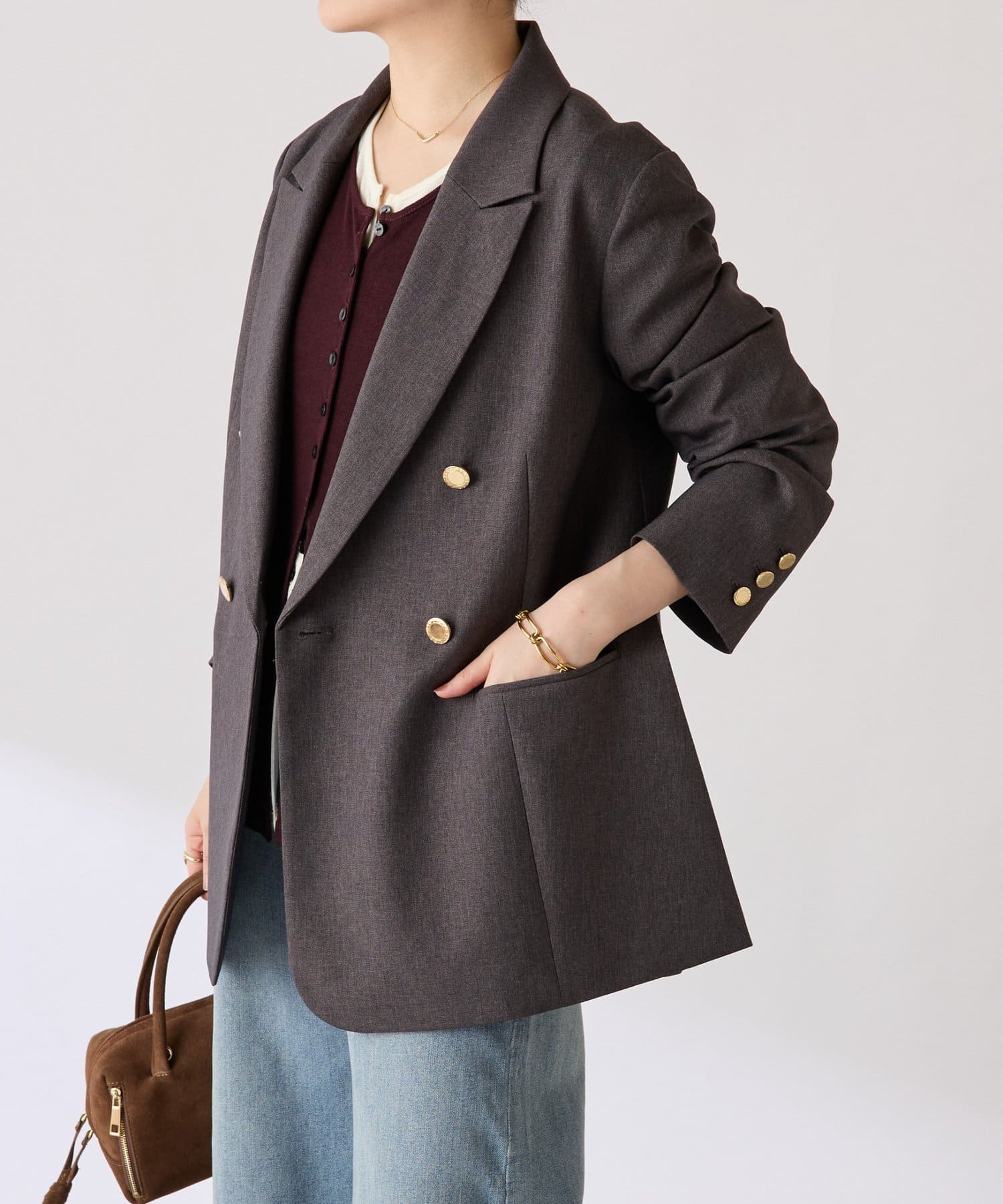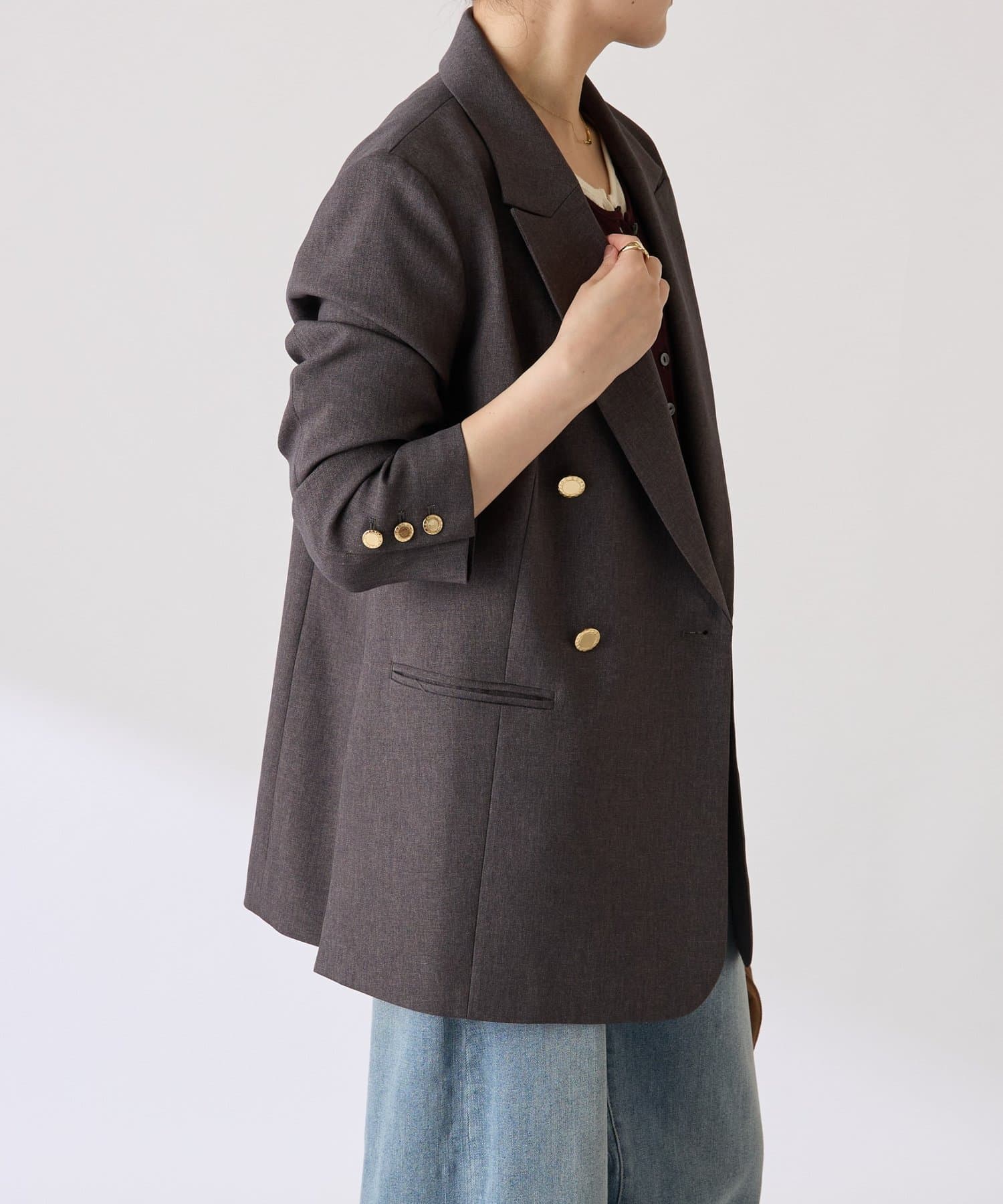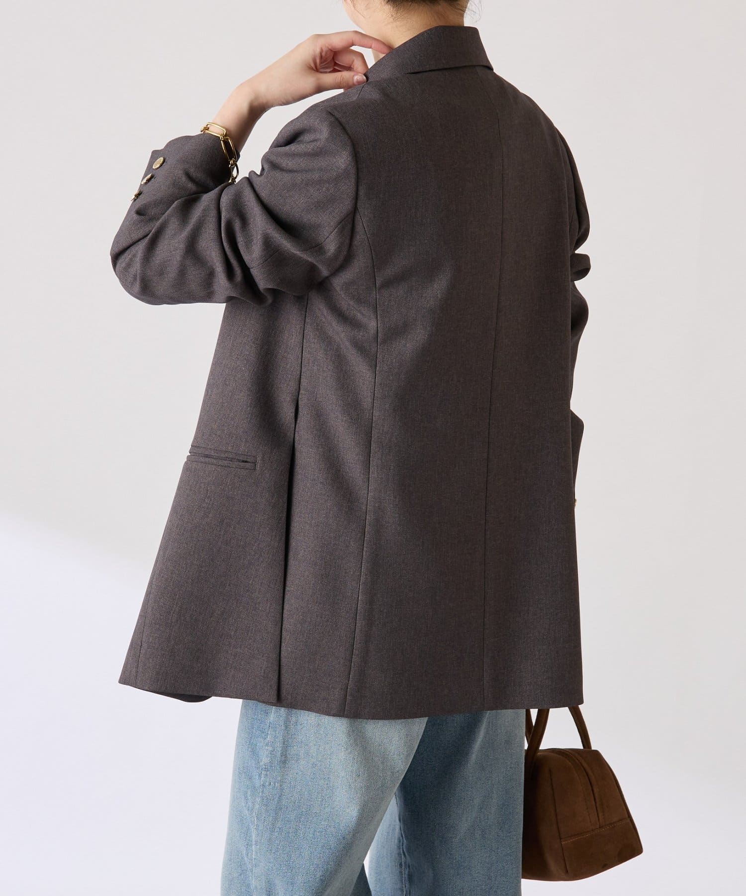 ・襟はセミノッチドラペルのダブルにしており、抜け感がありオンオフ使いやすいです。