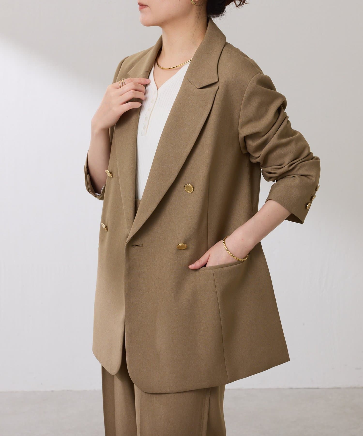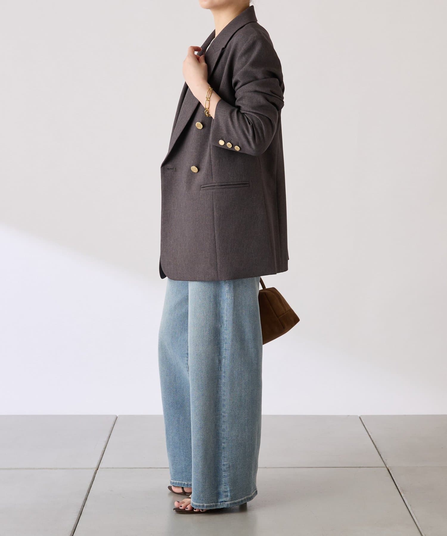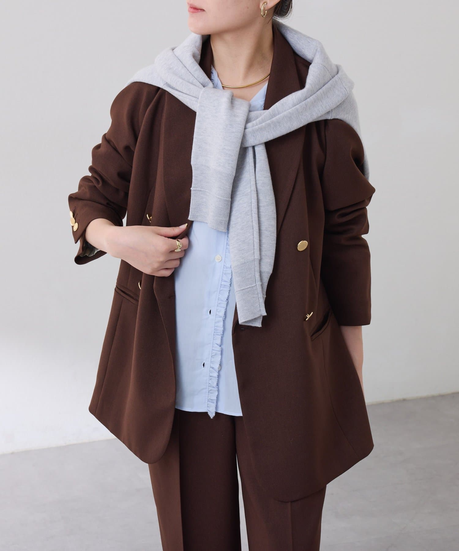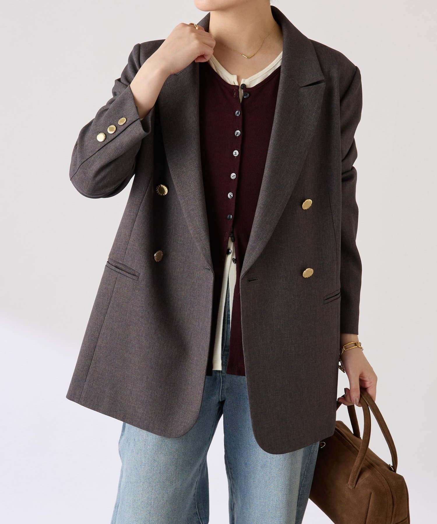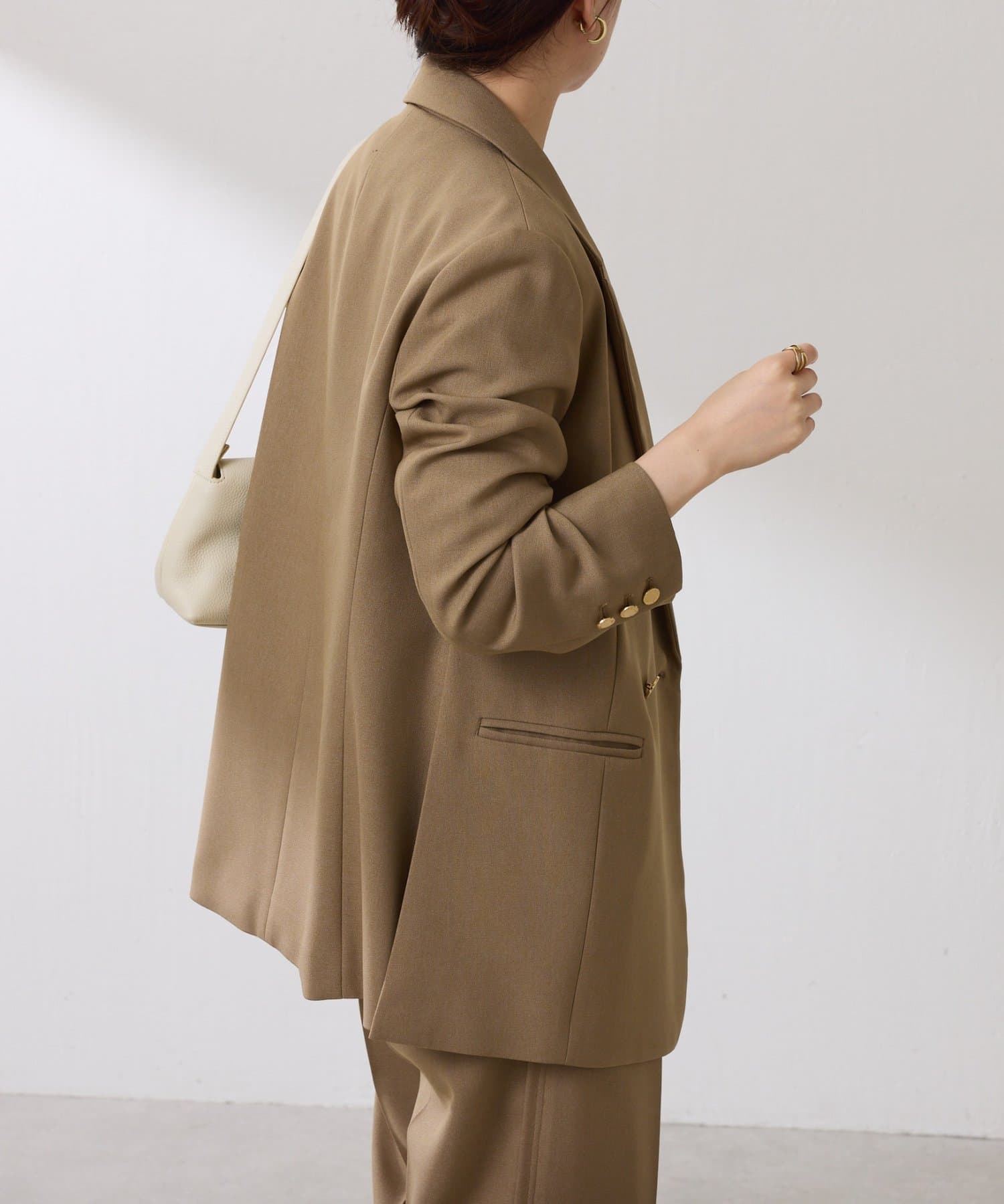 ・襟はセミノッチドラペルのダブルにしており、抜け感がありオンオフ使いやすいです。