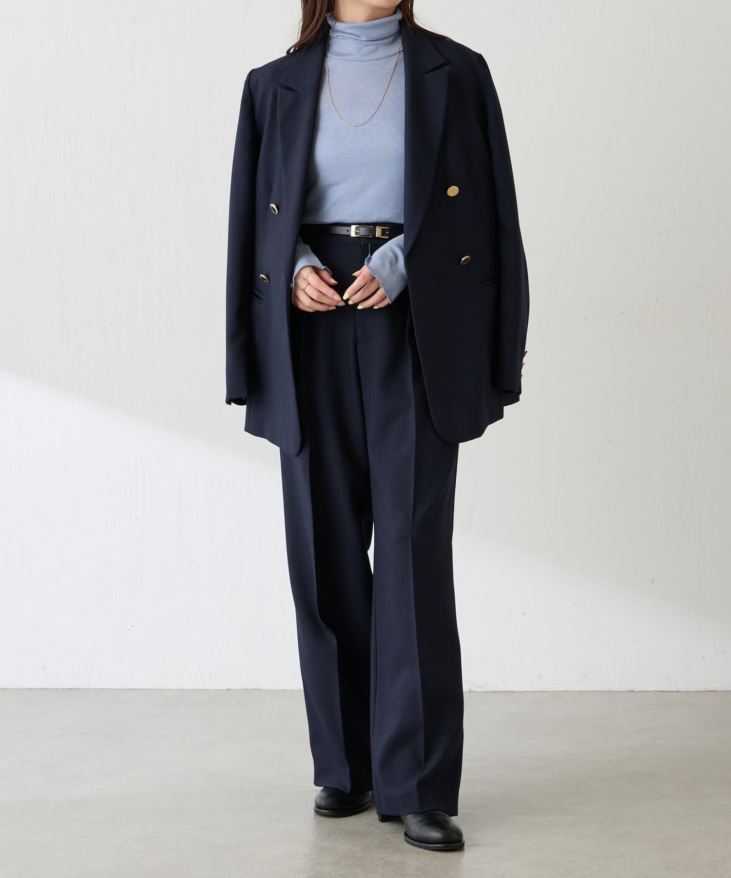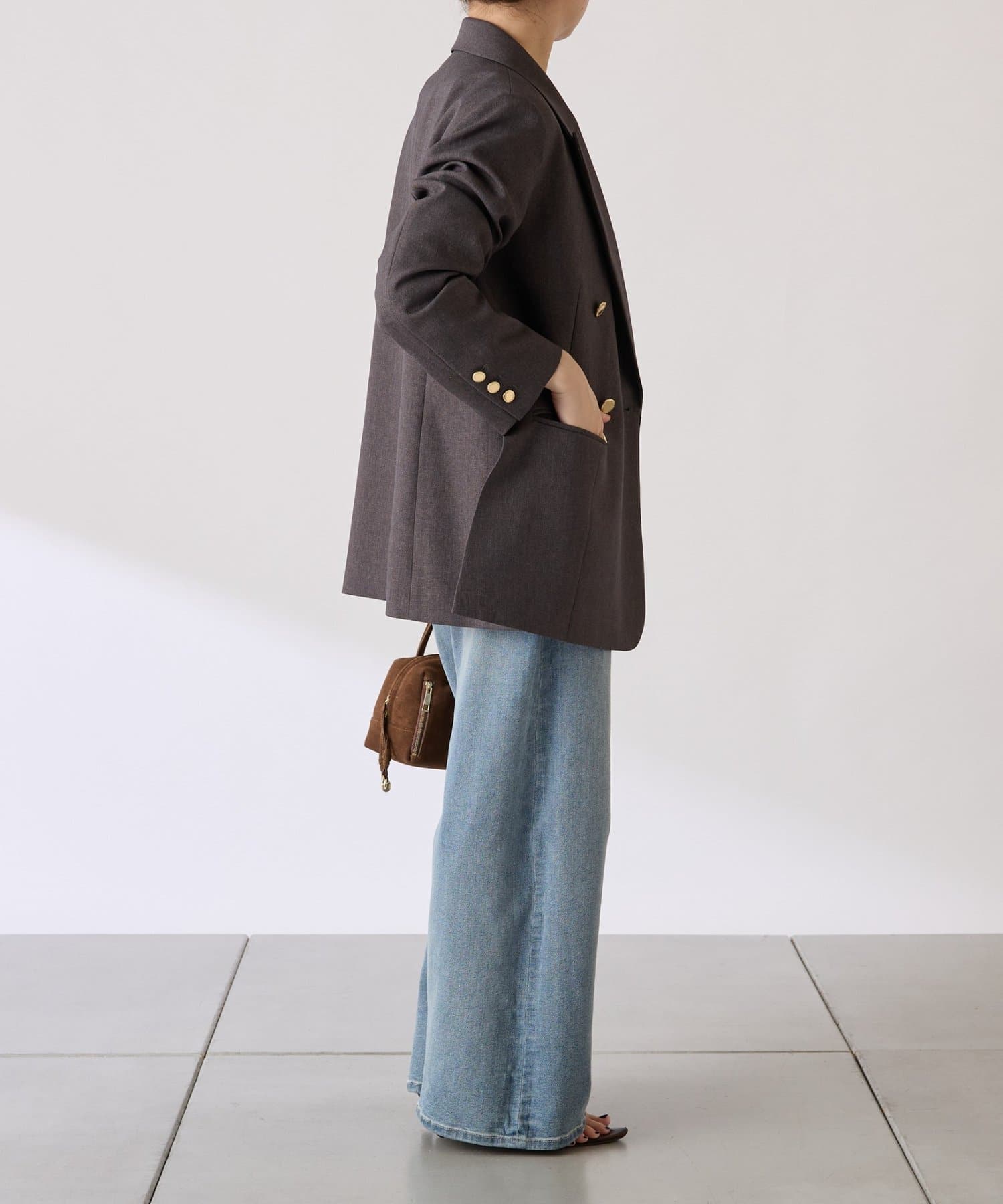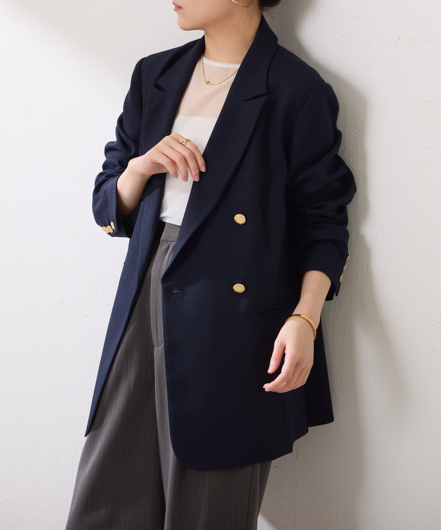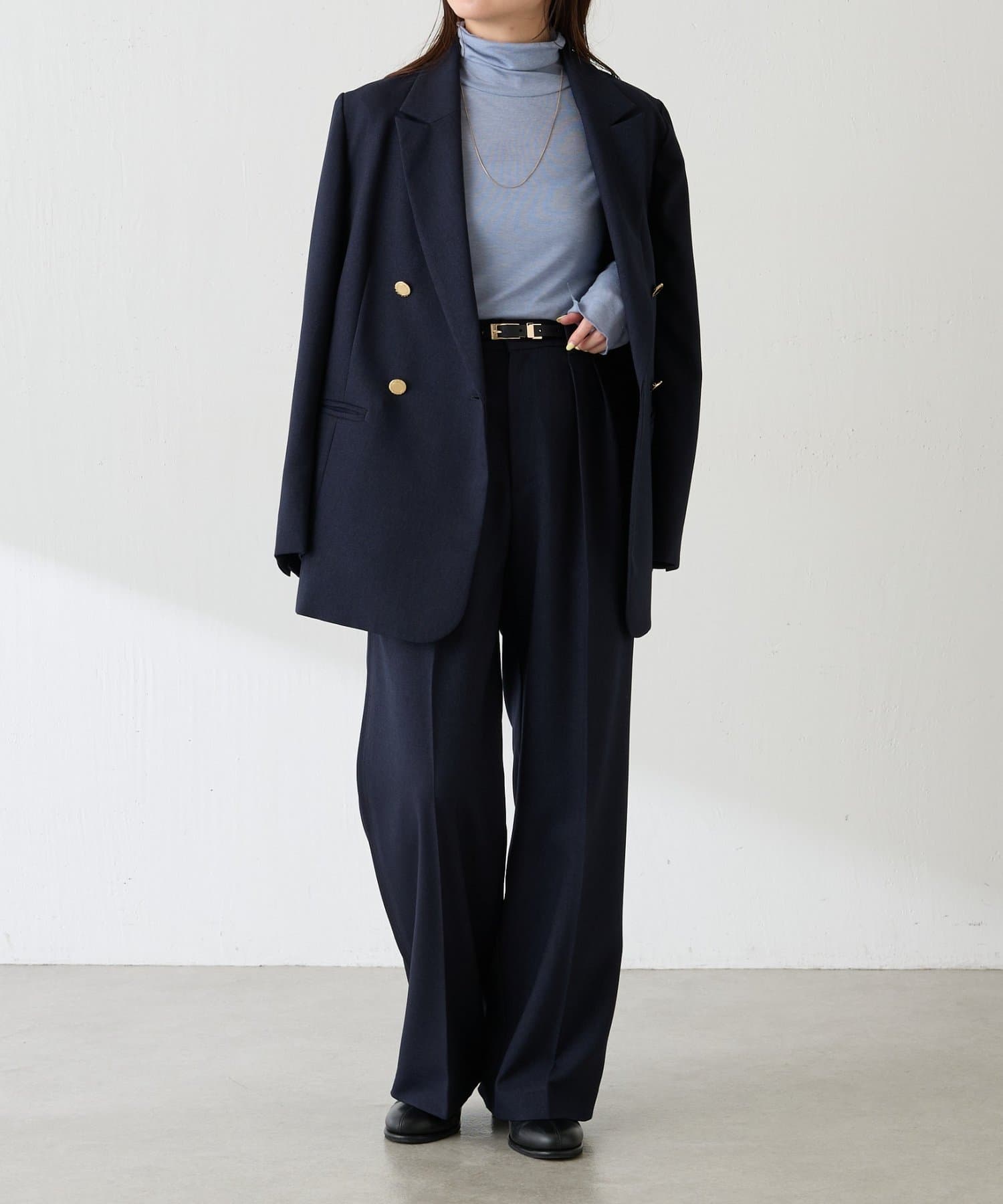 ・襟はセミノッチドラペルのダブルにしており、抜け感がありオンオフ使いやすいです。